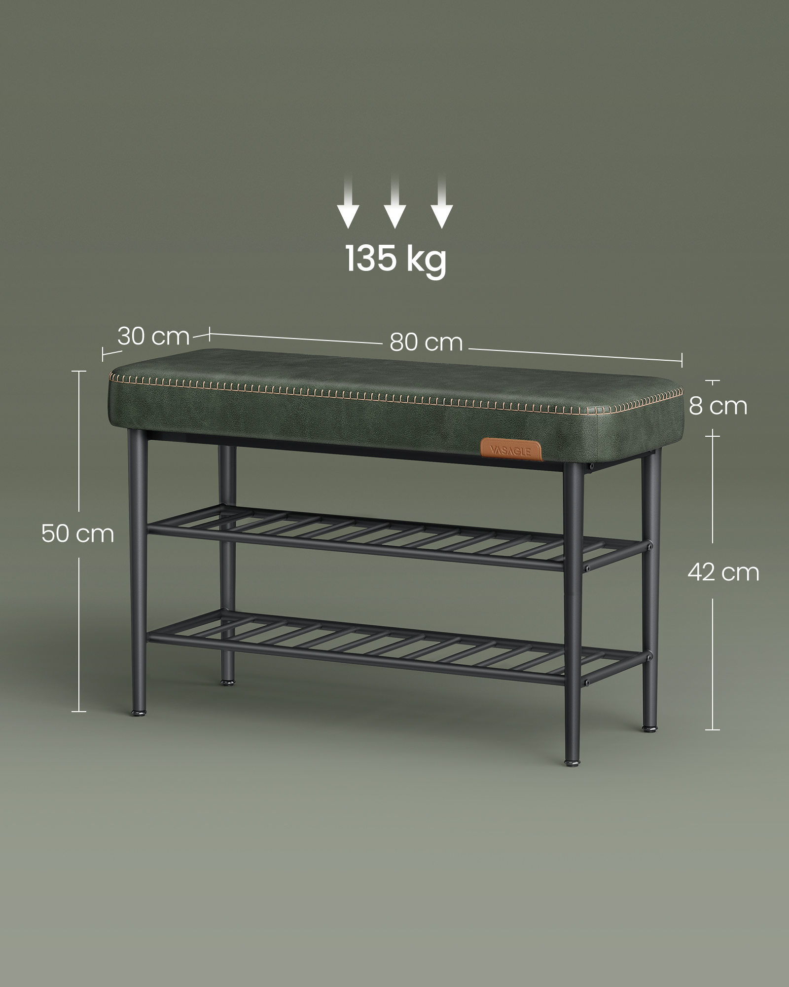 Spetsifikatsioonid: Toote mõõtmed 30S x 80L x 50K sentimeetrit Värv Metsaroheline Suurus 30 x 80 x 50 cm Bränd VASAGLE Toote kaal 6,3 kilogrammi