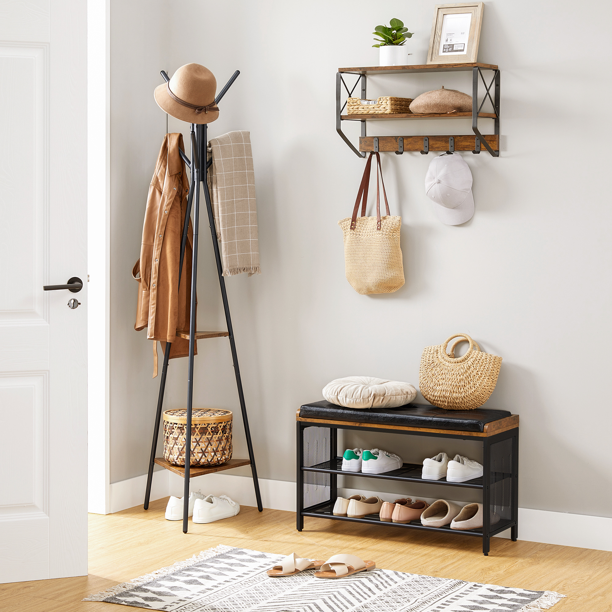 Spetsifikatsioonid: – Värvus: Rustikaalne pruun – Materjal: Puitlaastplaat, metall – Toote mõõdud: 80 x 30 x 48 cm (P x L x K) – Toote kaal: 8,1 kg – Istme maksimaalne staatiline kandevõime: 90 kg – Iga võrgust riiuli maksimaalne staatiline kandevõime: 5 kg Pakisisu: – 1 x Jalanõudepink – 1 x Lisatarvikute komplekt – 1 x Kasutusjuhend (EN, DE, ES, FR, IT)