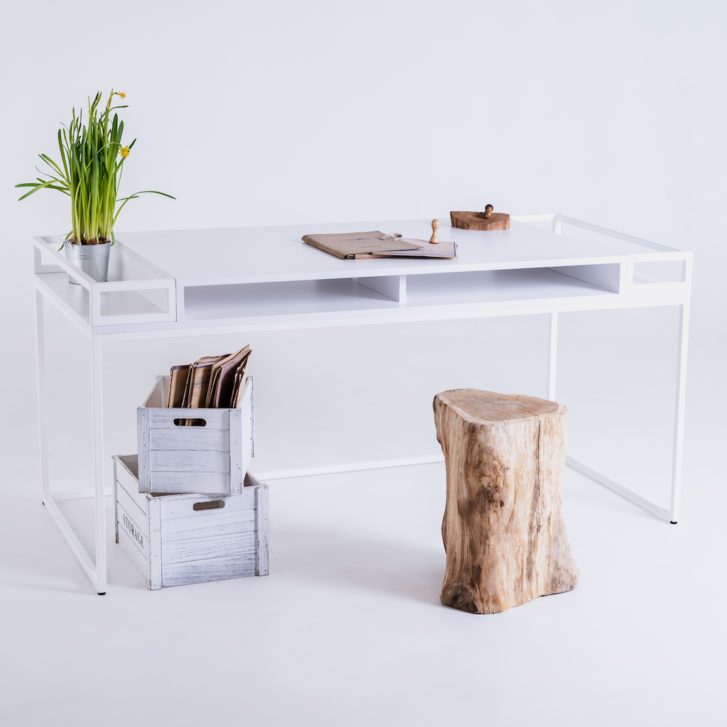 K1 laud on erakordne toode! Kas teate miks? See on esimene laud mida müüme! Aga see pole veel kõik. See on lihtsalt kasulik ja ilus mööbliese. Ja me oleme selle üle uhked! Mugav ja võluv disainlaud. See kõik on mugavuse küsimus. Meie disainkontorimööbel näitab alati üles täpset meisterlikkust et võimaldada mugavat tööd ja hoida korda hõlpsalt. Seega on minimalistlik mööbel meie tee. Kõrvaliste osade piiramine võimaldab luua esteetilist ruumi ja suurendab kasutusmugavust. Meie laud on just see. Loftmööbel teie koju kontorisse või stuudiosse. Enamasti on loftmööblil metallosi. See juhtum pole erand. Meie laual on metallkonstruktsioon kuid selle pealispind on klassikale austusavaldusena valmistatud kvaliteetsest lamineeritud mööbliplaadist. Lisaks on sellel konstruktsioonil kaks 8 cm kõrgust avatud sahtlit mida saate kasutada märkmete ja muude maiuspalade hoidmiseks. Külgedel on sümmeetrilised süvendid (20 cm) mida saab kasutada lisariiulitena. Kas soovite sinna lillepotti? Või äkki tassi kohvi? Pole probleemi. Sarnaselt meie teiste kontorimööbli toodetega on meie esimene laud silmale meeldiv kuid samas väga praktiline.