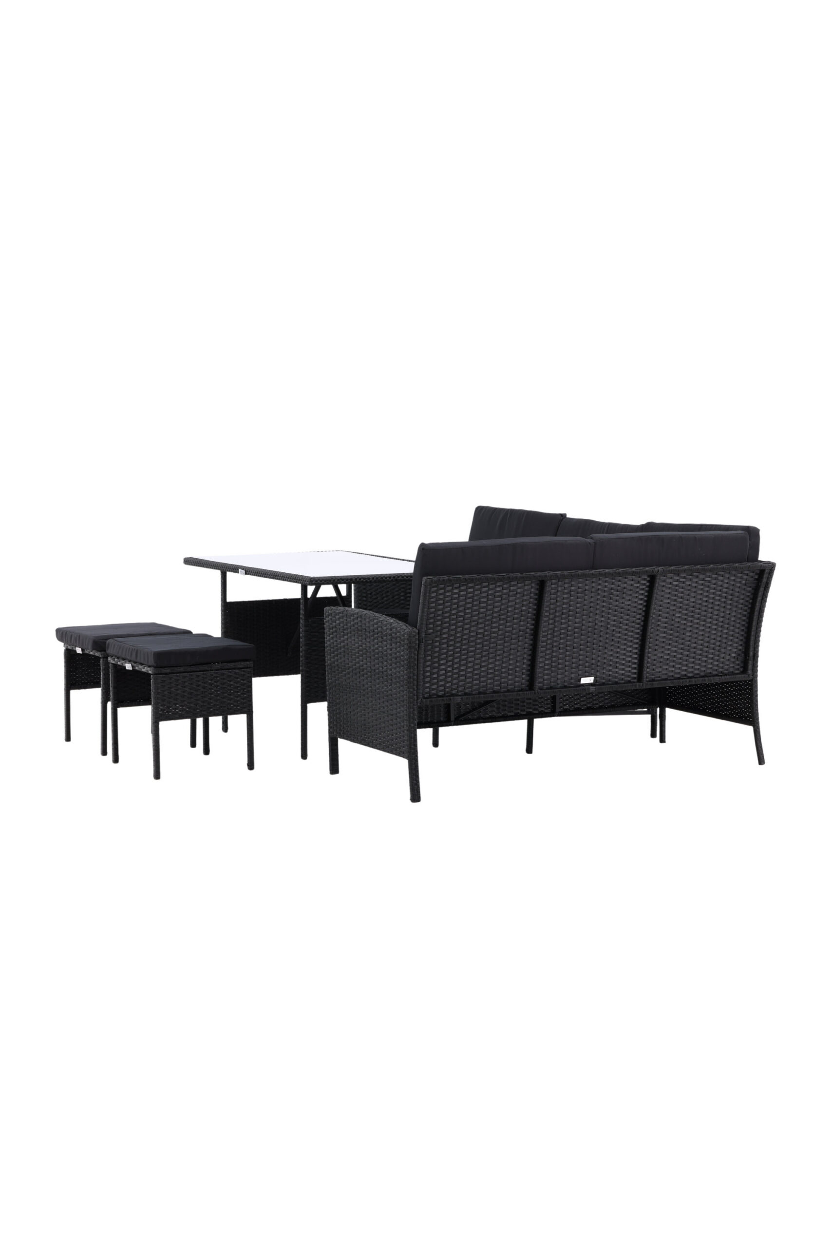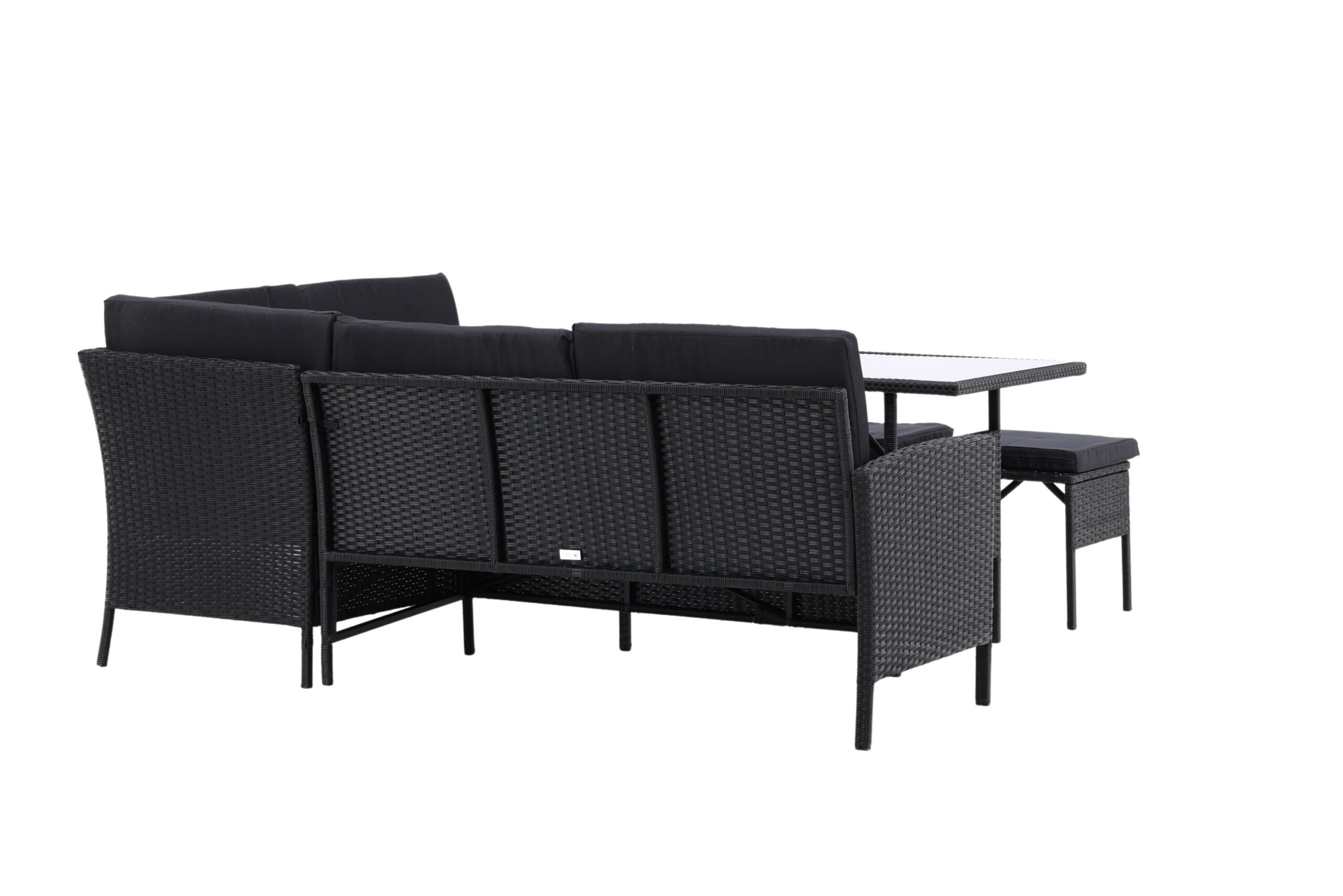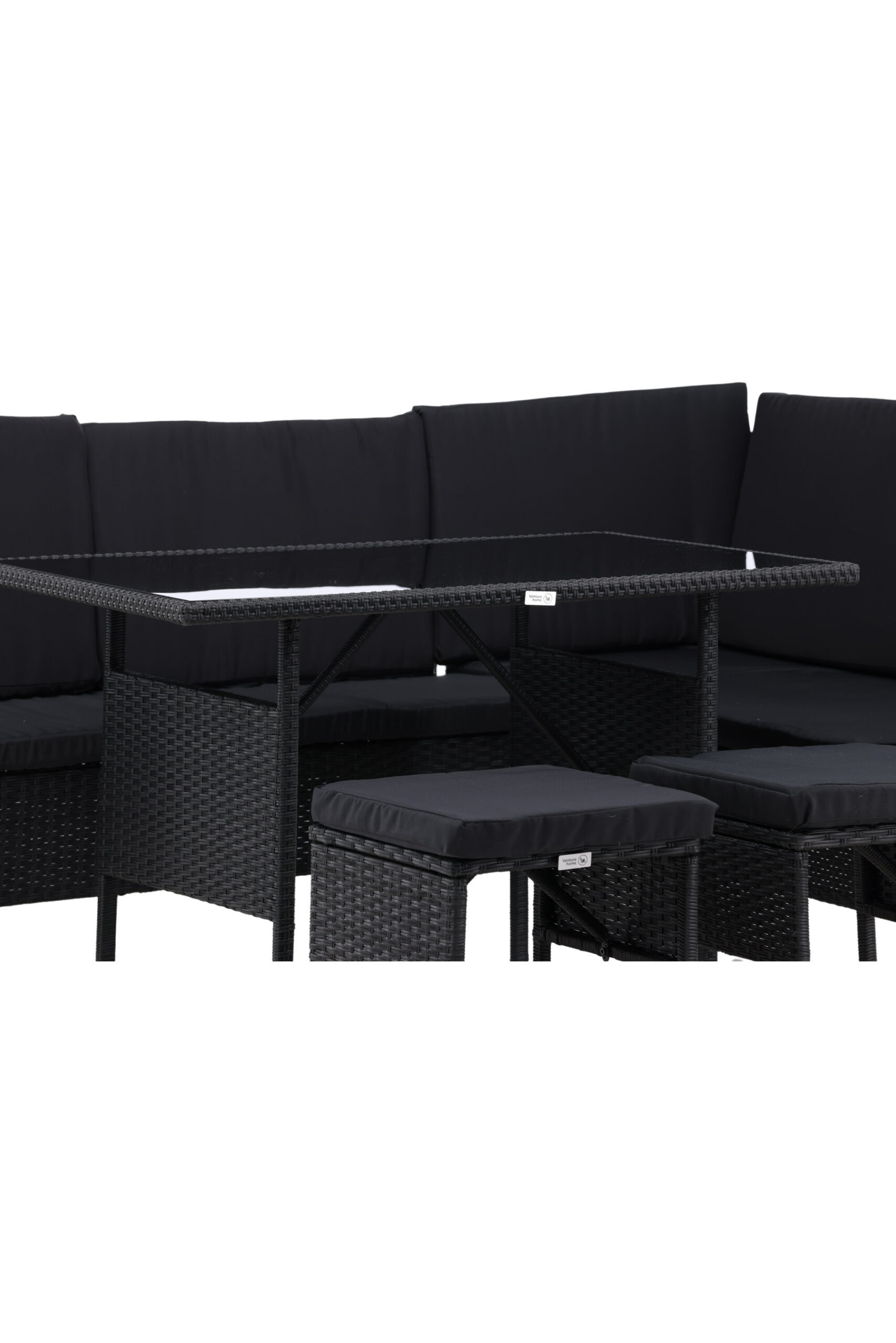 Knock-diivanirühm sobib suurepäraselt teie siseõuele või siseõuele ning on loodud, keskendudes mugavusele ja ajatule kujundusele. Diivanigrupp koosneb mustast kunstrotangist nurgadiivanist nelja istme ja ühe nurgaosaga, kahest kukest ja kõrgemast kunstrotangist lauast koos klaaslauaga. Mustad padjad kuuluvad diivanigruppi ja aitavad kaasa kutsuva tunde loomisele!