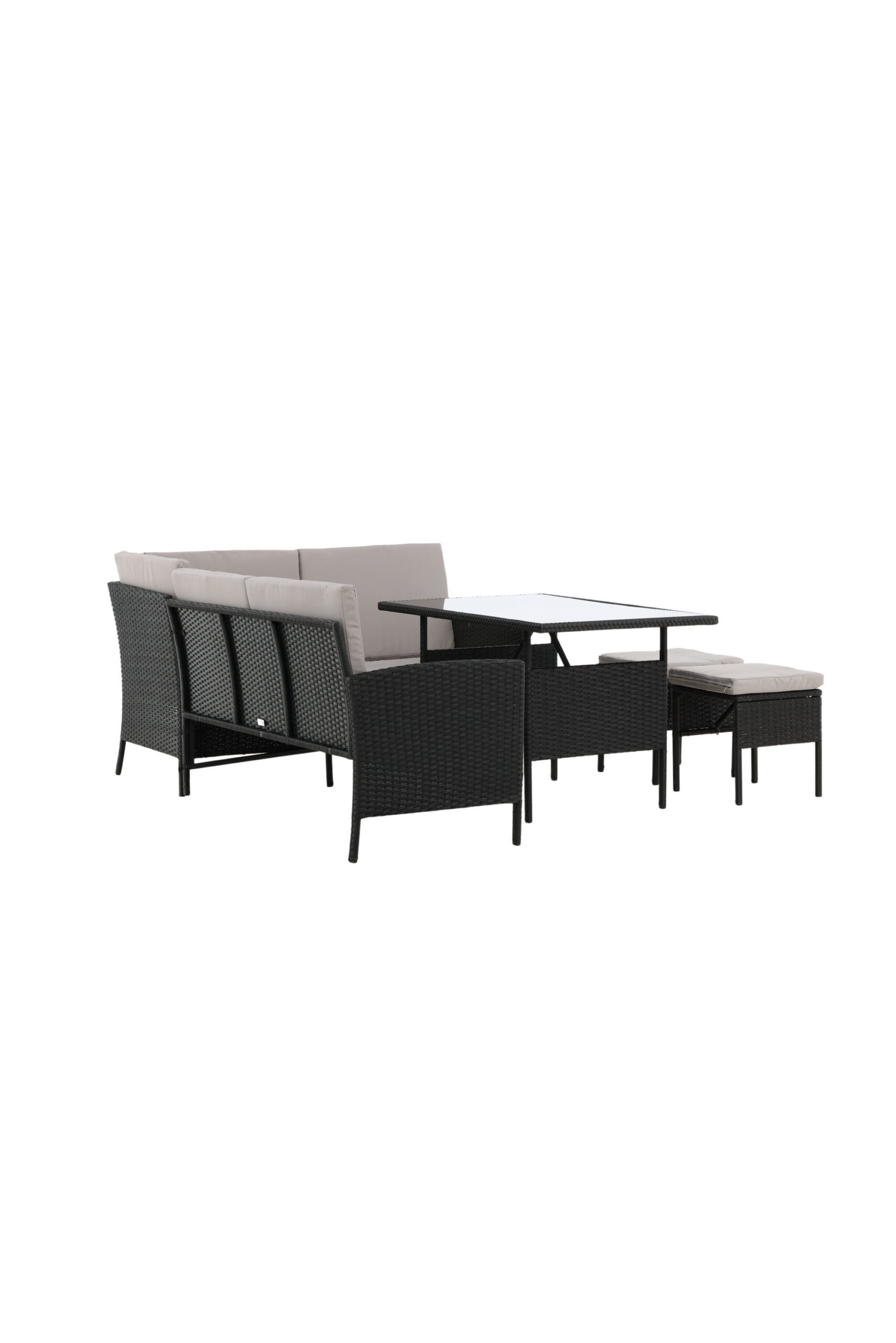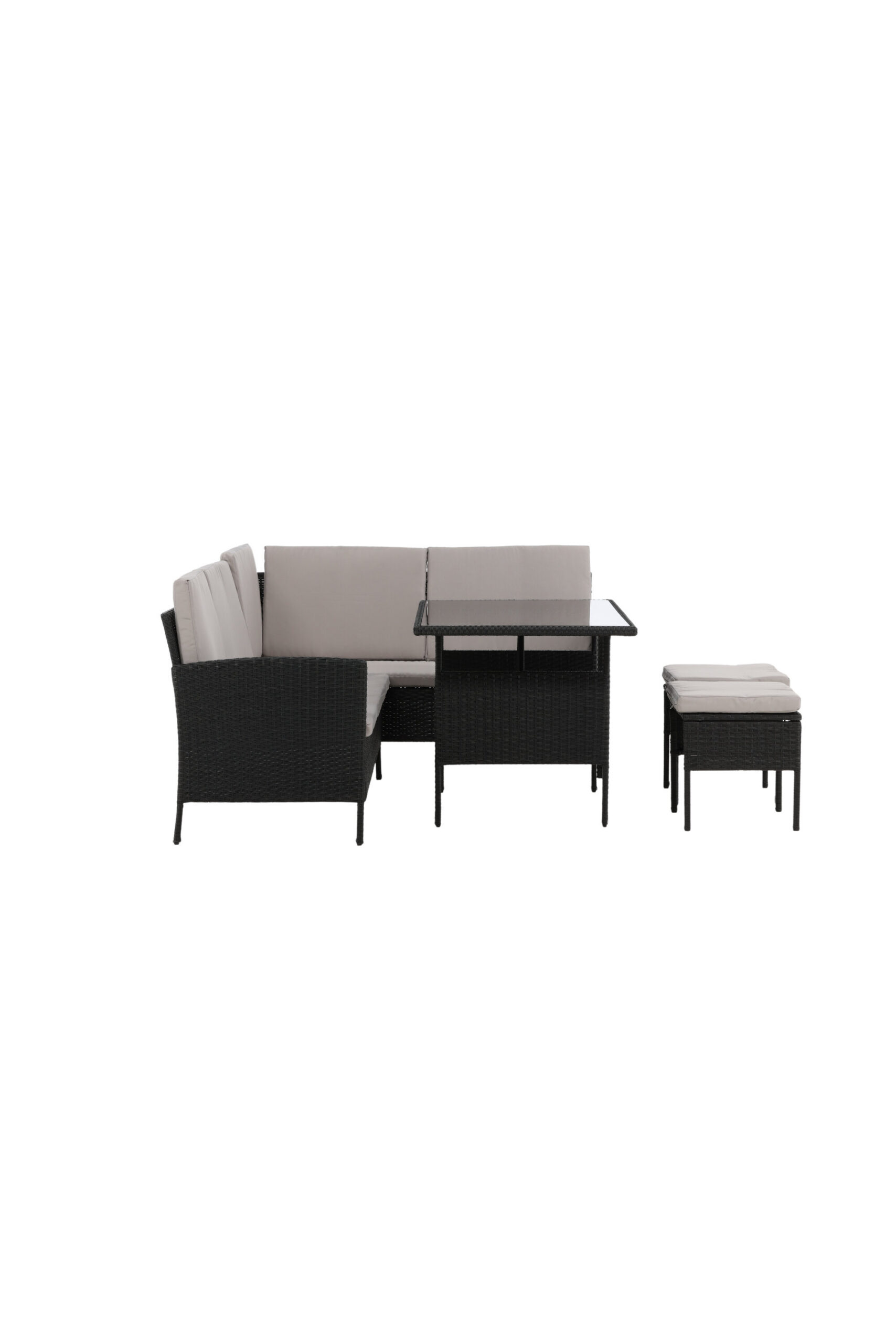 Knock-diivanirühm sobib suurepäraselt teie siseõuele või siseõuele ning on loodud, keskendudes mugavusele ja ajatule kujundusele. Diivanigrupp koosneb mustast kunstrotangist nurgadiivanist nelja istme ja ühe nurgaosaga, kahest kukest ja kõrgemast kunstrotangist lauast koos klaaslauaga. Hallid padjad kuuluvad diivanigruppi ja aitavad kaasa kutsuva tunde loomisele!