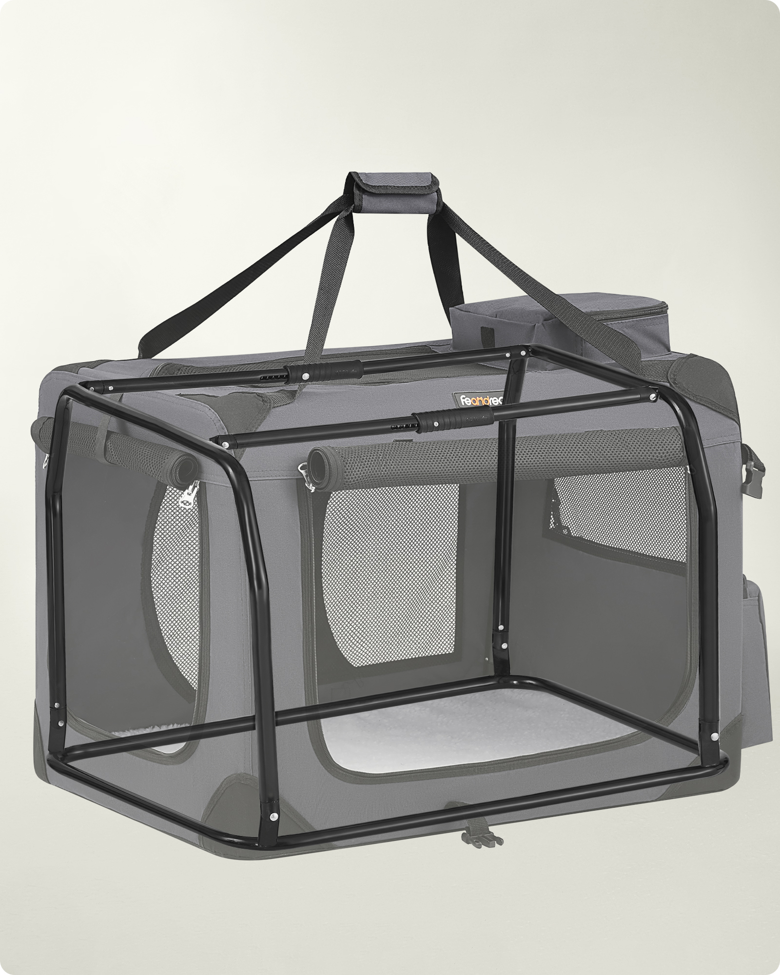 Spetsifikatsioonid: – Värvus: hall – Materjal: metallraam, Oxford-kangas, PVC-kate, kunstfliis – Toote mõõdud: 70 x 52 x 52 cm (P x L x K) – Toote kaal: 3,4 kg Pakisisu: – 1 x lemmiklooma transportimiseks mõeldud puur