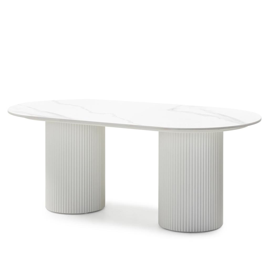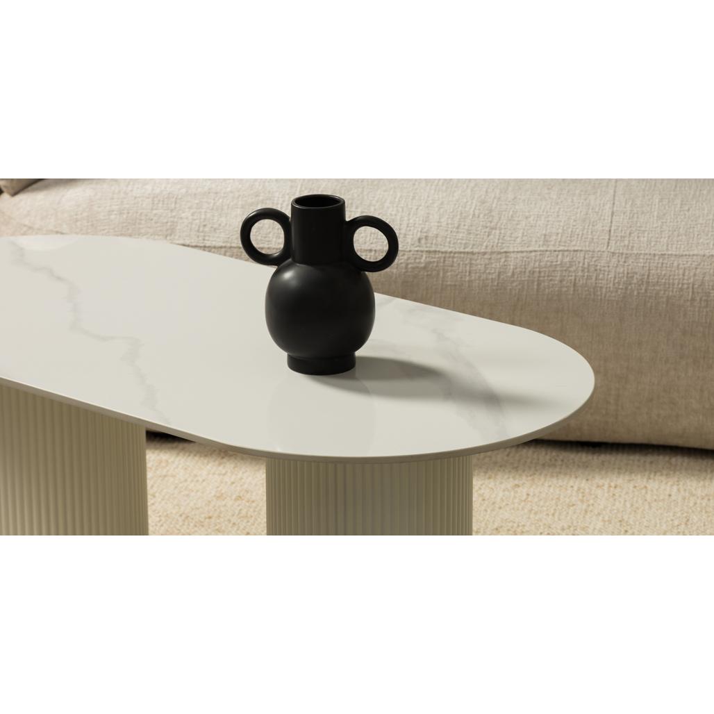 Kohvilaud 120 cm MARBELLA ovaalne lamellid valge marmori efekt paagutatud
