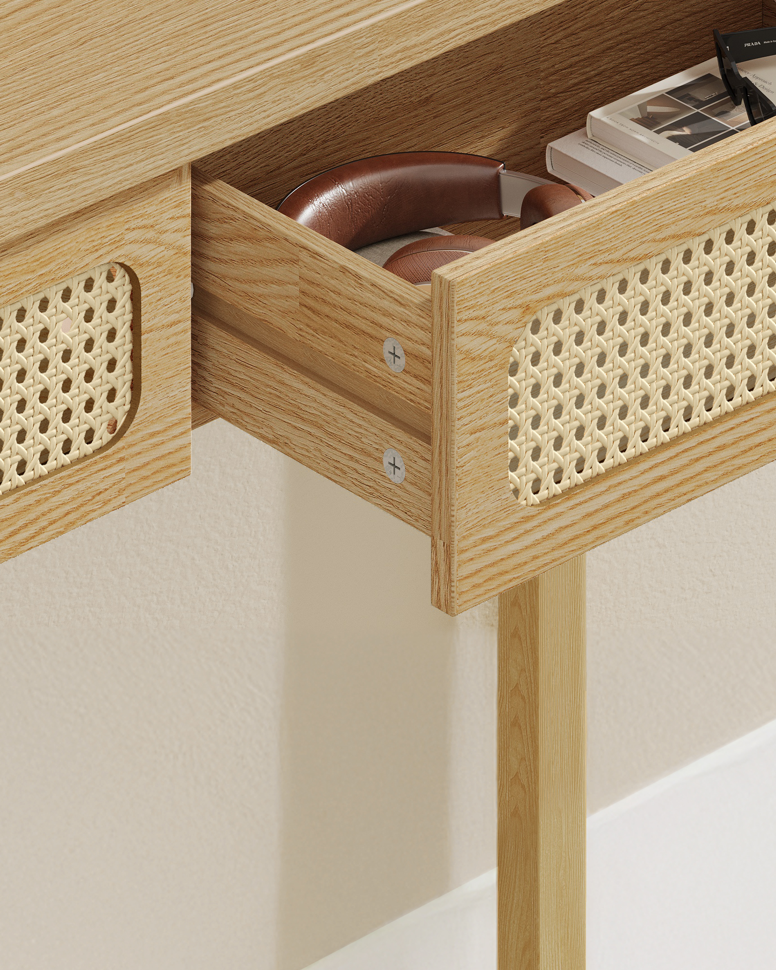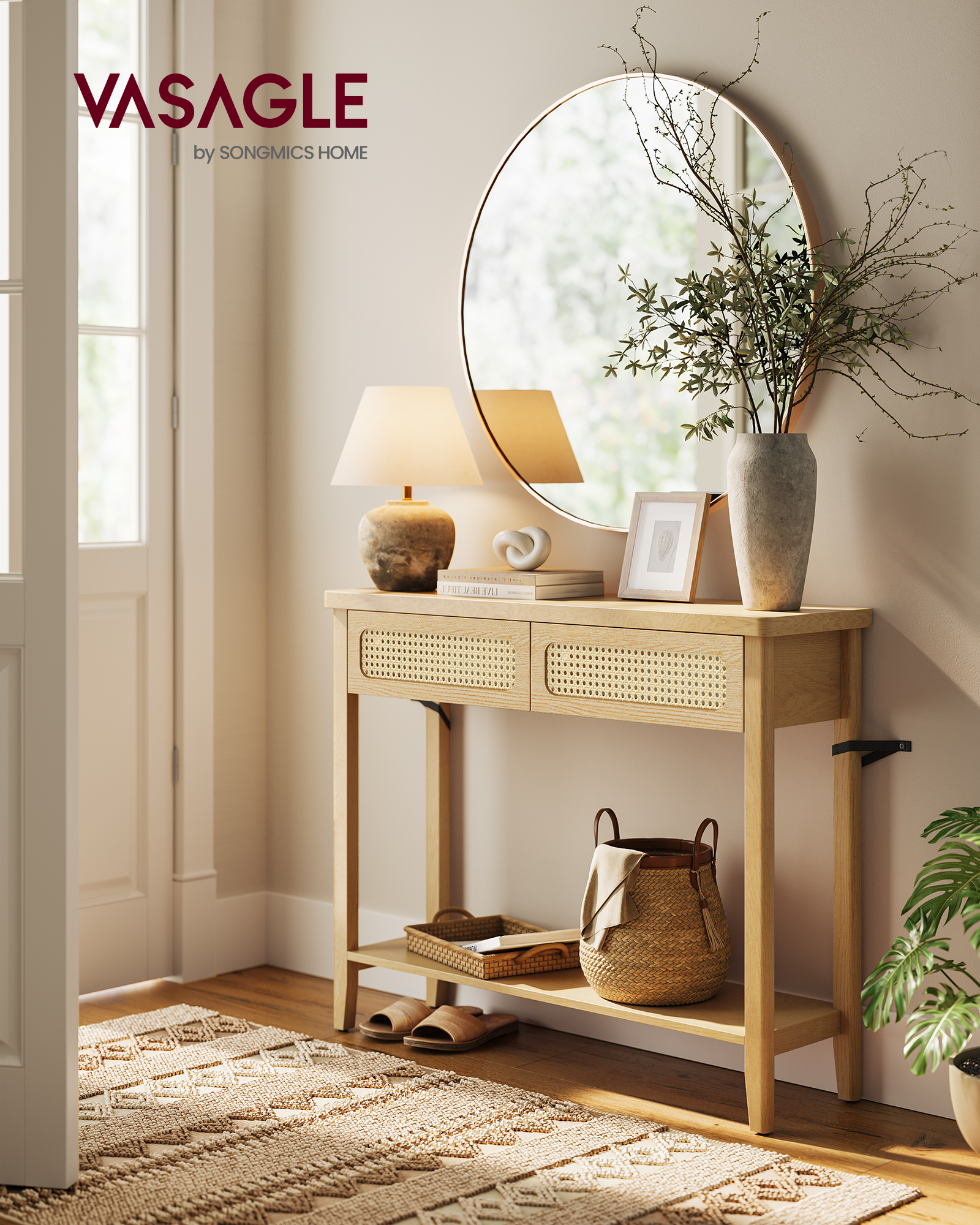 Spetsifikatsioonid: Värvus: Tammbeež Materjal: MDF (keskmise tihedusega puitkiudplaat), puitlaastplaat, PVC (polüvinüülkloriid) plastik Toote mõõdud: 11,8″S x 39,4″L x 31,5″K (30 x 100 x 80 cm) Toote kaal: 36,6 naela (16,6 kg) Maksimaalne staatiline kandevõime: 220 naela (100 kg) Pakisisu: 1 x konsoollaud 1 x tarvikute komplekt 1 x juhend
