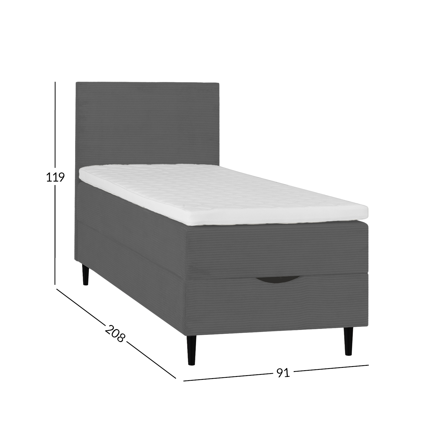 Kontinentaalvoodi LAARA 90x200cm, grafiit, 91x208xH119cm