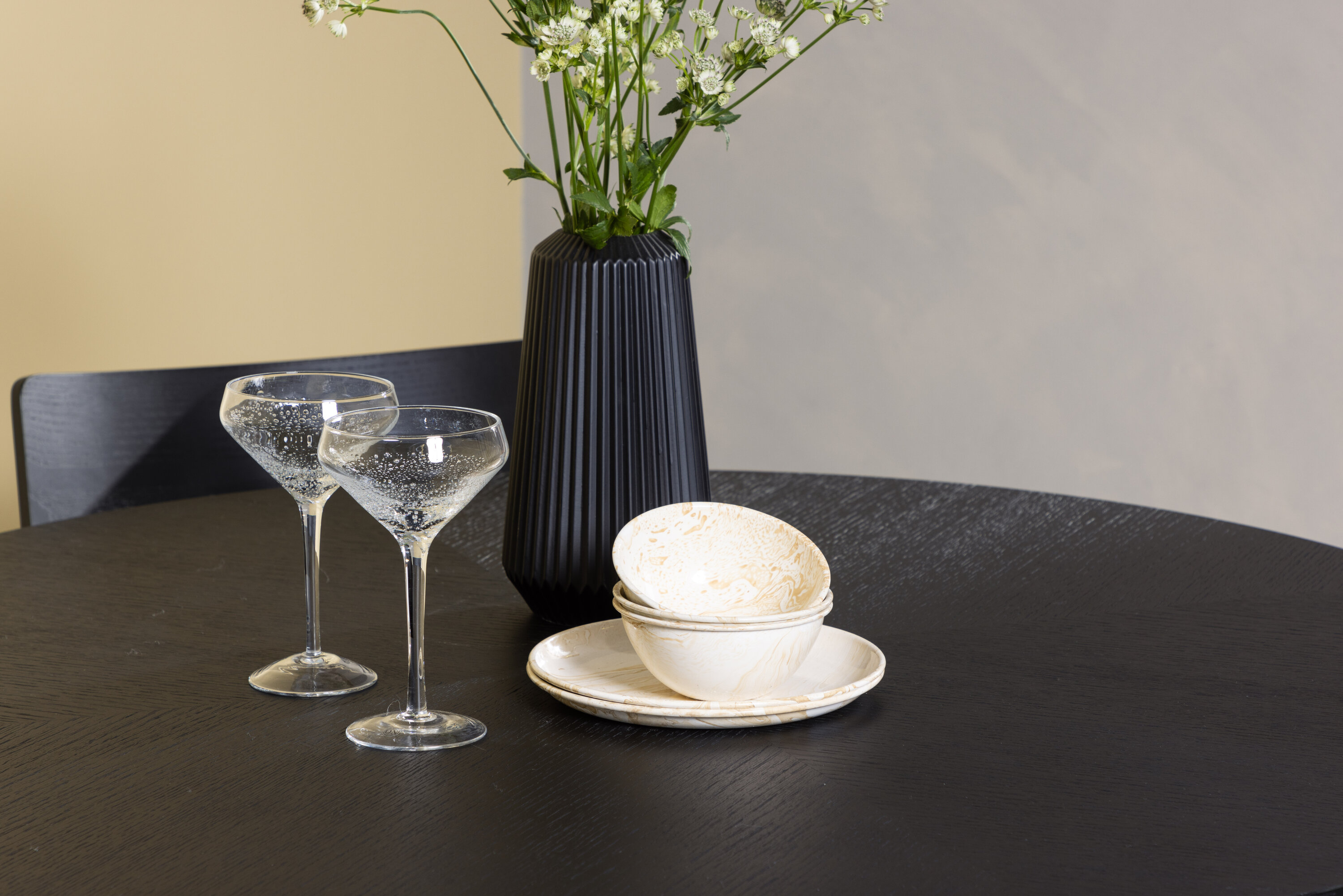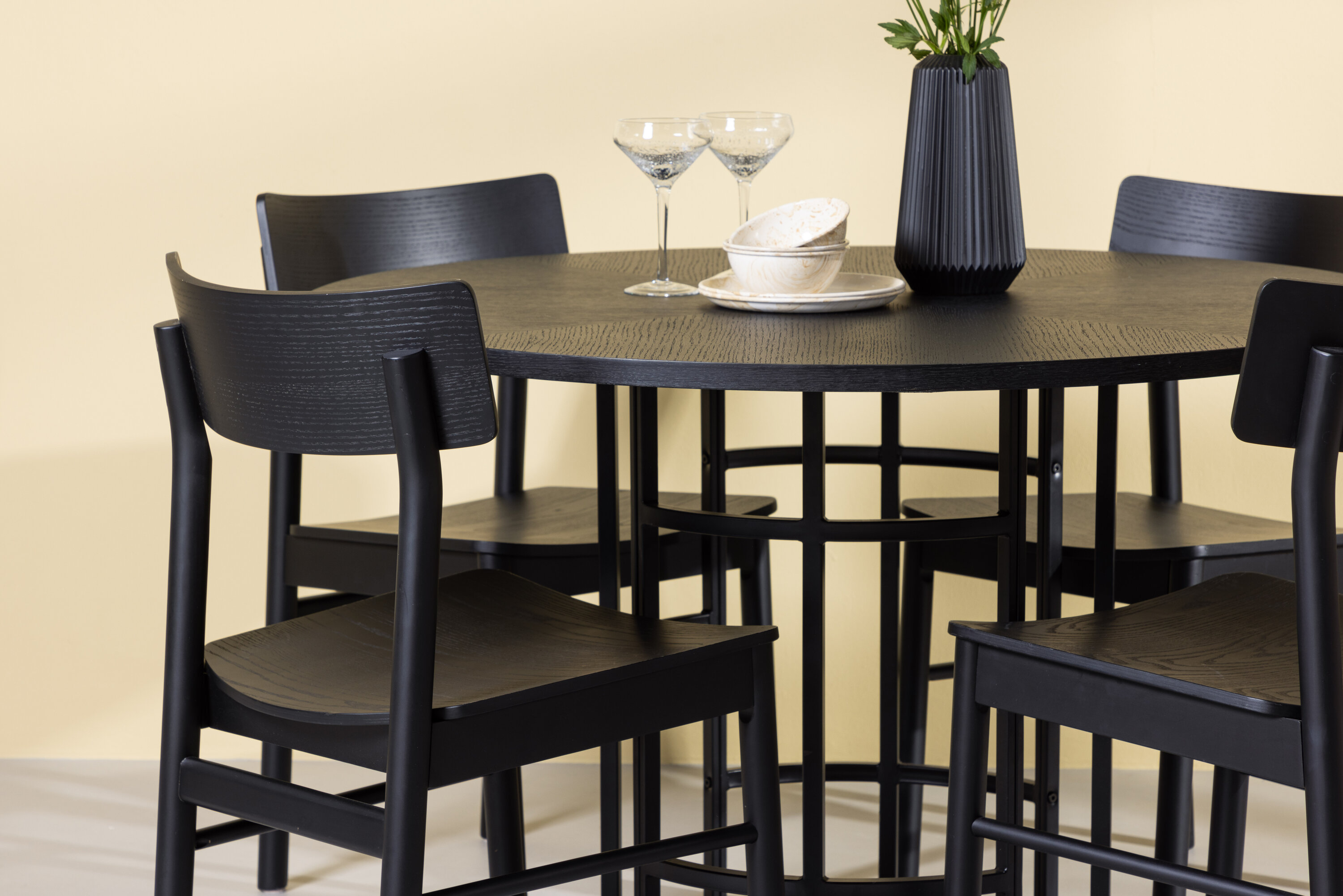 Kopenhaageni laua läbimõõt on 115 sentimeetrit ning see on valmistatud MDF-materjalist ja tugevatest terasest jalgadest, mis tagavad stabiilsuse. Selle elegantne must värv lisab teie söögitoale moodsat hõngu ja täiendab sujuvalt enamikku interjööri stiile.