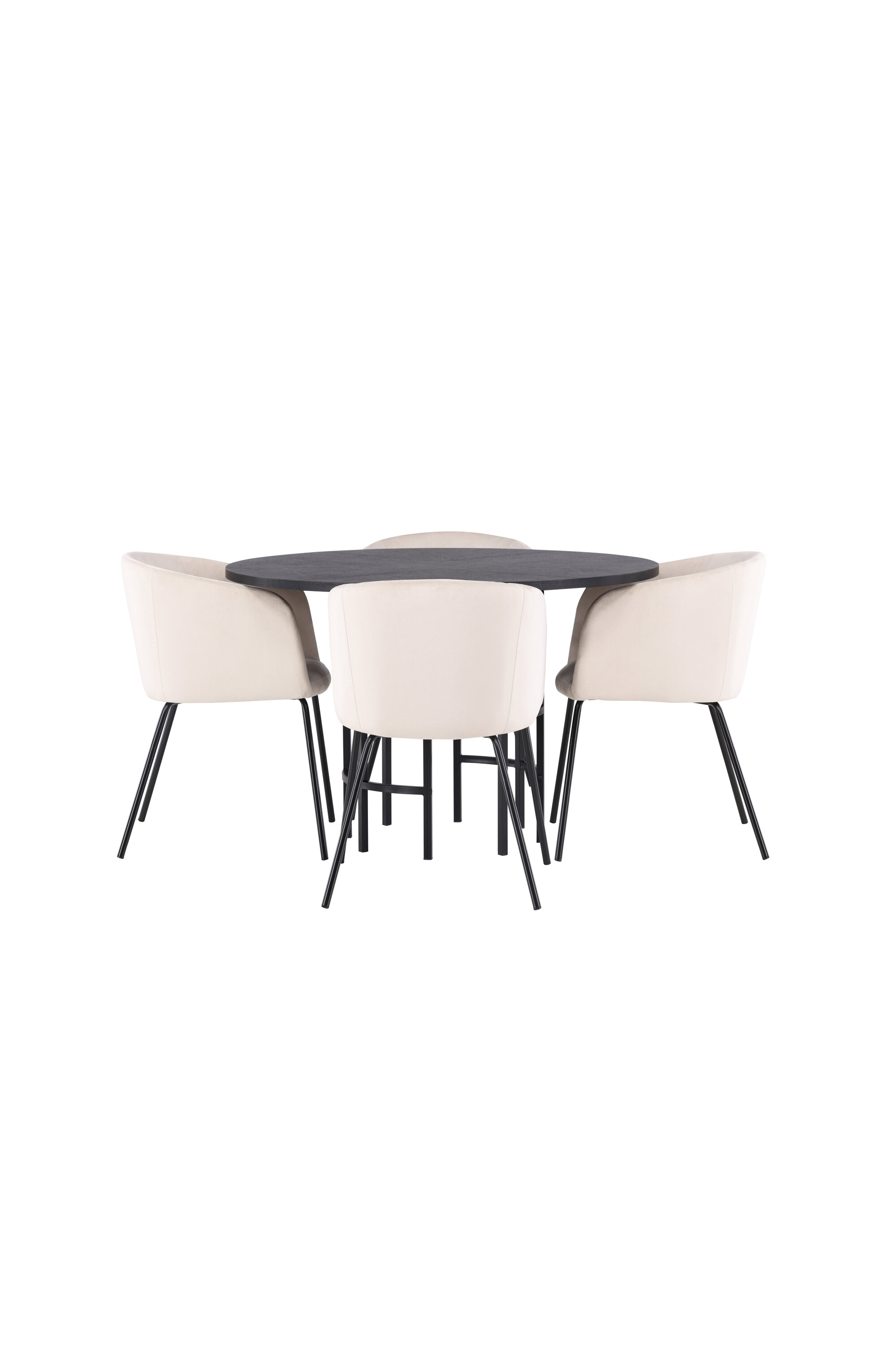 Nii stiilne kui ka kutsuv! Meie ümaral söögilaual Copenhagen on elegantne must MDF-plaadist lauaplaat ja mustast metallist dekoratiivne silindrikujuline alus. Siin koos meie suurepäraste söögitoolidega Berit. Toolil on täielikult polsterdatud disain, mille seljatugi ja iste on sametkangast ning kitsad mustast rauast jalad. Selle söögigrupiga saate elutuppa kauni sära! Laua mõõdud: 115 cm.