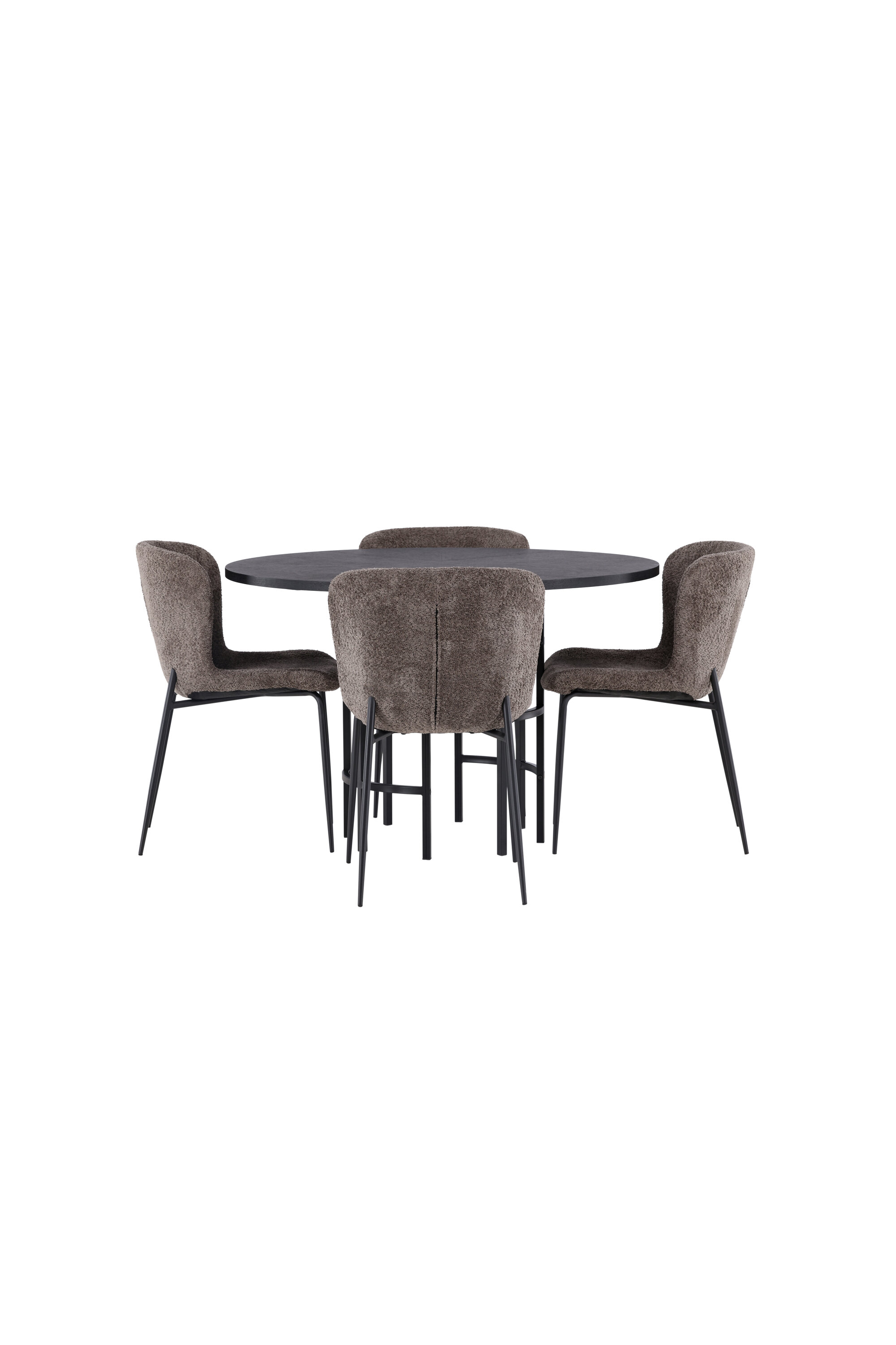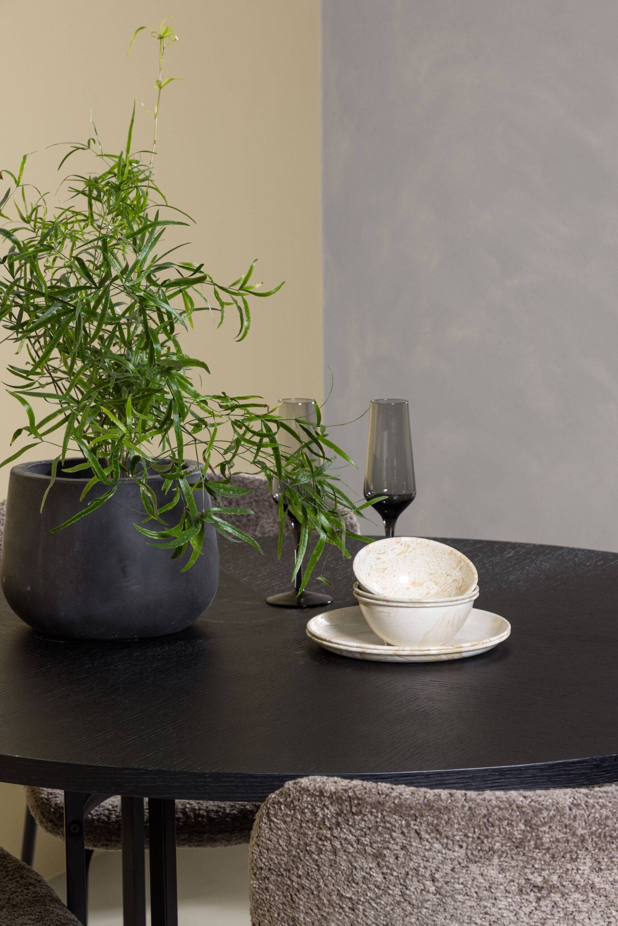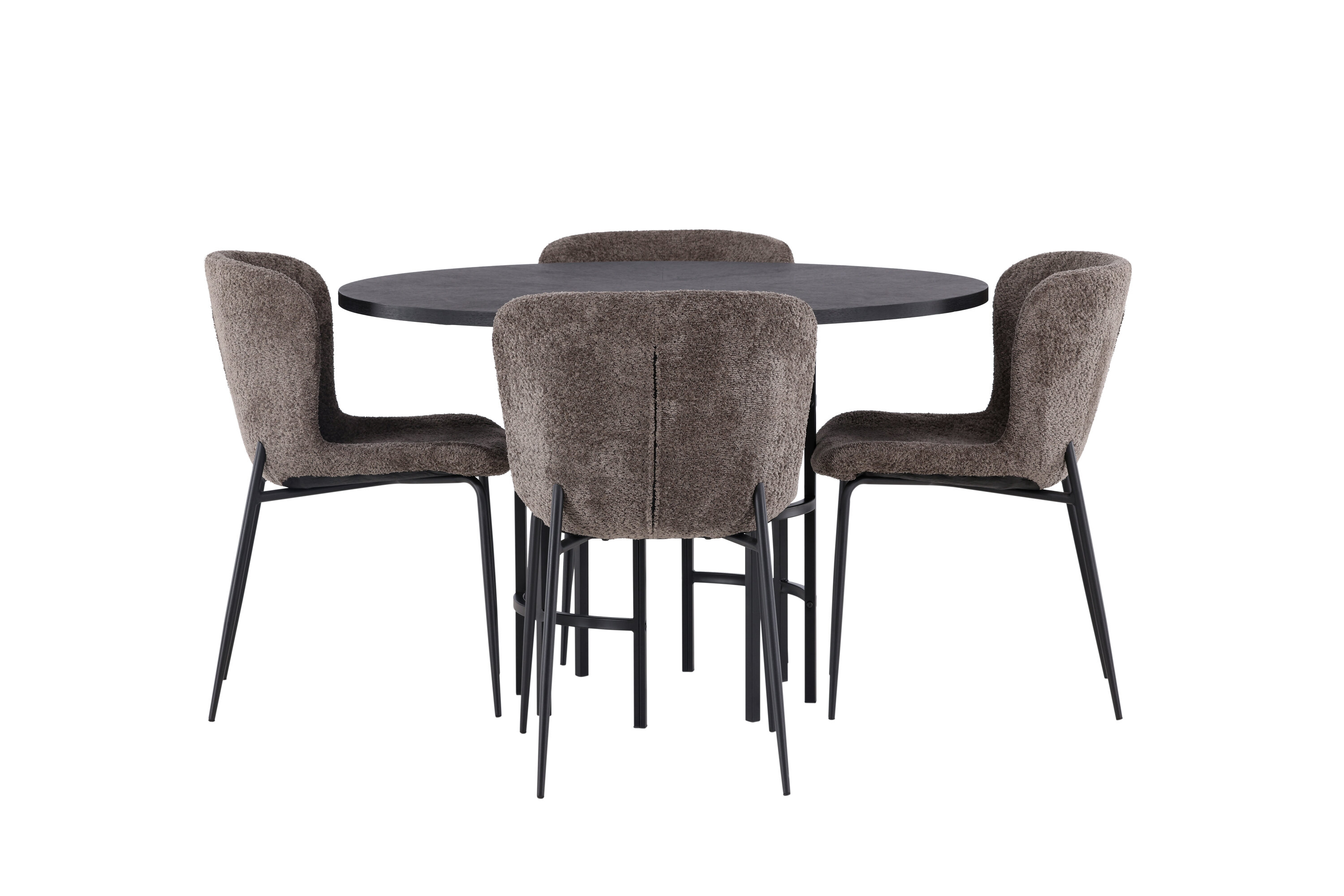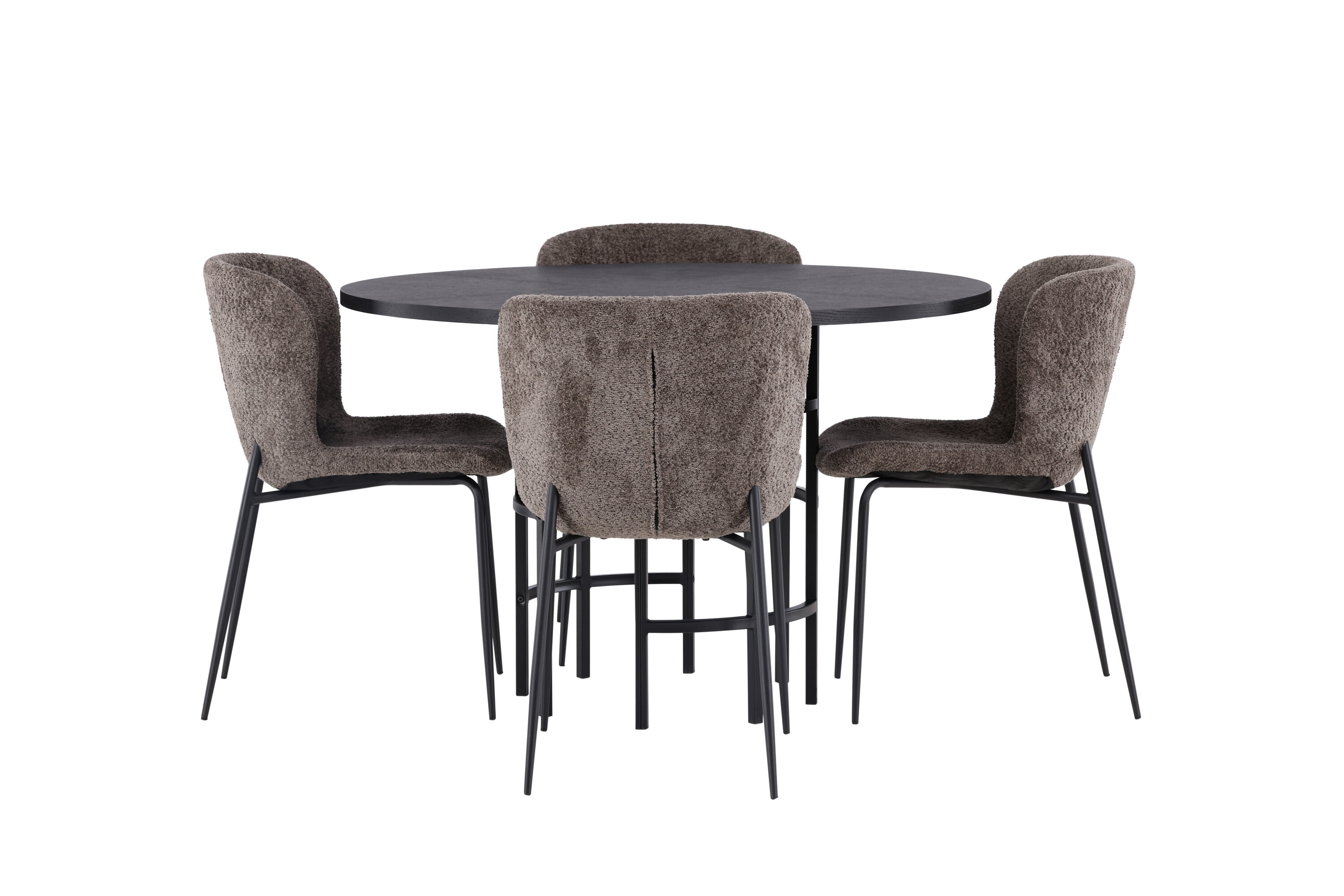 Siin kohtub tööstusdisain pehmete vormidega! Meie ümaral söögilaual Copenhagen on elegantne must MDF-plaadist lauaplaat ja mustast metallist dekoratiivne silindrikujuline alus. Siin stiilses kombinatsioonis meie trendikate Modesto sarja söögitoolidega. Tool on täielikult polsterdatud beeži karvase kangaga ja stiilsed kitsad mustast metallist jalad. Kergelt ümar seljatugi ja polsterdatud istmepadi pakuvad lisamugavust ja pikendavad söögilaua ümber mõnusaid eineid. Istu mugavalt ja edaspidi trendikas! Laua mõõdud: 115 cm.
