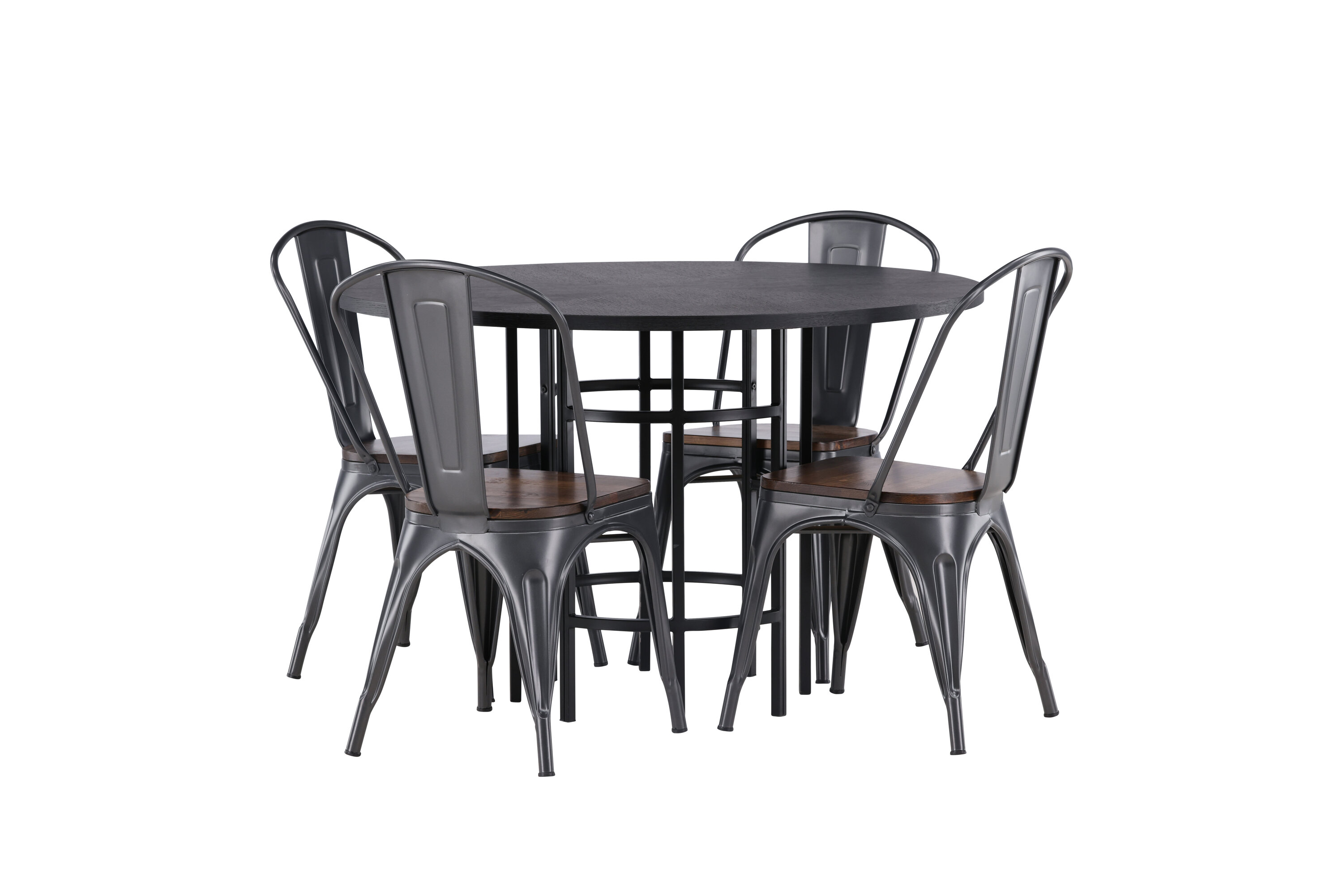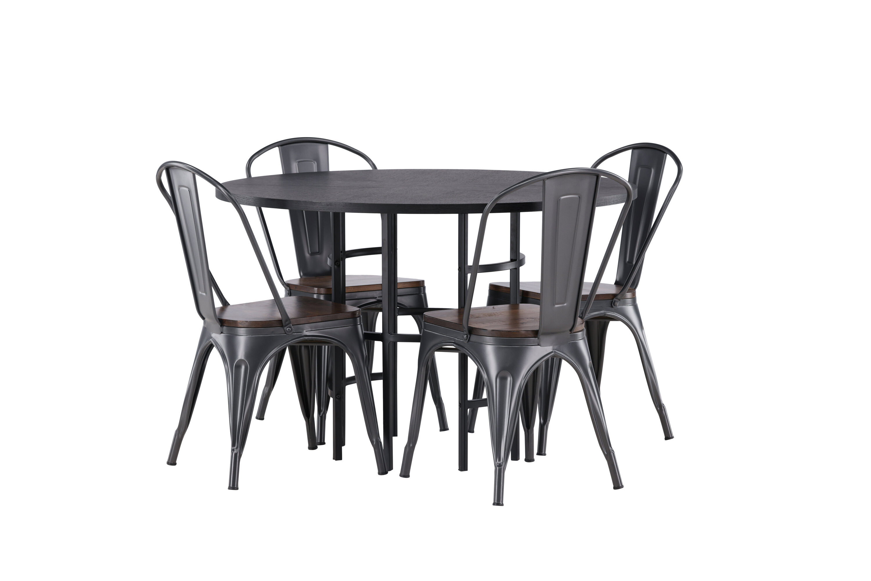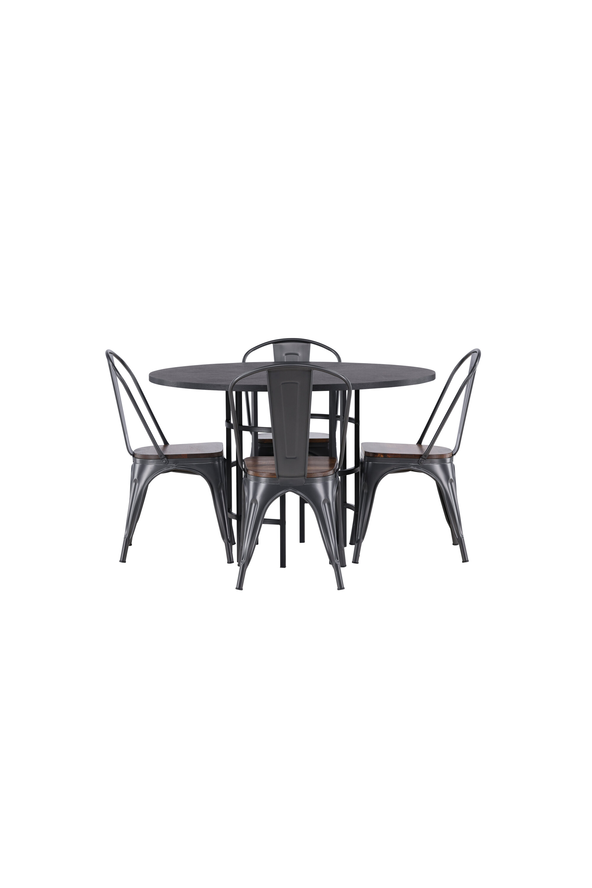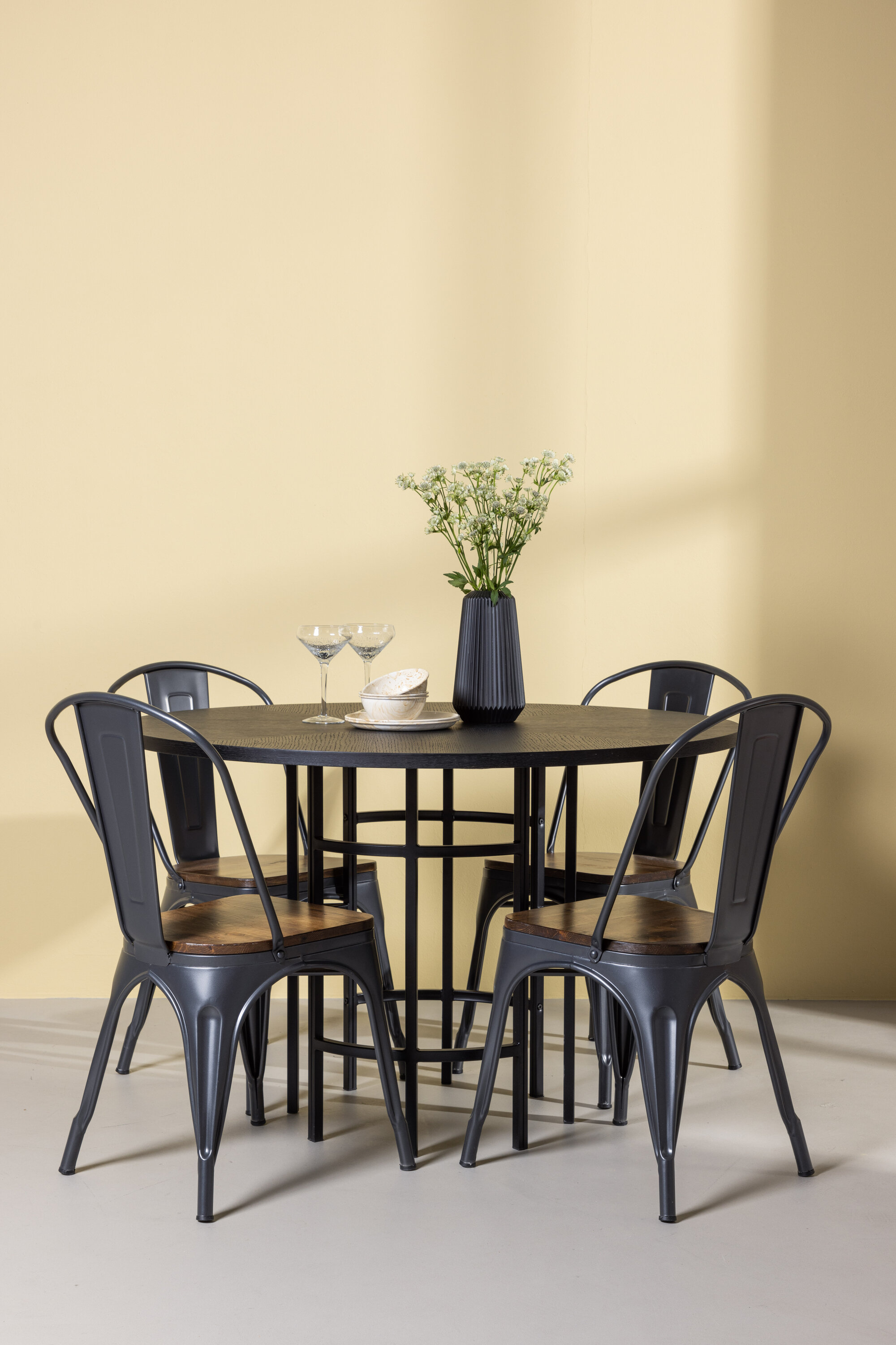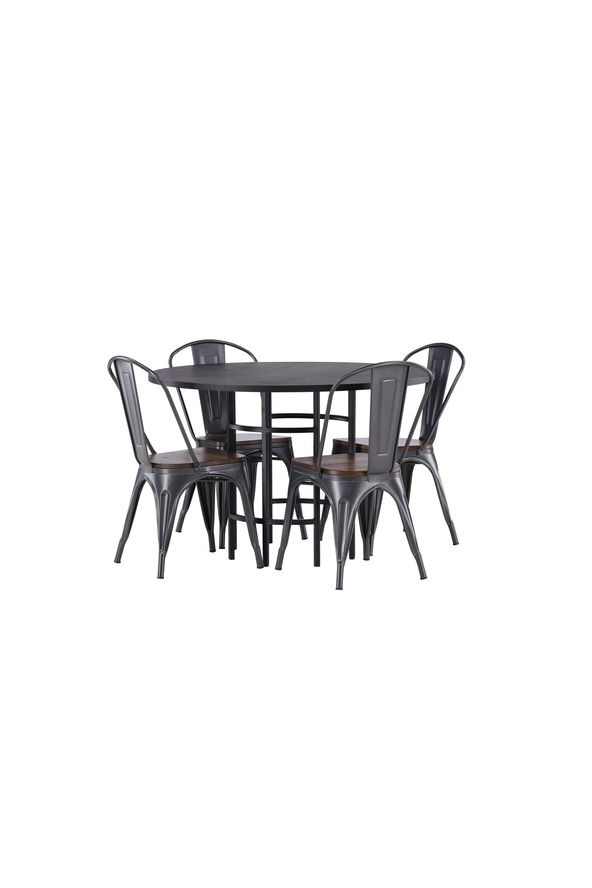 Tööstusdisain kohtub Skandinaaviaga! Meie ümaral söögilaual Copenhagen on elegantne must MDF-plaadist lauaplaat ja mustast metallist dekoratiivne silindrikujuline alus. Siin trendikas kombinatsioonis Tempe sarja söögitoolidega. Toolil on klassikaline maalähedane tool, mille jalad on tumehallist terasest ja iste on tumedast puidust. See on stiilne ja luksuslik! Laua mõõdud: 115 cm.