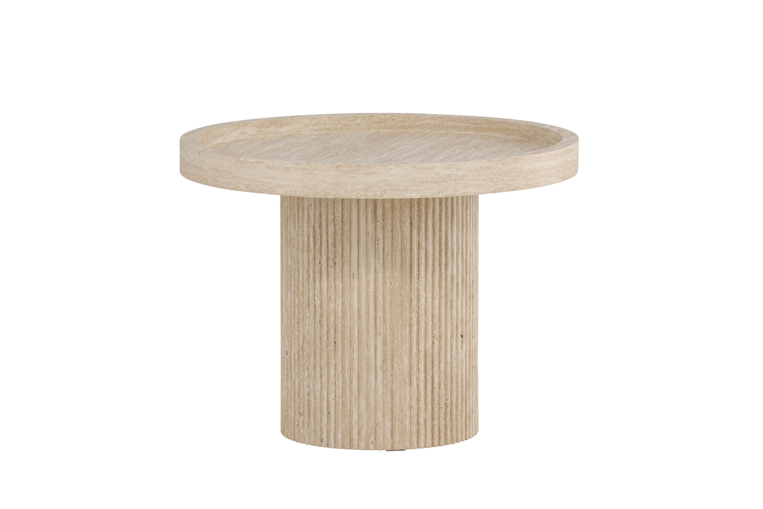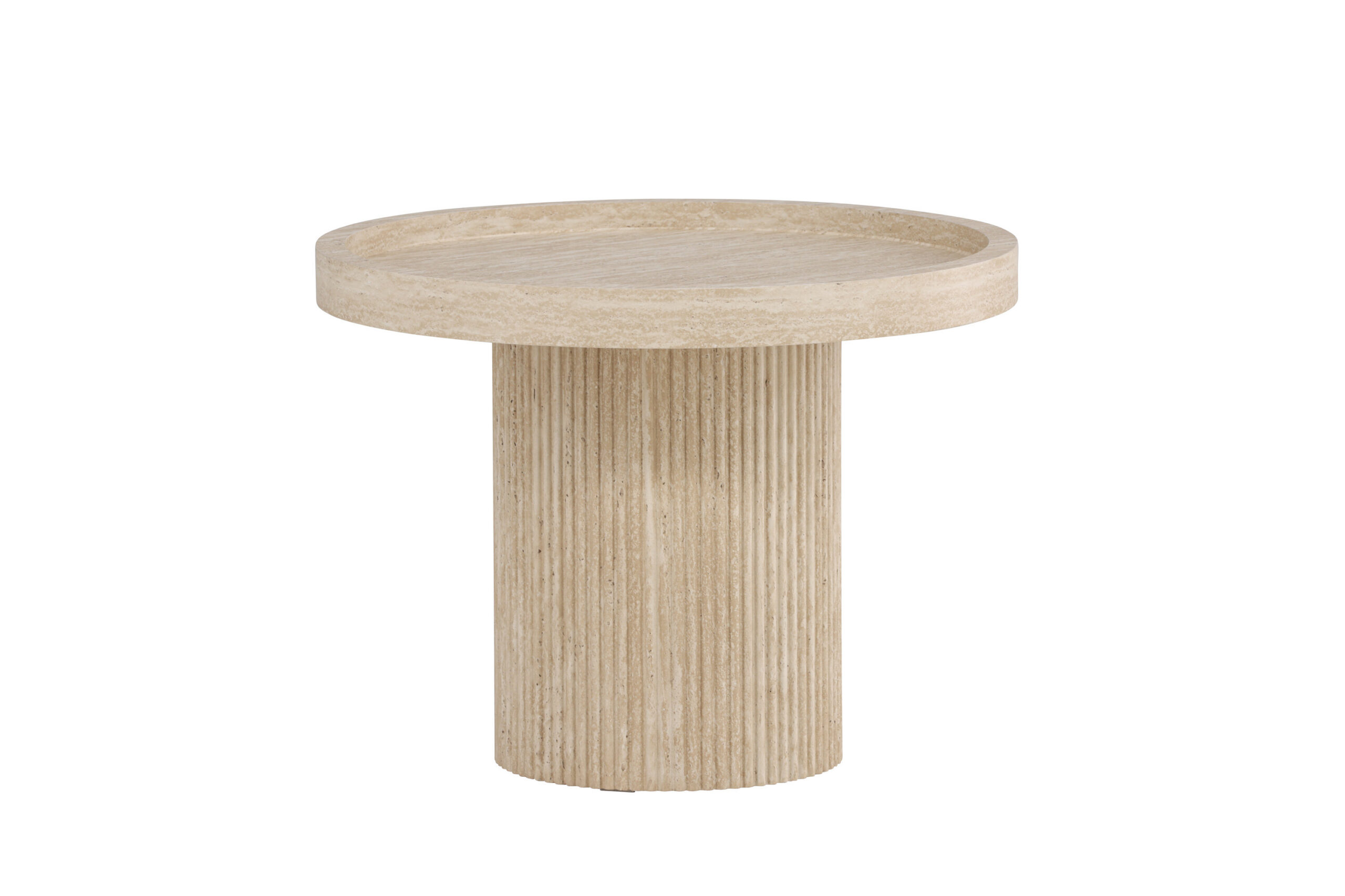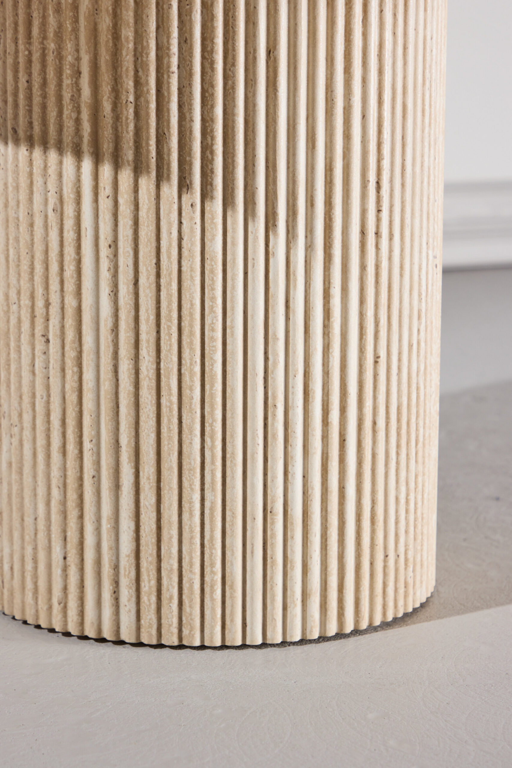 Laud on valmistatud travertiini välimusega viimistlusega, pakkudes sooja, loomulikult beeži tooni, mis sobib paljude interjööristiilidega. Sellel on ribilise disainiga silindriline jalg, mis lisab nii stabiilsust kui ka stiilset detaili.