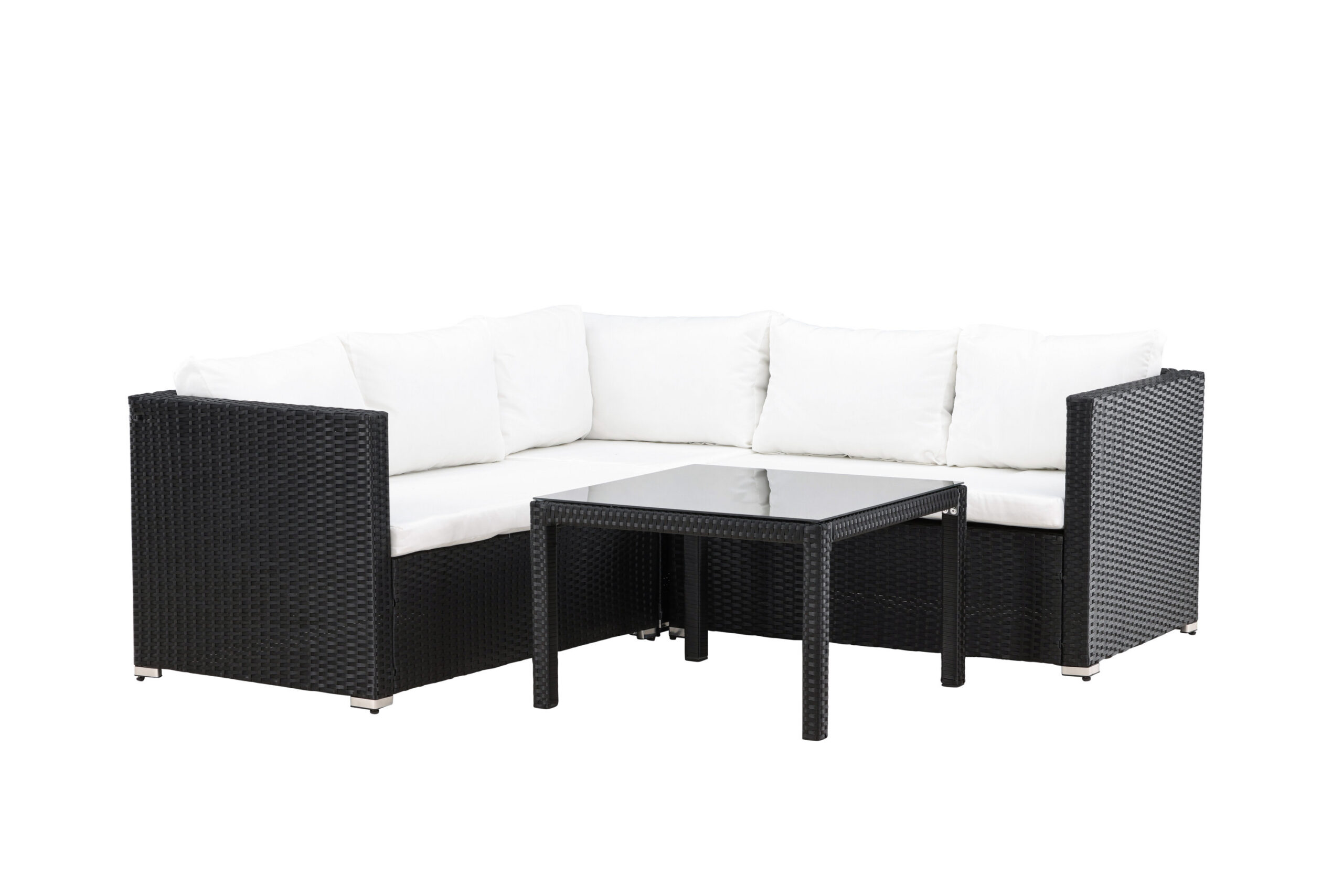 Kuuba, kõrge kvaliteediga mustast kunstrotangist moodne salongigrupp, mis on sel suvel terrassil või rõdul garanteeritud. Salongigrupp koosneb nurgadiivanist, mis on moodulkujul, seega saab seda mitmel viisil kombineerida, siin 4 istekoha ja nurgaga. Kaasa arvatud valged pehmed padjad ja ristkülikukujuline mustast klaasist lauaplaadiga kohvilaud. Mõõdud: 180×180 cm. Vajalik on kergem montaaž. Siin saate oma külalistega mugavalt istuda ja hilissuveõhtuid nautida!