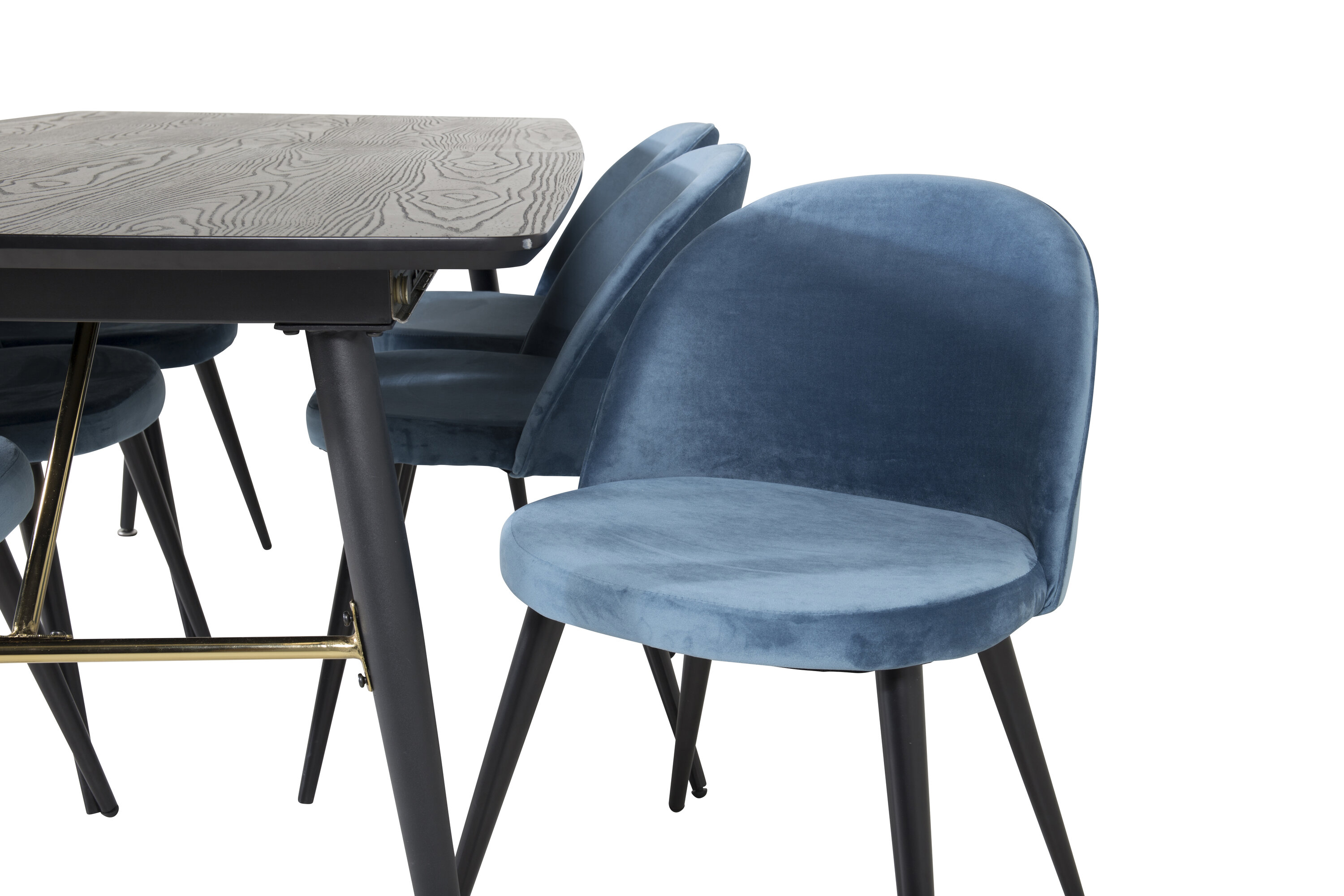 Erinevate värvide ja erinevate materjalide kombineerimine teeb kõik tavaliselt suurepäraselt. Söögilaual Gold on põhjas luksuslikud kuldsed detailid ja see on siin pikendatud, mis on siin kombineeritud stiilsete siniste toolidega sarjast Velvet. Looge midagi korralikku ja sotsiaalset, kus on ruumi heale toidule ja suhtlemisele!