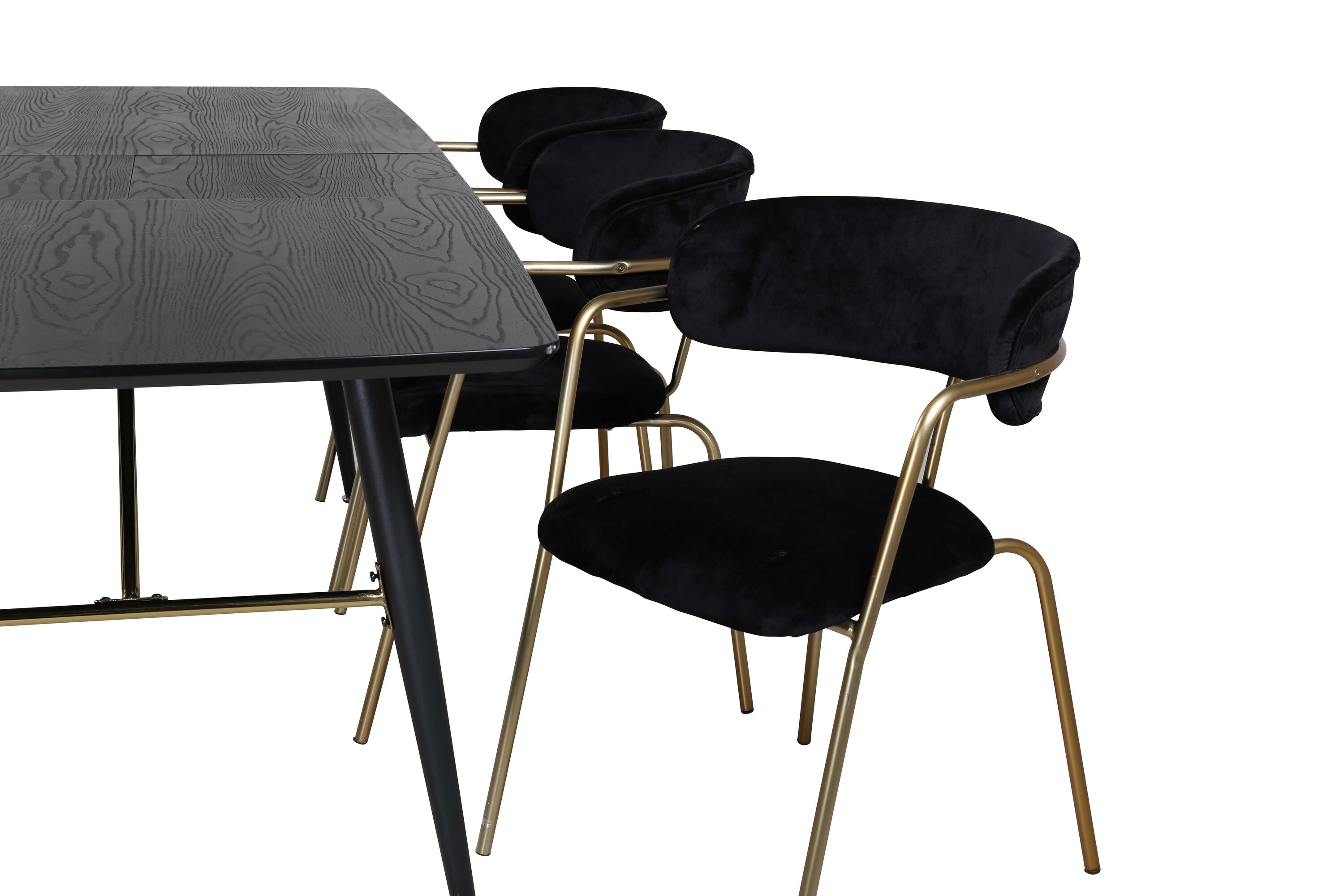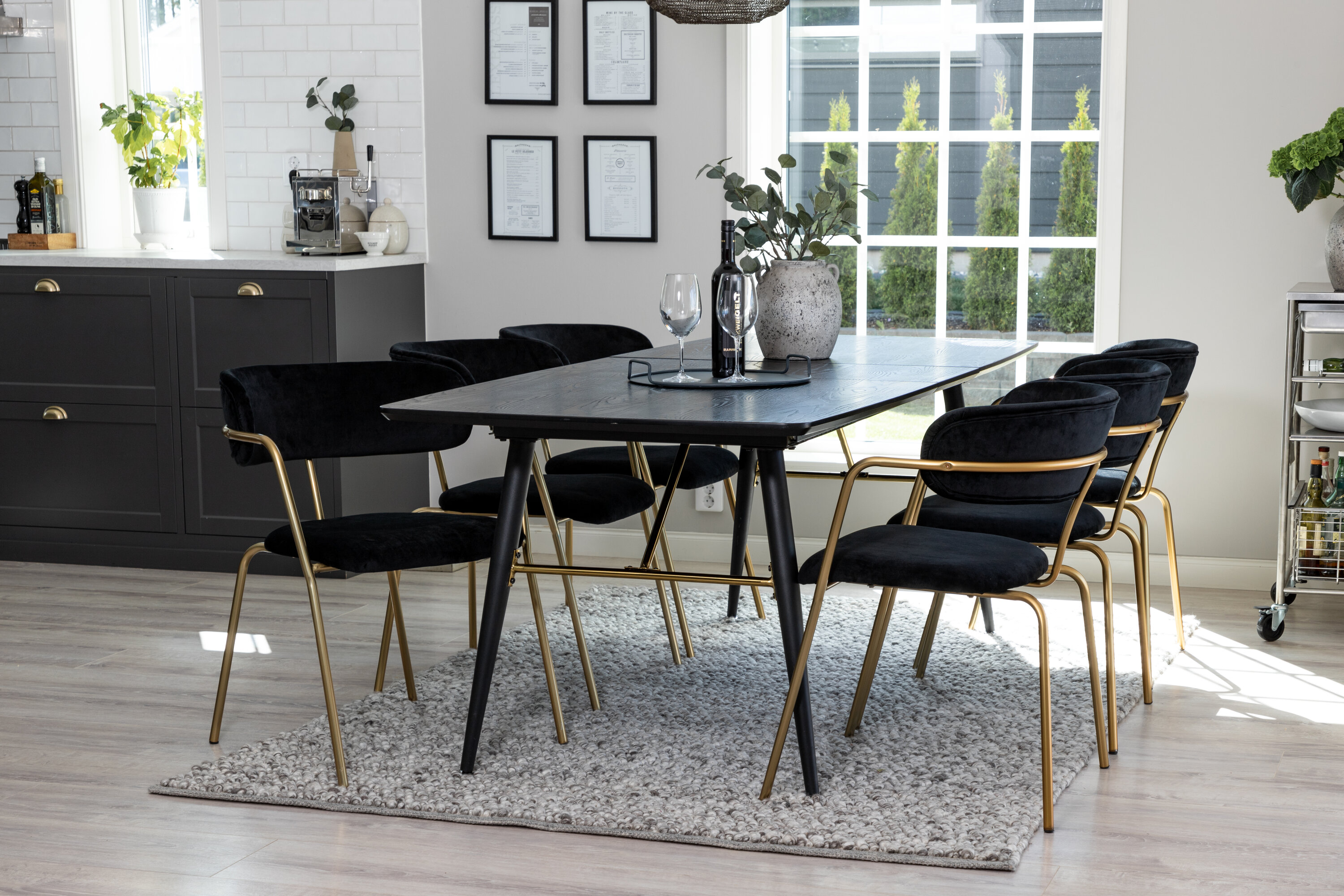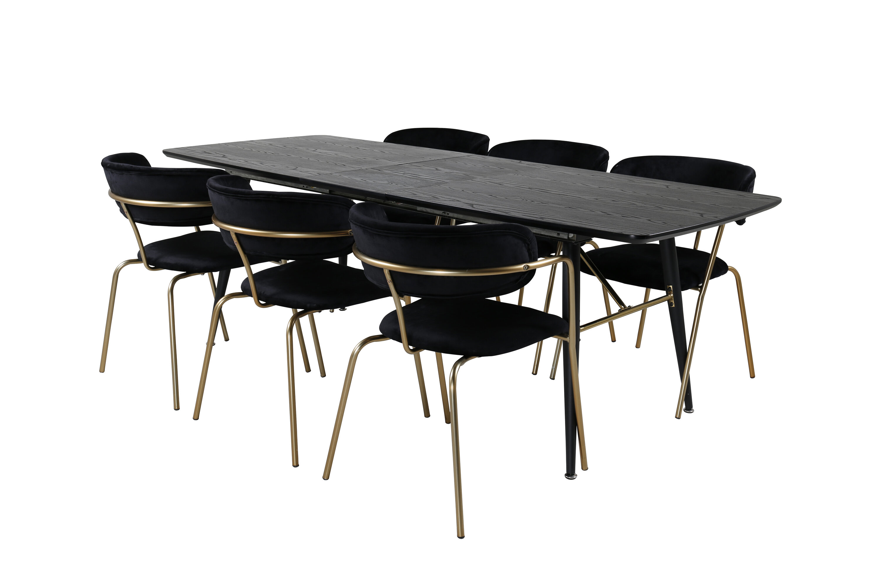 Pikendatav söögilaud Gold ja toidutoolid Arrow on siin maitsvalt kombineeritud luksuslike messingdetailidega. Las kodu iseloomustab teie uus pilkupüüdev toidugrupp!