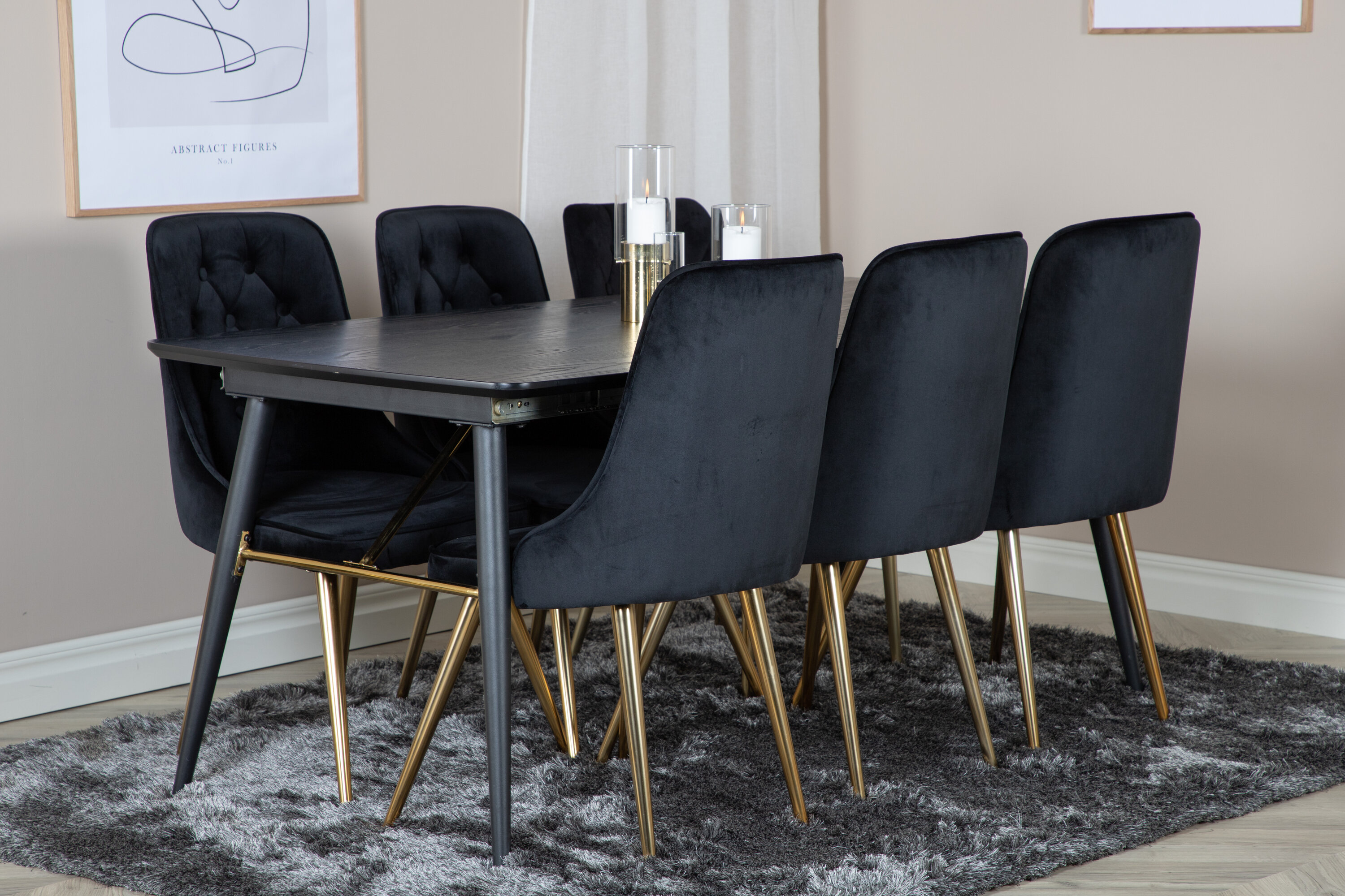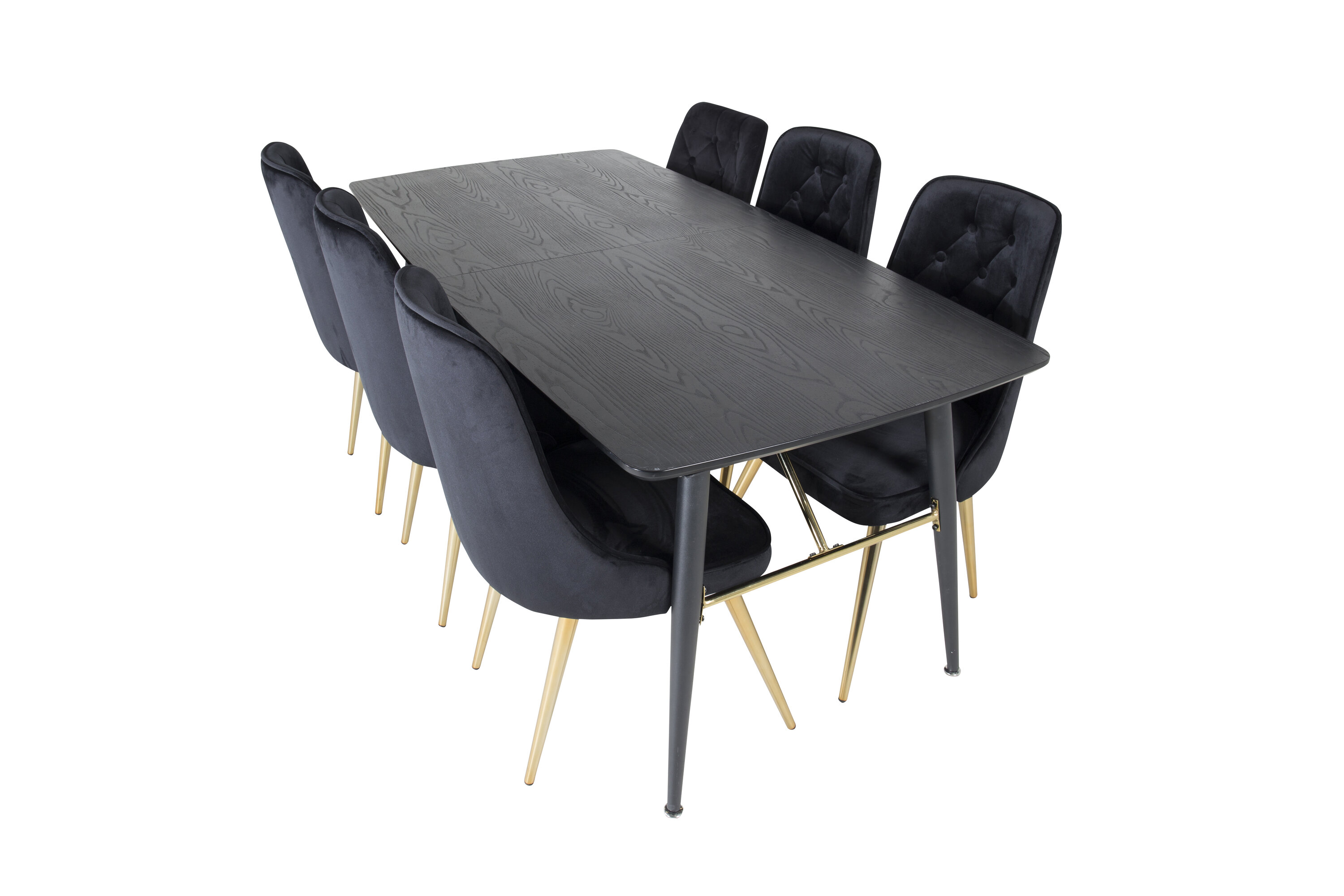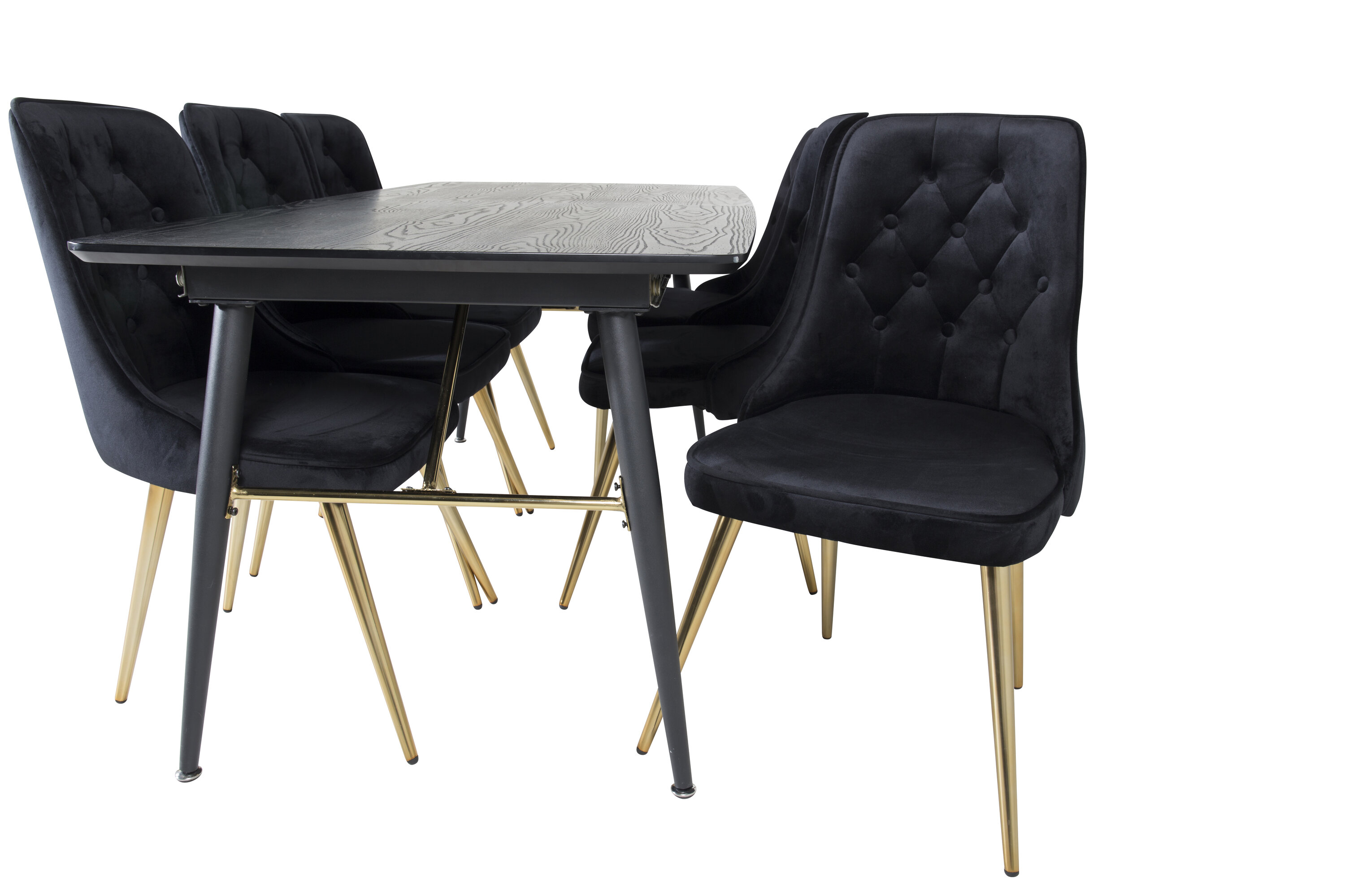 Valmistoidugrupi ostmine on ühtaegu trendikindel ja praktiline! Siin ühendame oma pikendatava söögilaua Gold koos istmesõbralike mustade söögitoolidega Velvet. Lase kodu südant iseloomustada teie uus pilkupüüdev toidugrupp.