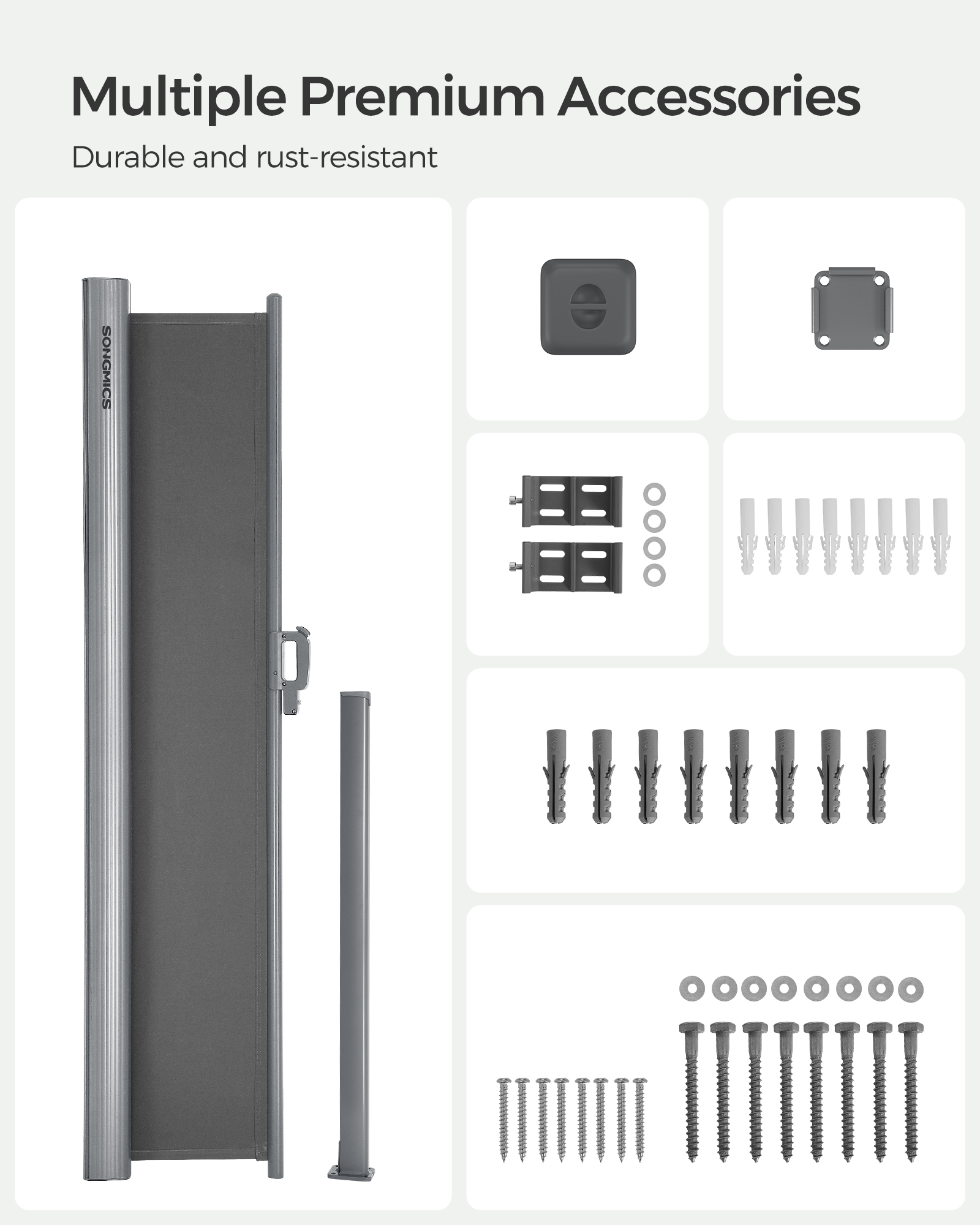 Spetsifikatsioonid: – Värvus: hall – Materjal: alumiiniumraam, 280 g/m² polüesterkangas veekindla PU-kattega – Toote mõõdud: 180 x 400 cm (K x P) – Toote kaal: 10 kg Pakisisu: – 1 x külgmarkiis – 1 x tarvikute kott – 1 x juhend (EN, DE, FR, IT, ES)