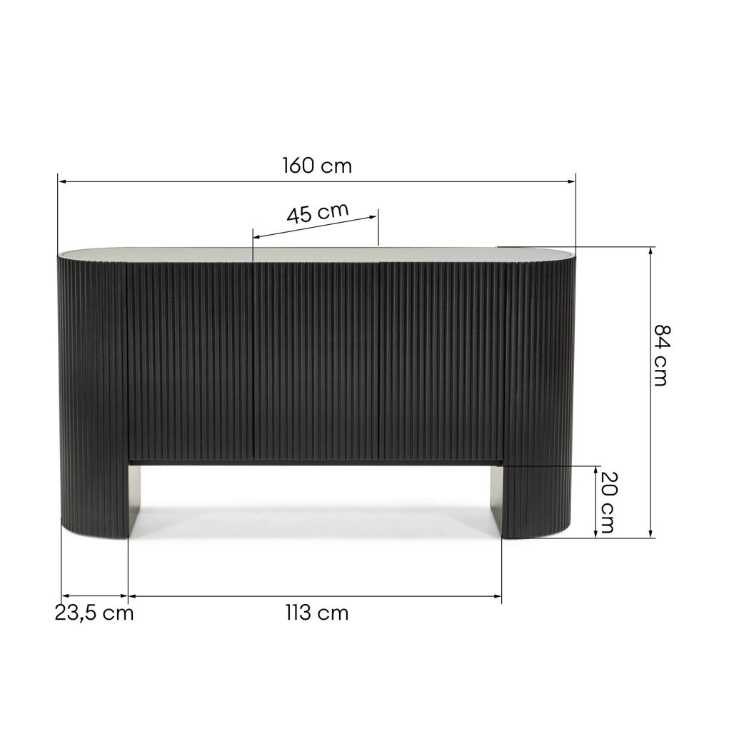 NOIR kummut on ideaalne segu moodsast disainist ja funktsionaalsusest tuues harmooniat igasse interjööri. Selle ümarad servad ja ovaalne kuju lisavad peent elegantsi samas kui ribiline pind annab sellele erilise iseloomu. Kummutil on kolm avarat sektsiooni mis pakuvad rohkelt ruumi riiete voodipesu dokumentide või muude oluliste asjade jaoks aidates teie ruumi korras hoida. Olenemata sellest kas eelistate minimalistlikku või kaasaegset interjööri sobib NOIR sujuvalt igale stiilile lisades nii elegantsi kui ka praktilisust. Lauaplaat on valmistatud täielikult looduslikest materjalidest paagutatud kivist saavutades marmorja välimuse ja pakkudes samal ajal praktilisi eeliseid. See on kergesti hooldatav kriimustuskindel ning vastupidav kõrgetele temperatuuridele ja niiskusele mistõttu sobib see ideaalselt igapäevaseks kasutamiseks. Toote omadused: Matt must viimistlus Ribiline pind Lauaplaat on valmistatud täielikult looduslikust paagutatud kivist mis on kriimustus- pleki- UV-kiirguse- ja kõrge temperatuurikindel Ovaalne kuju Trendikas ümar disain Varustatud kolme suletud sektsiooniga Sisaldab spetsiaalset seinakinnitust täiendava stabiilsuse tagamiseks Mõõtmed: Kõrgus: 84 cm Laius: 160 cm Sügavus: 45 cm Jala kõrgus: 20 cm Jala laius: 23 5 cm