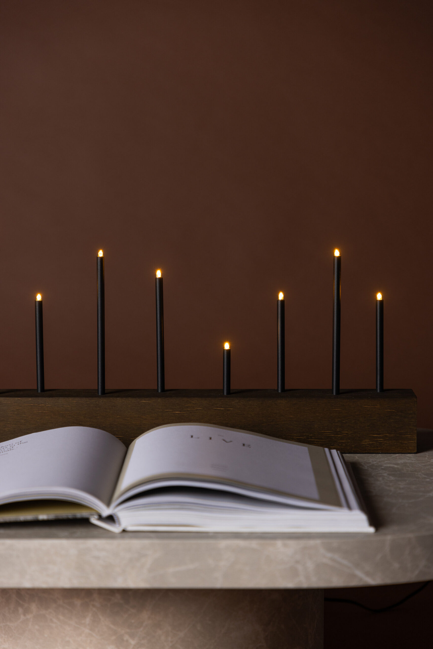 See lamp on kunstipäraselt kujundatud ristkülikukujulise pähklivärvi MDF-alusega, mis mahutab neliteist väikest mustast metallist lampi. Selle klanitud ja õhuke välimus muudab selle ideaalselt sobiva detaili igasse kaasaegsesse kodusse. See on lihtsalt ideaalne lauavalgustiks ja töötab ühtviisi hästi nii magamistoas, elutoas kui ka kontoris.