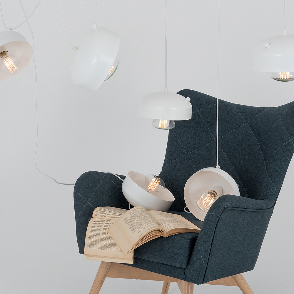 Popo lambi loomise suurimaks inspiratsiooniks oli industrialismi mood. Seega olid kasutatud avatud juhtmeid ja lambid. Moodsates prožektorites nähtud varjud annavad lambile mässumeelse võlu.
