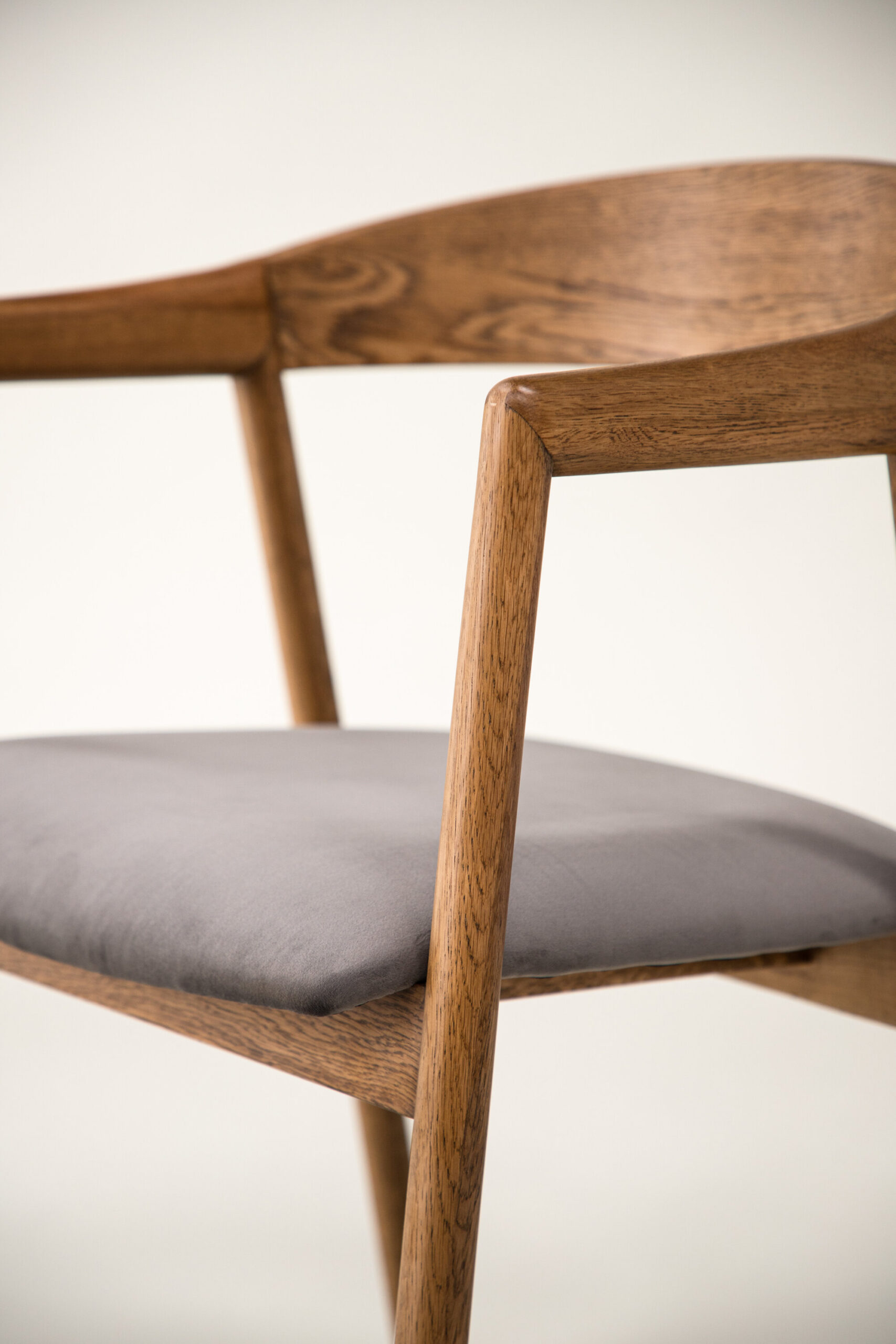 Kõigi moeteadlike interjöörigurude tool kohe! Söögitool Långön avaldab muljet oma skandinaavialiku disaini, tammevärvi viimistluse ja pehmete ümarate vormidega. Toolil on integreeritud käetoed ja kergelt laienevad ektriinist jalad ning sametkangast hall iste, mis jätab üldkujundusele pehme ja kutsuva mulje! Sobi mõnusa lauaga ja naudi mõnusaid eineid kaasaegses toidugrupis!
