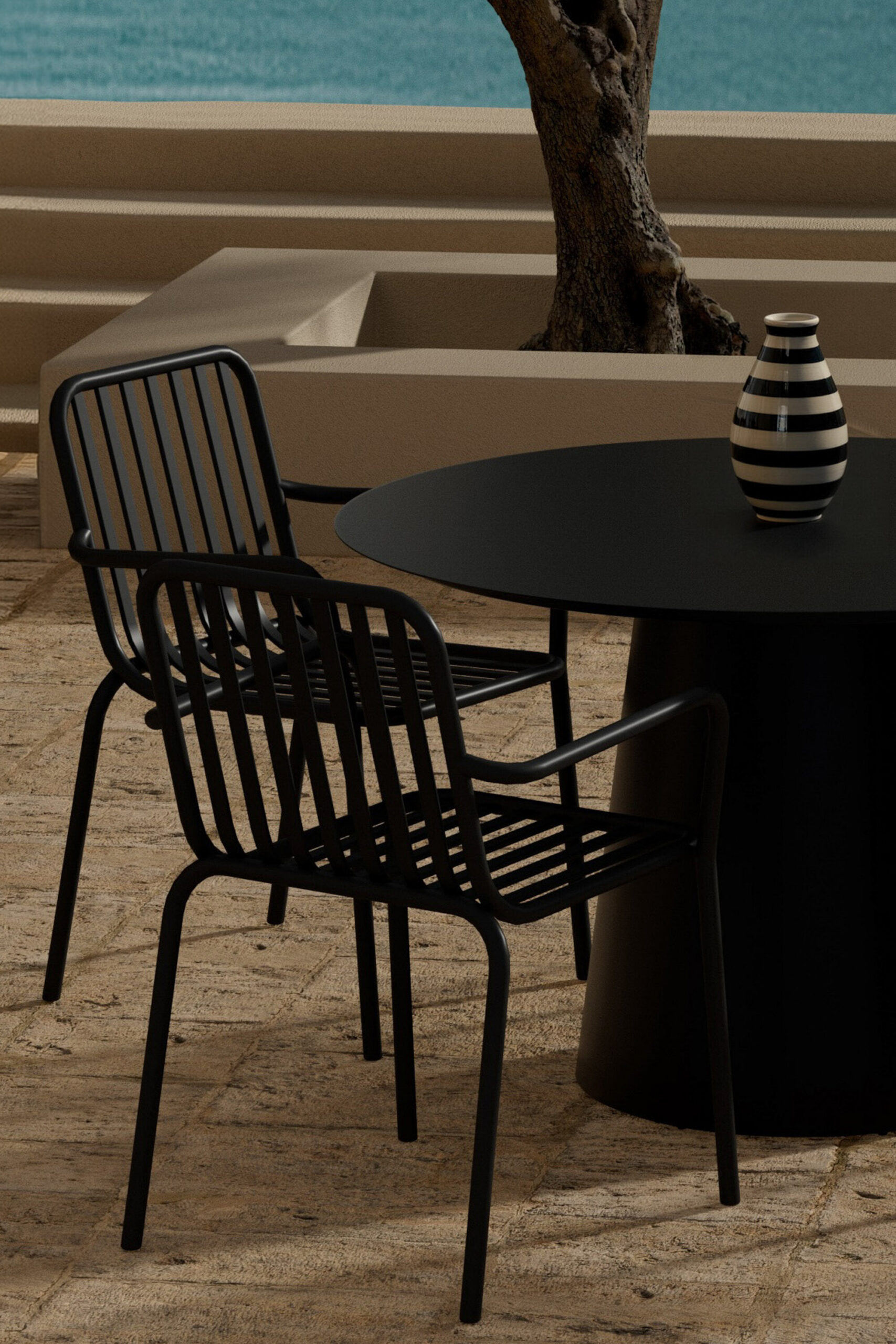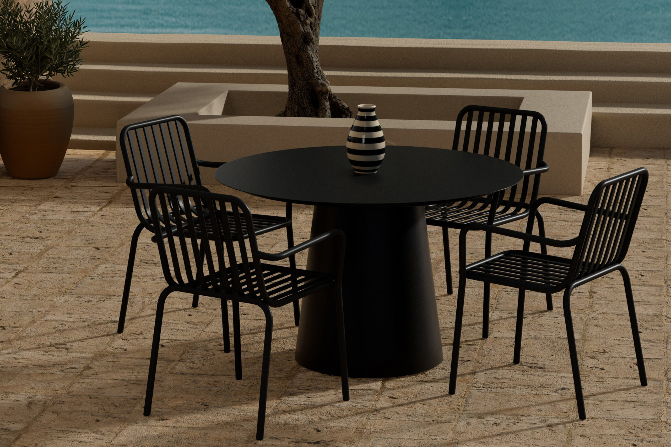 Toode on FSC®-sertifikaadiga (FSC®C177288), mis tähendab, et see on valmistatud puidust, mis on pärit vastutustundlikust metsandusest, mis arvestab inimesi ja keskkonda. Selle stiilse Pekingi söögitoolide ja eksklusiivse ümmarguse söögilaua Lanzo kombinatsiooniga looge moodne ja elegantne välisöögituba. Pekingi söögitoolil on liistude disain ja suitsumust värv, mis annab ajatu ja kaasaegse ilme. See on valmistatud kergest alumiiniumist ja sellel on integreeritud käetoed lisamugavuse tagamiseks. Tool on ka virnastatav, mistõttu on seda lihtne liigutada ja praktiline hoida. Lanzo söögilaud on 120 cm läbimõõduga ümarlaud, mis loob loomuliku ja sotsiaalse kogunemiskoha. Stiilne disain koos koonusekujulise põhjaga annab lauale eksklusiivse tunnetuse ning tugev alumiiniumkonstruktsioon muudab selle nii stabiilseks kui ka hõlpsasti sobitavaks erinevates väliskeskkondades.