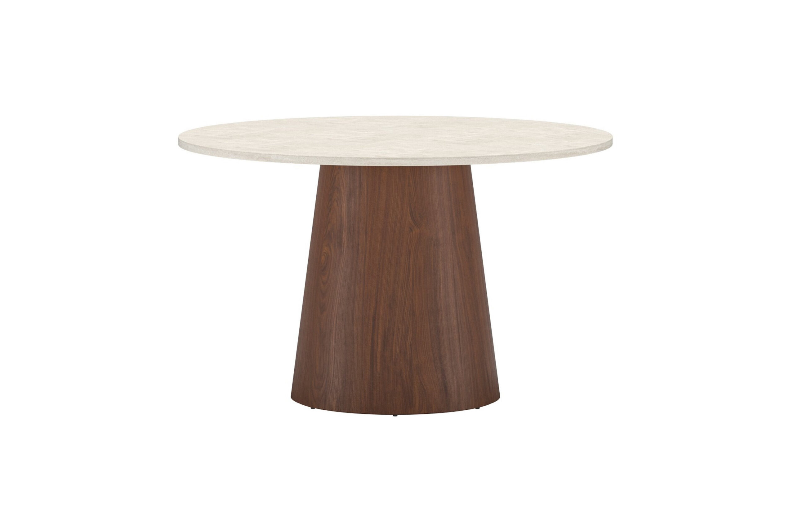 Lanzo on elegantse disainiga ümmargune söögilaud, mis sobib suurepäraselt seltskondlikuks söögiks ja vestluseks. Soe mokatoon on ühendatud travertiini välimusega heleda lauaplaadiga, luues elegantse ja kaasaegse kontrasti.
