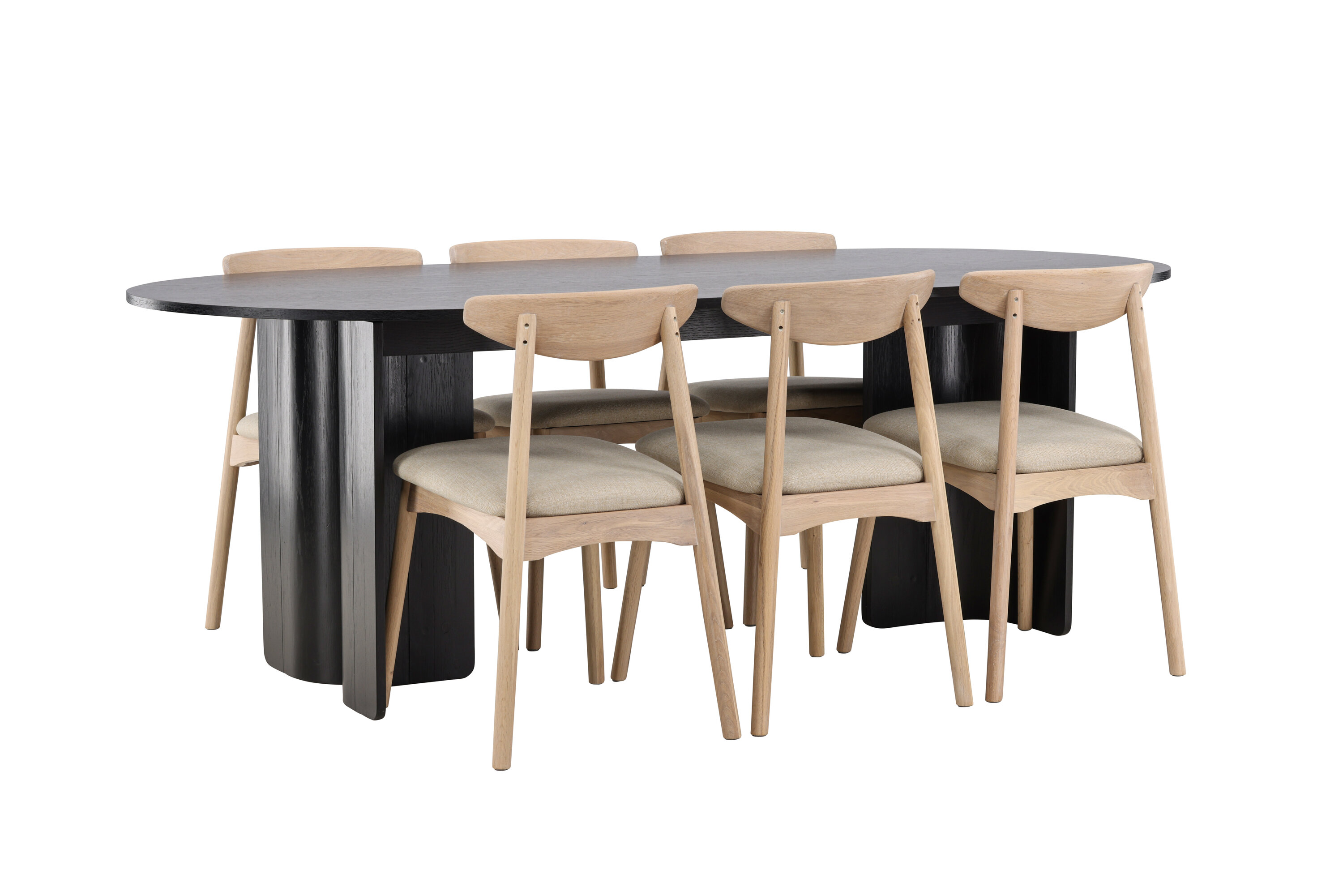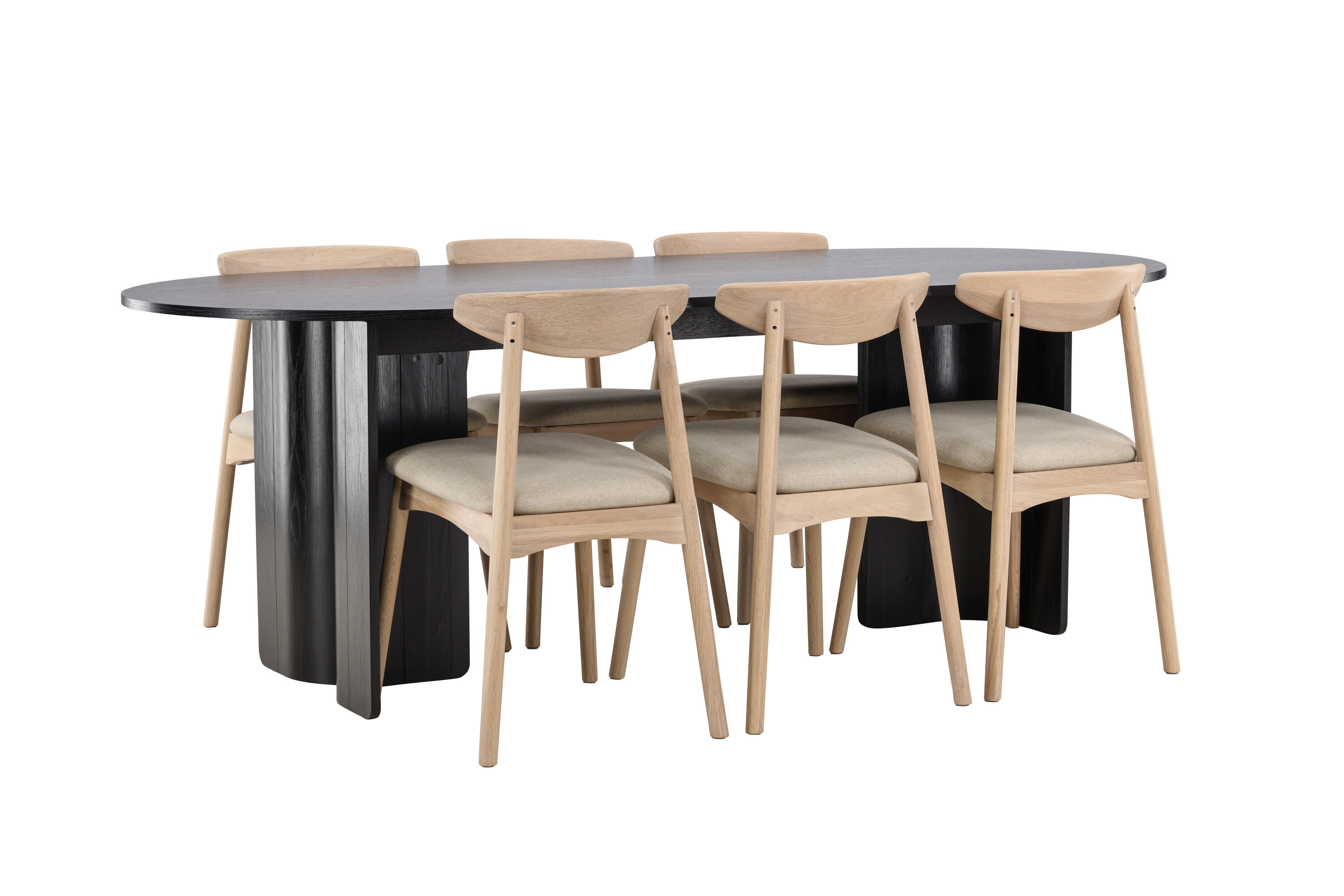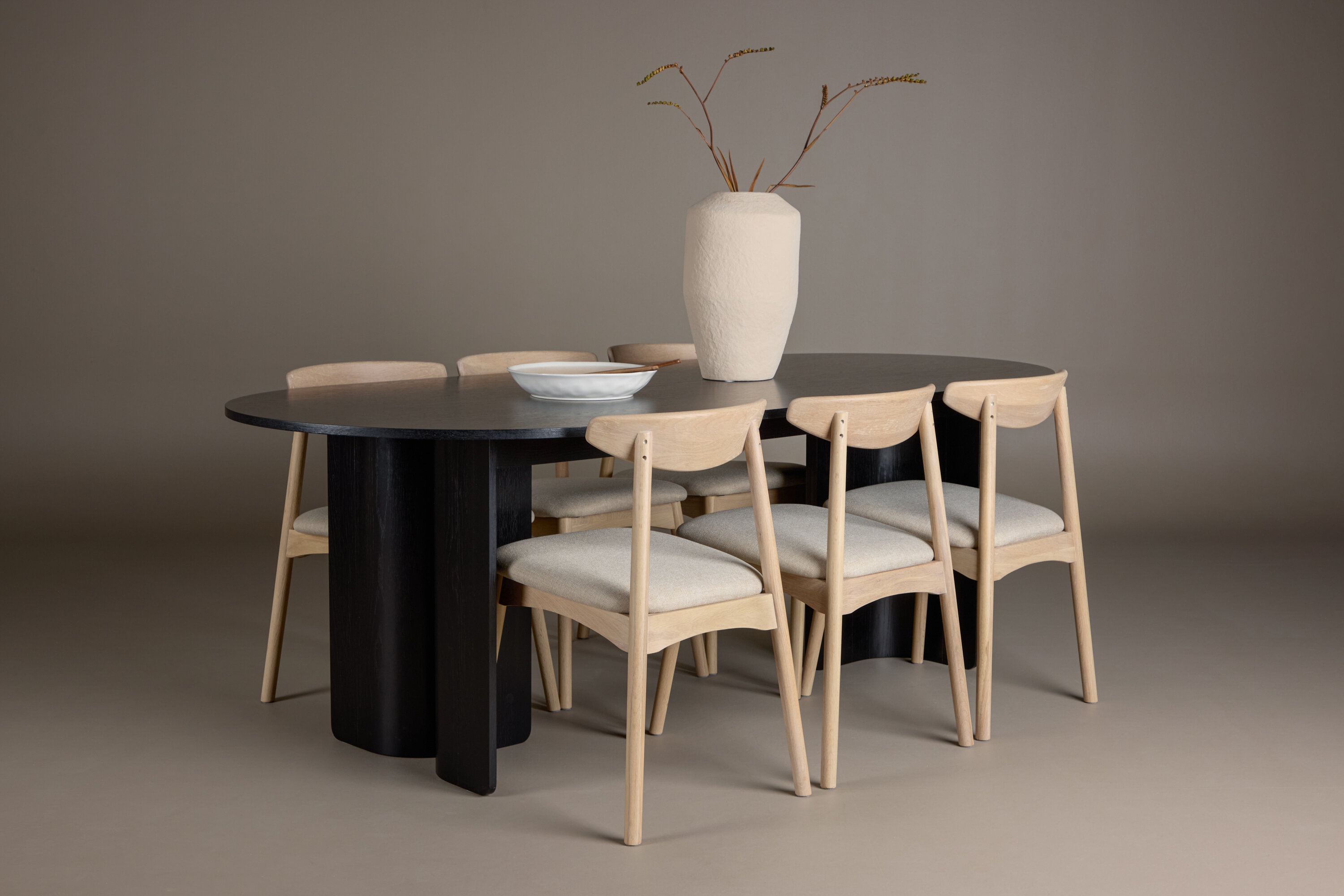 Looge oma toas elegantne kontrast ja tõeline fookuspunkt Tyresö 100×220 cm musta söögikomplektiga, mis on kombineeritud valgevärvitud Ven toolidega. Tume, julge laua ja heledate toolide kombinatsioon loob keeruka tasakaalu moodsa disaini ja Skandinaavia soojuse vahel.