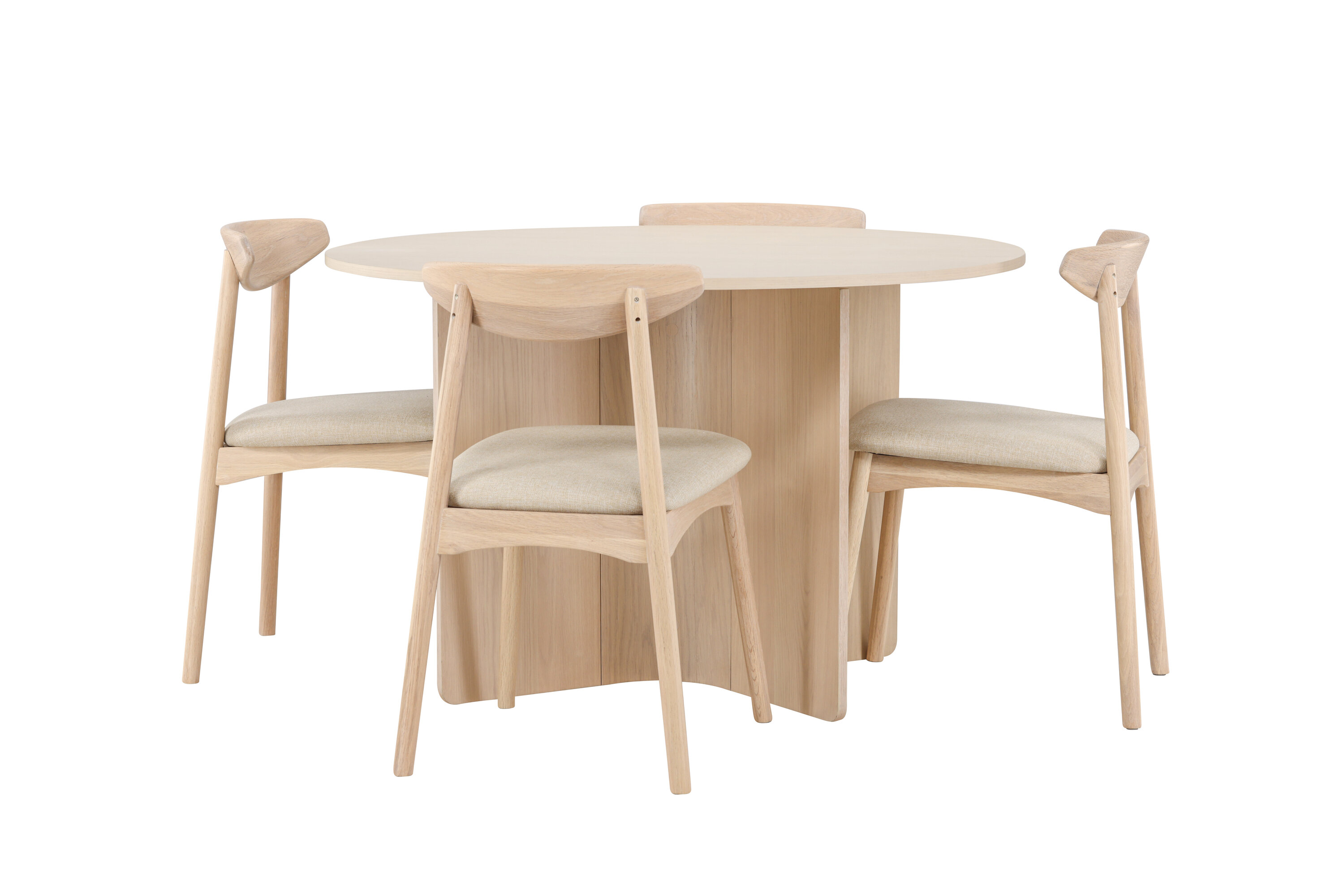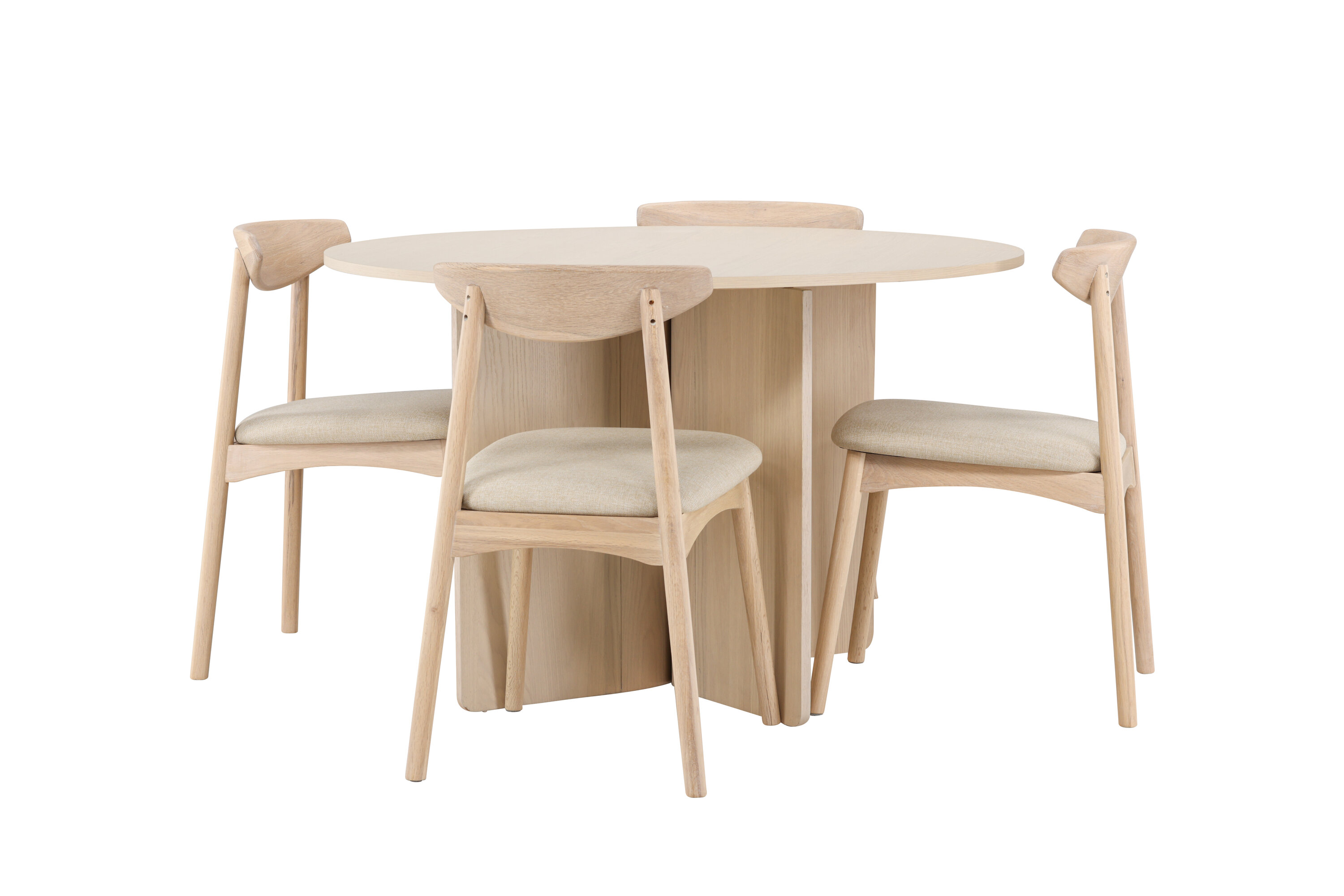 Veni toolid täiendavad lauda oma pehmete vormide, mugavate istmete ja ajatu disainiga. Puidu kombinatsioon valgevärvilises viimistluses loob loomuliku ja skandinaavialiku ilme, mis sobib nii modernsesse kui ka klassikasse interjööri.