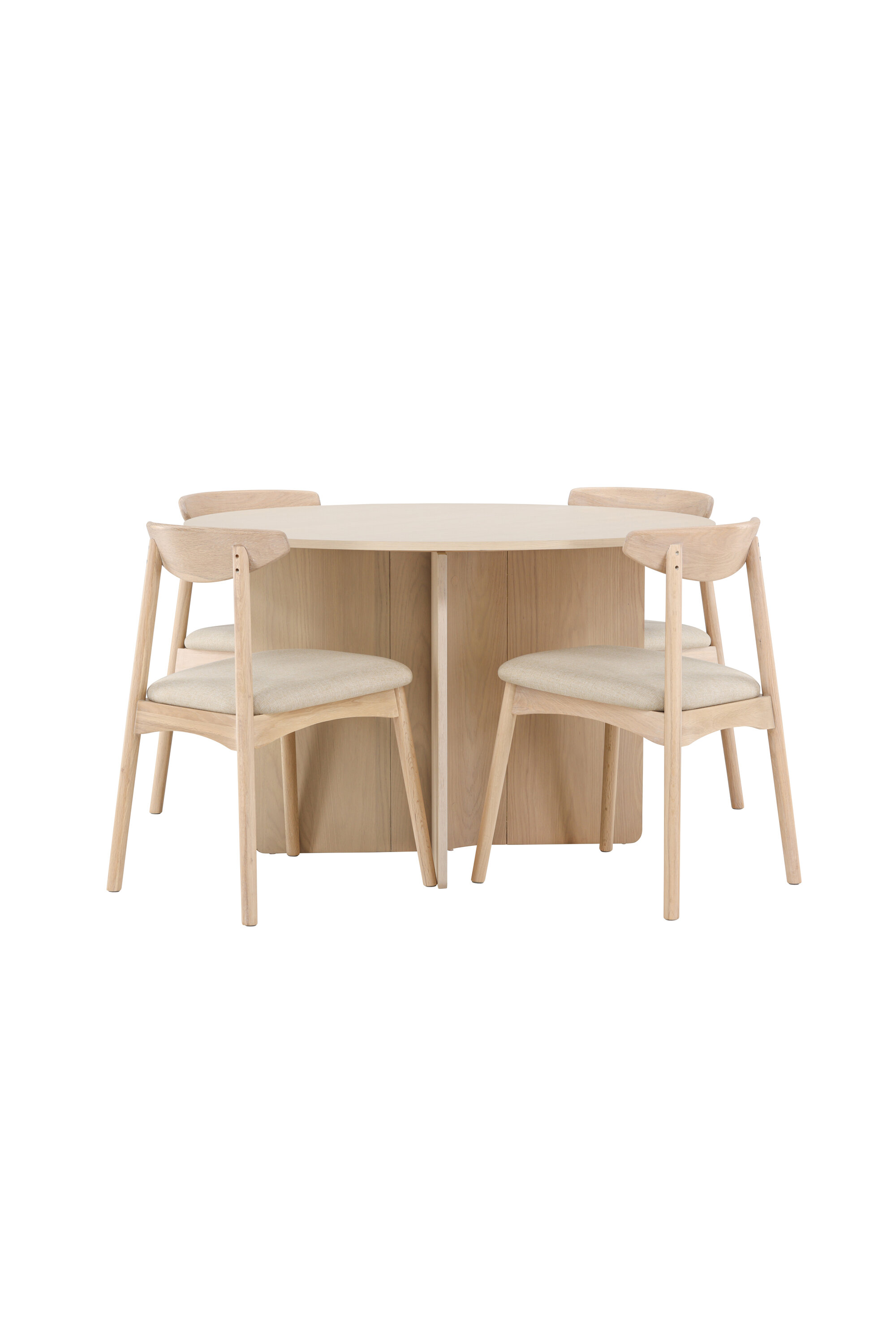 Looge särav ja harmooniline söögituba meie elegantse valgevärviga Tyresö söögikomplektiga. Ümmargune Ø120 cm lauaplaat pakub kutsuvat tunnet ja muudab laua taga olevate inimeste jaoks lihtsaks ühenduse luua – ideaalne nii igapäevaseks söögiks kui ka pika nädalavahetuse hommikusöögiks.