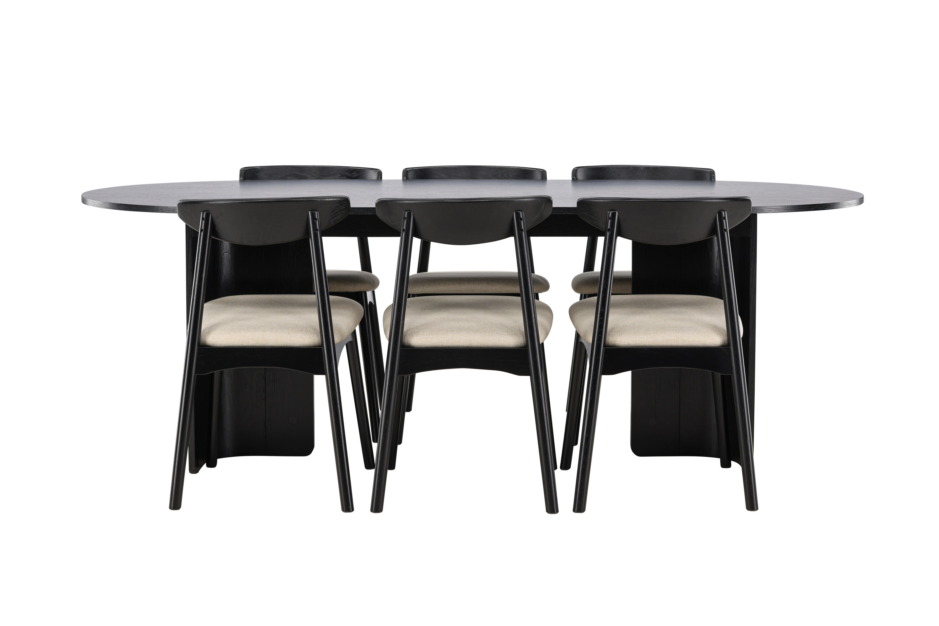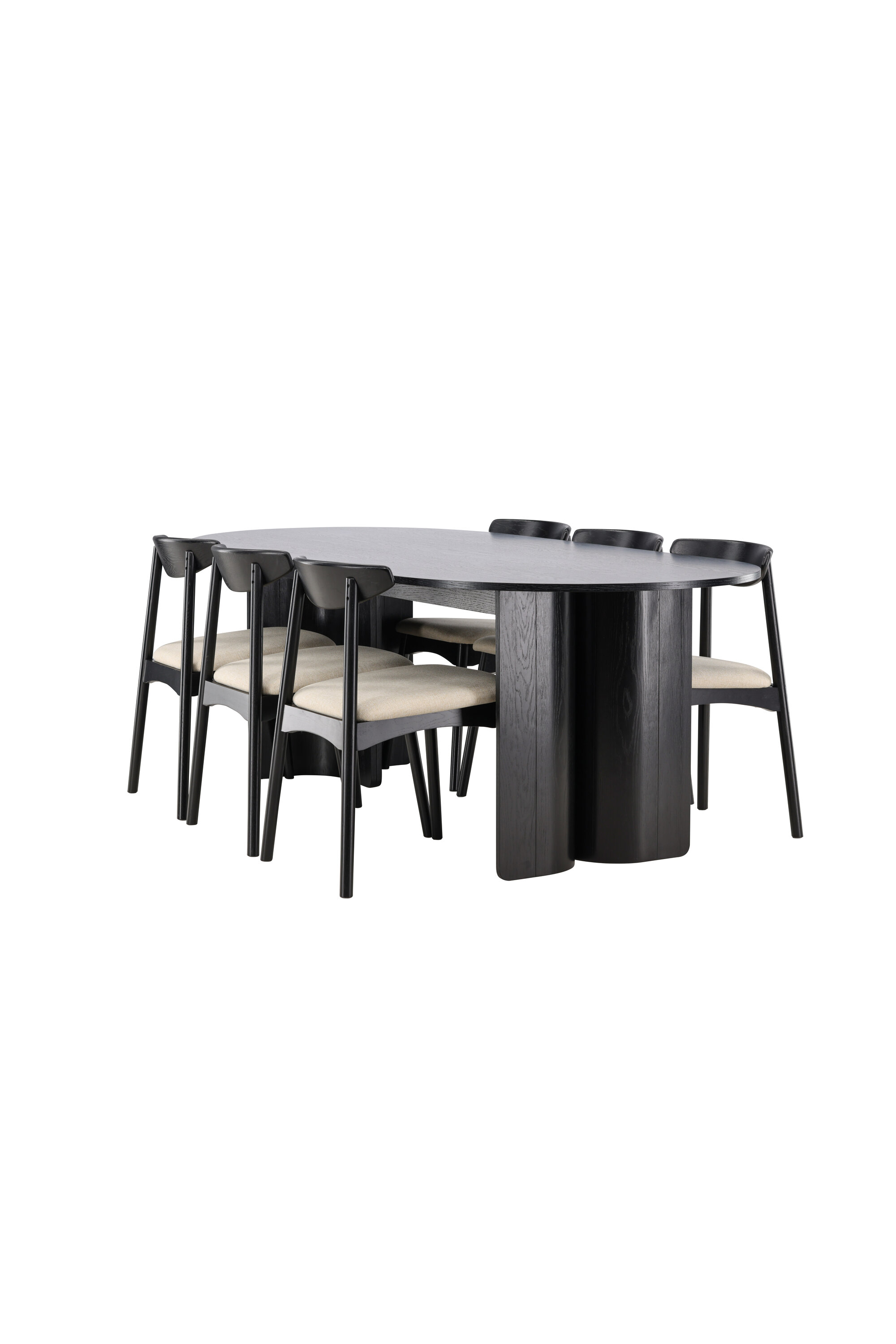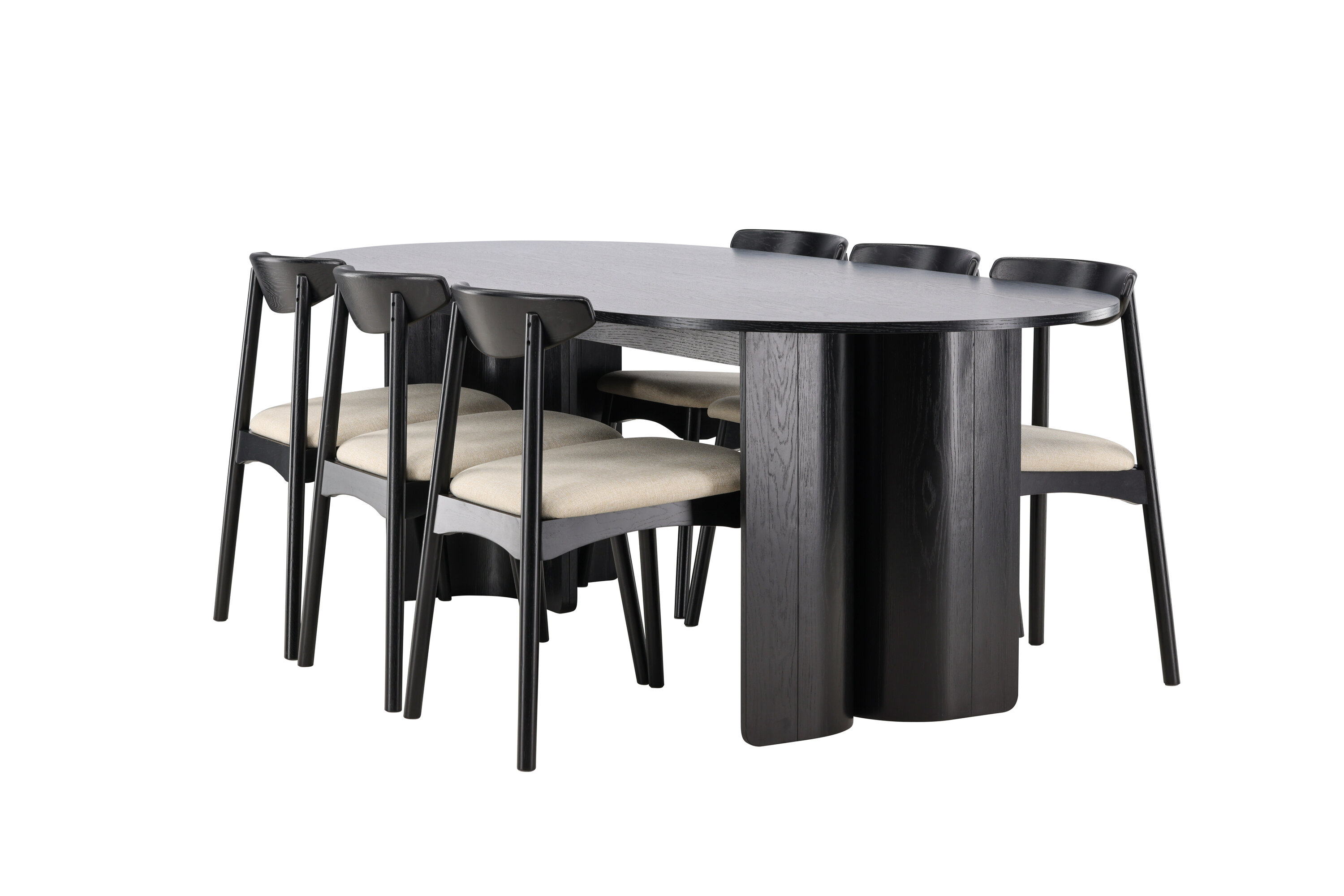 Kaasasolevatel Ven toolidel on must raam, mis harmoneerub lauaga, beež istmepadi lisab aga sooja ja pehmet kontrasti. Üheskoos moodustavad need tasakaalustatud koostise, mis sobib nii igapäevasteks söögikordadeks kui ka suuremateks koosviibimisteks.