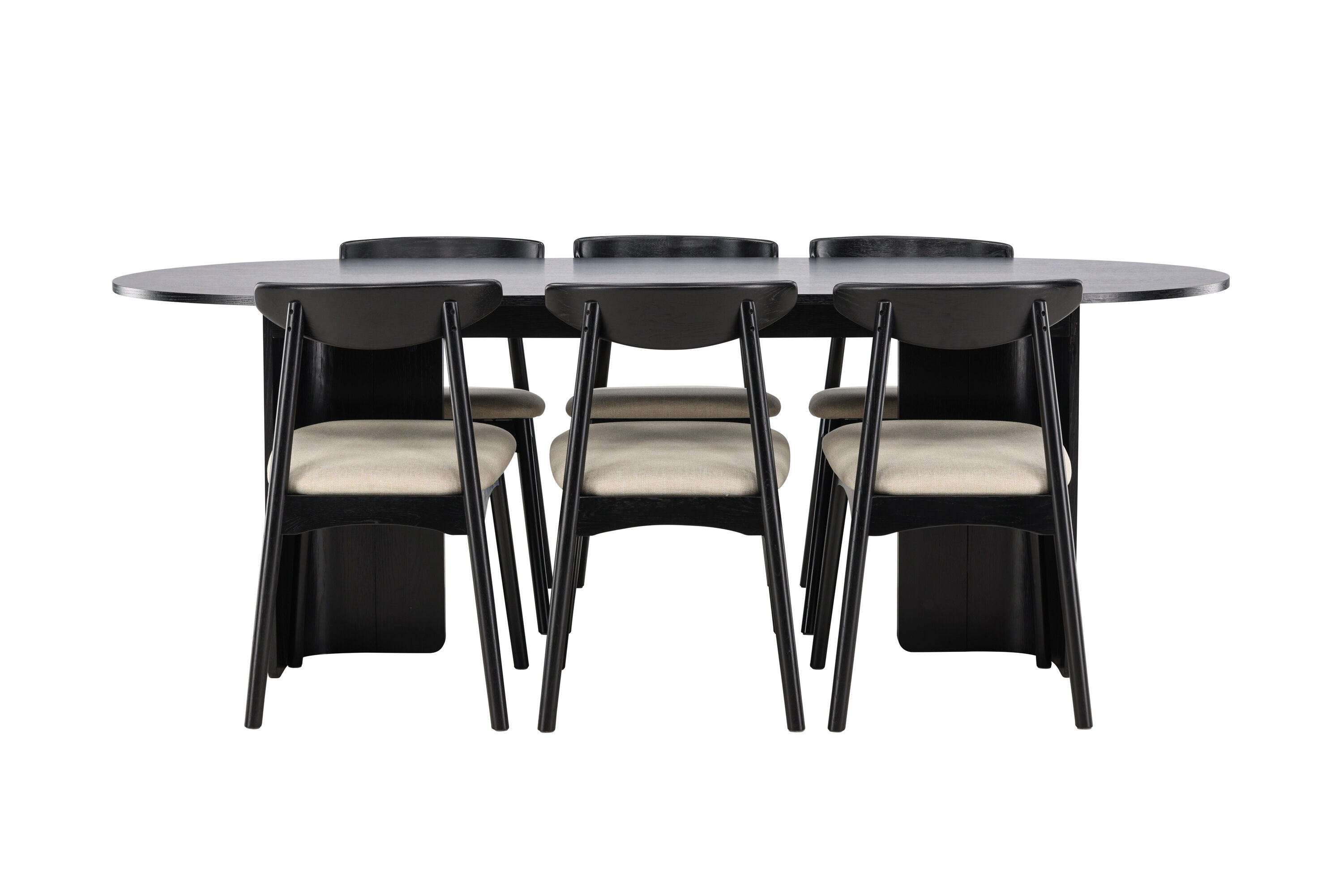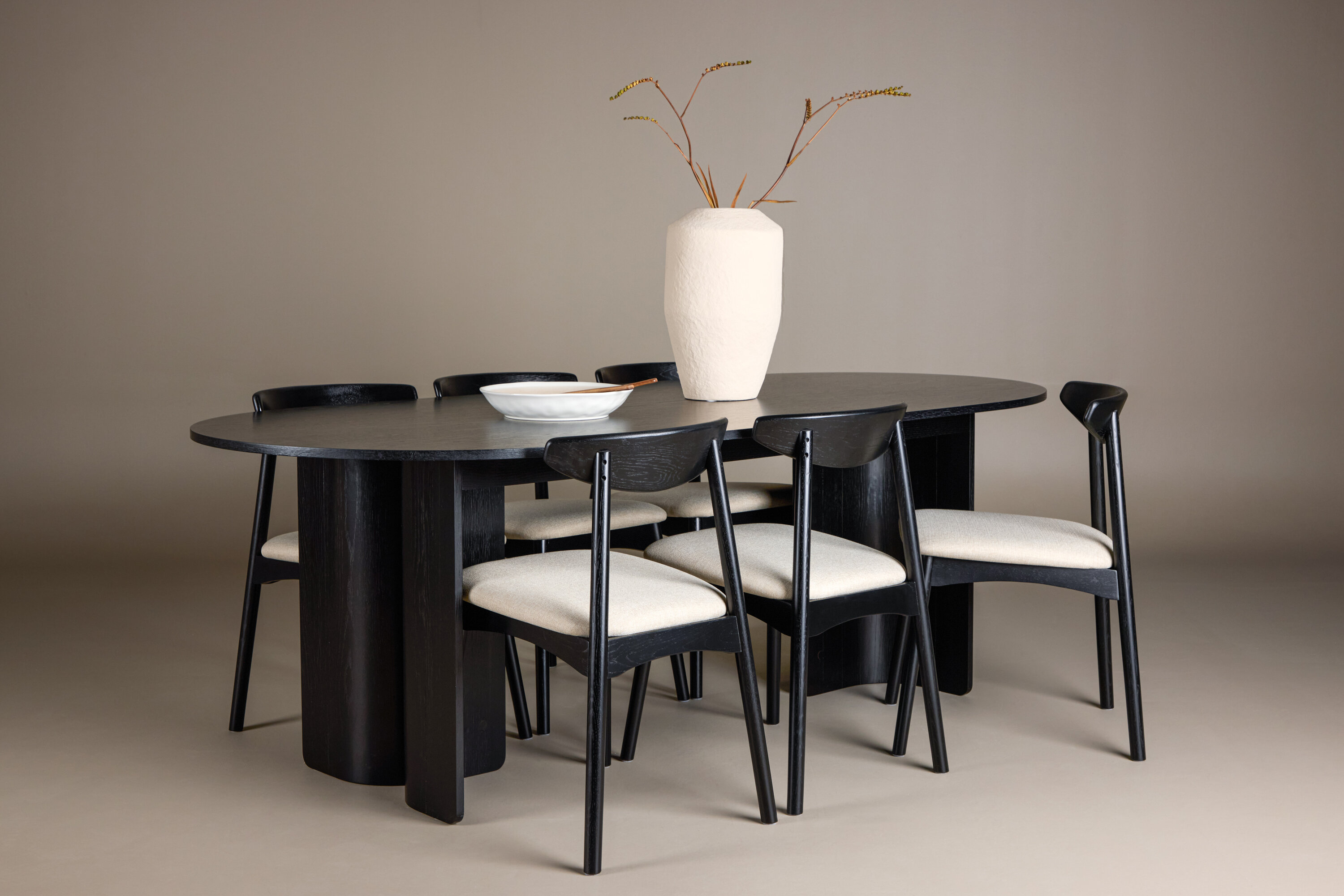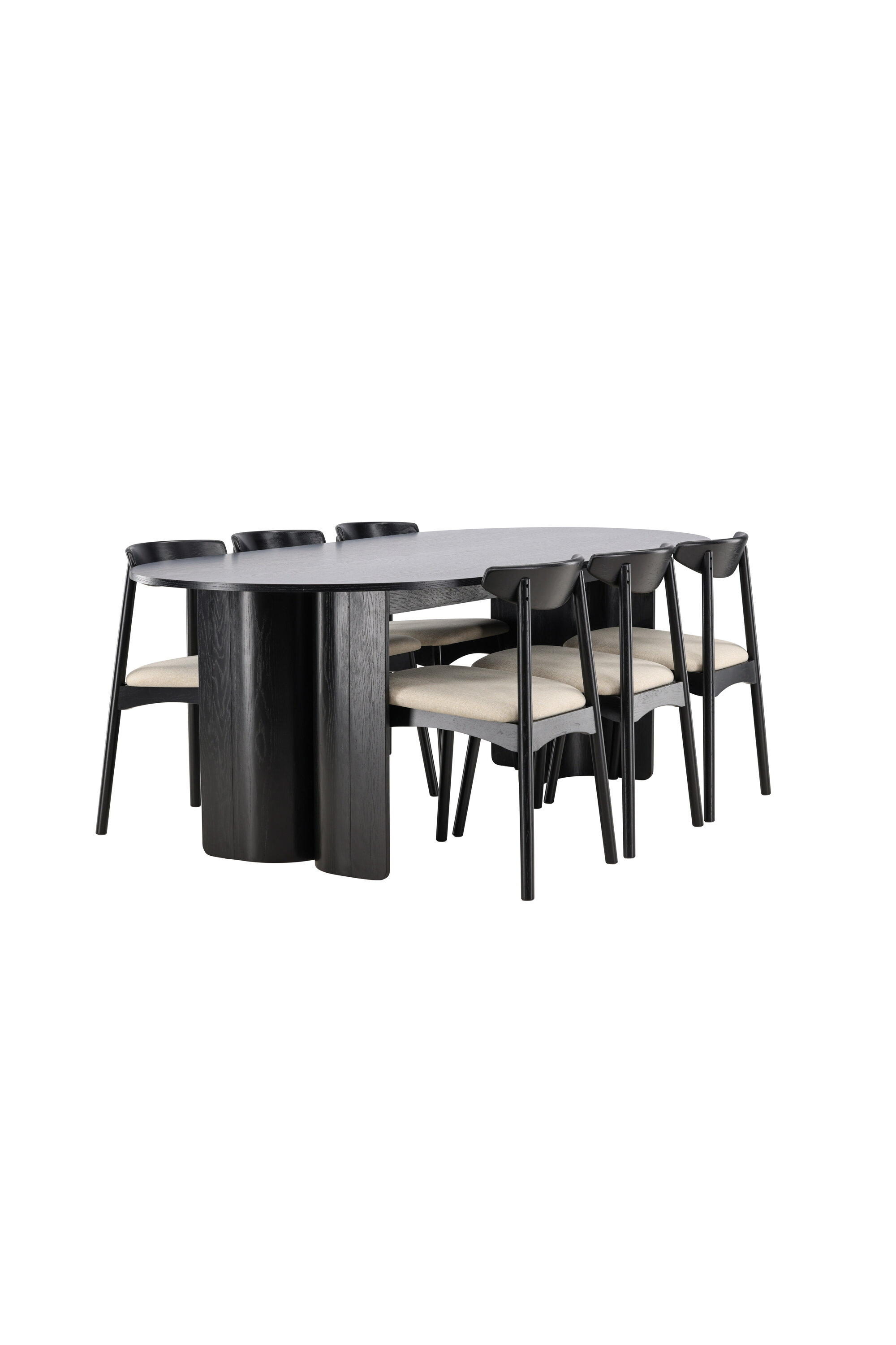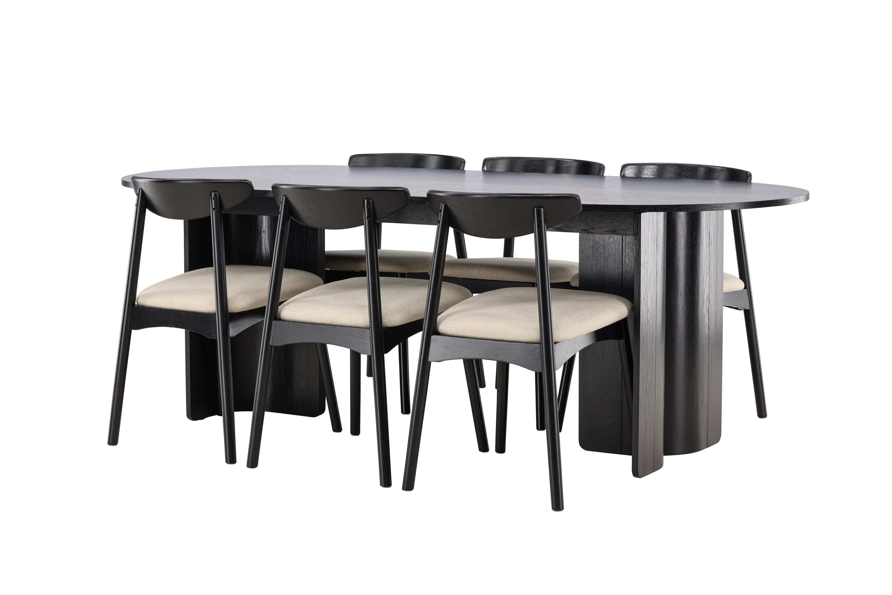 Kaasasolevatel Ven toolidel on must raam, mis harmoneerub lauaga, beež istmepadi lisab aga sooja ja pehmet kontrasti. Üheskoos moodustavad need tasakaalustatud koostise, mis sobib nii igapäevasteks söögikordadeks kui ka suuremateks koosviibimisteks.