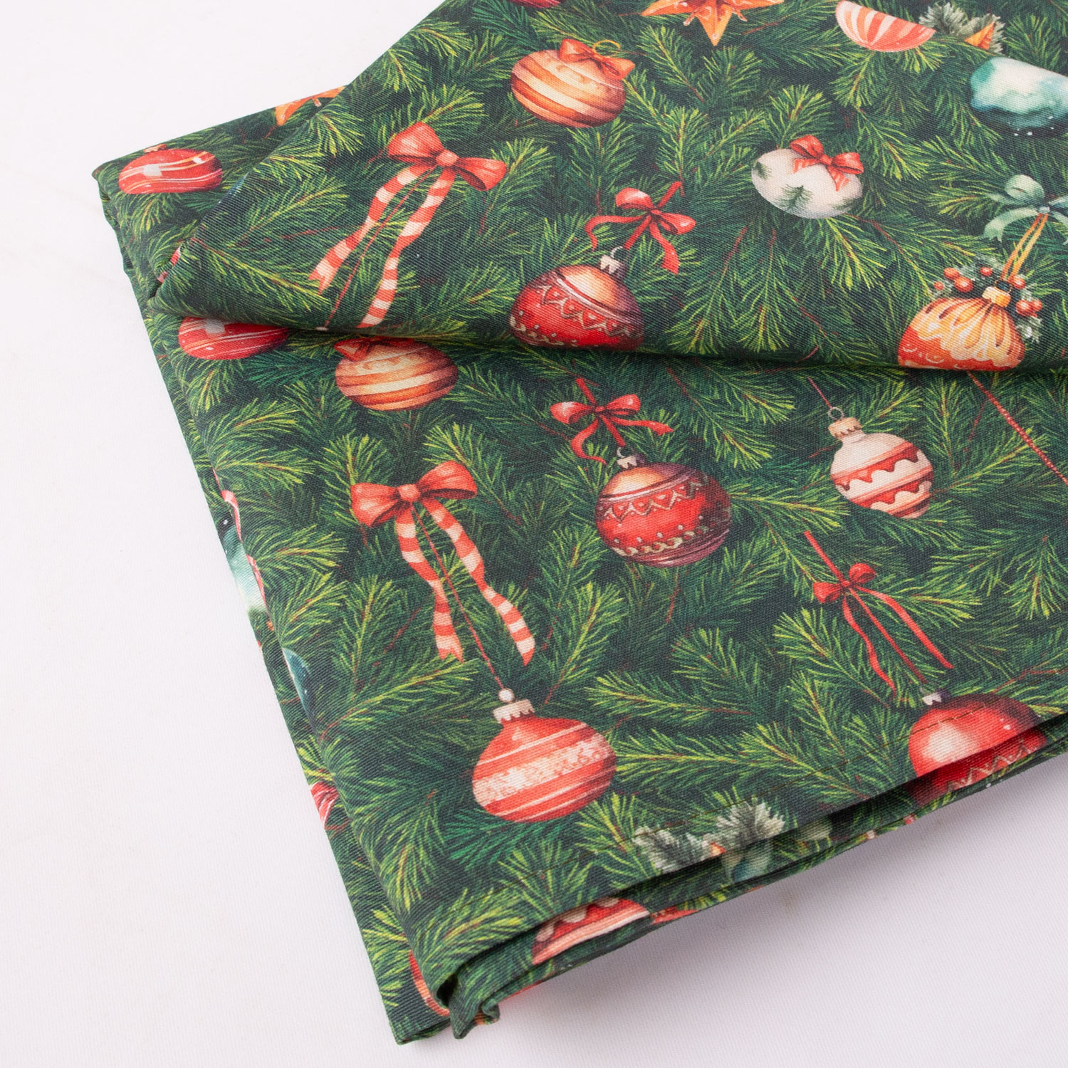 Laudlina CHRISTMAS NEW 136x220cm, jõuluehted kuusel, 50% polüester, 50% puuvill, kangas 573. HOOLDUS: võib pesta temperatuuril 30 kraadi pesumasinas.