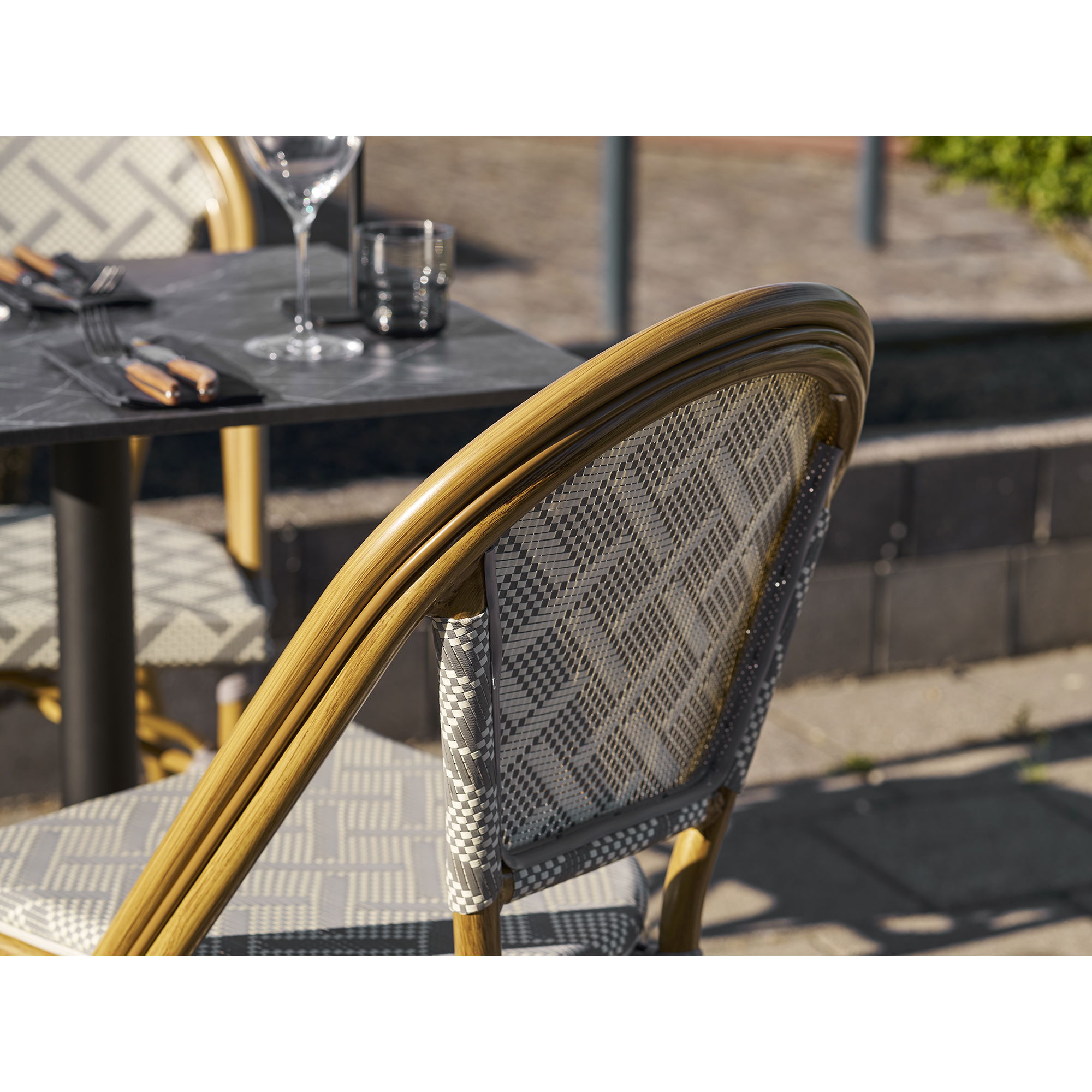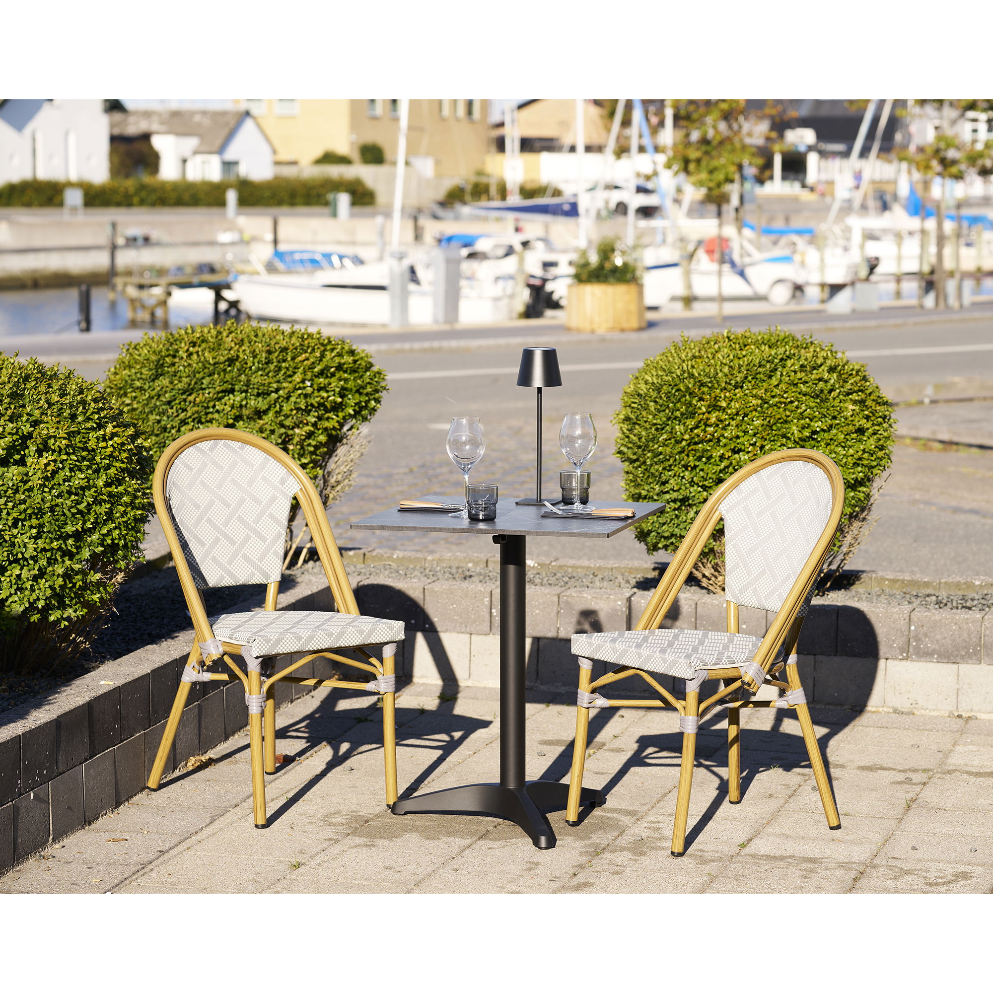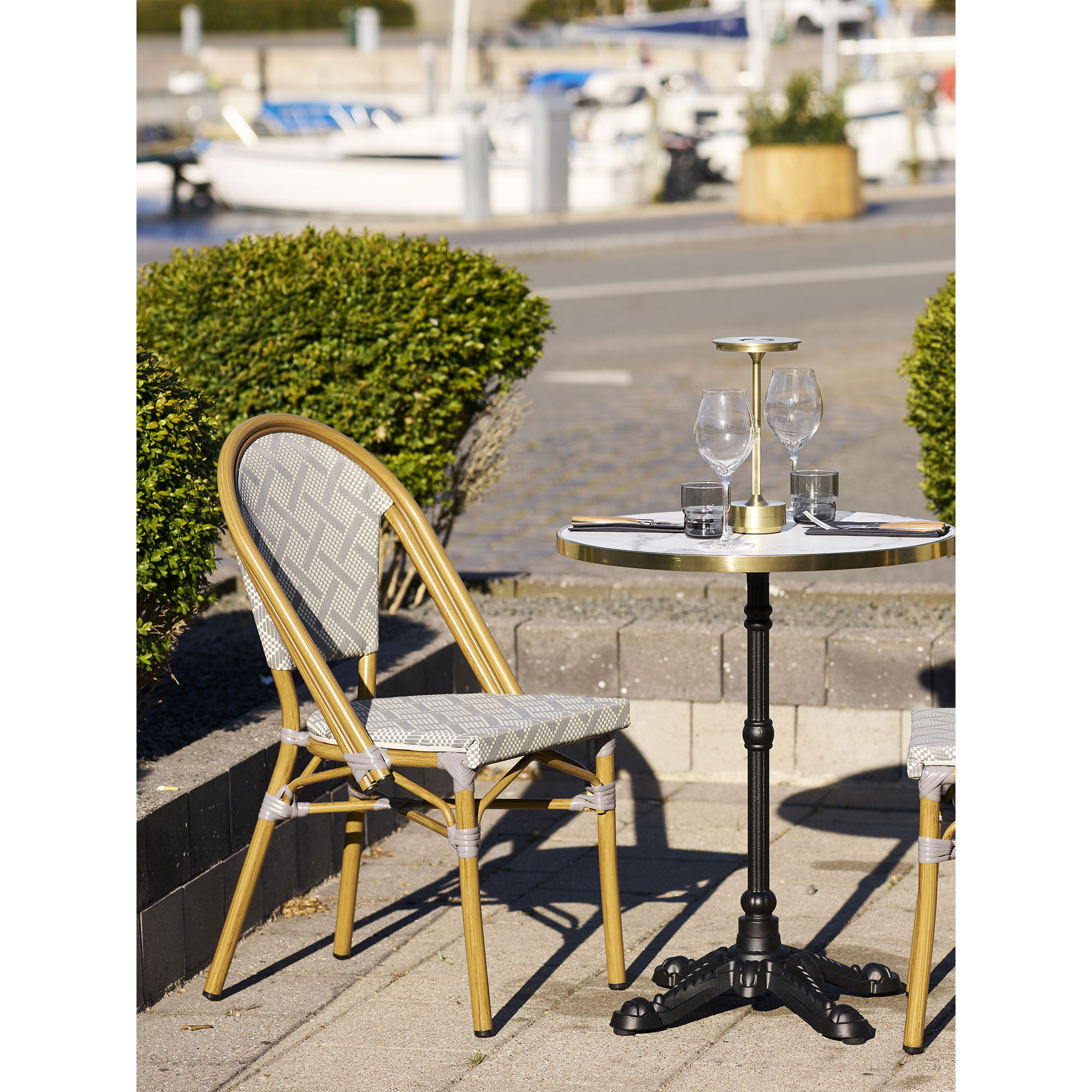 Lauria söögitool, alumiinium/tekstiil, valge, hall, bambusjälgimisega raam