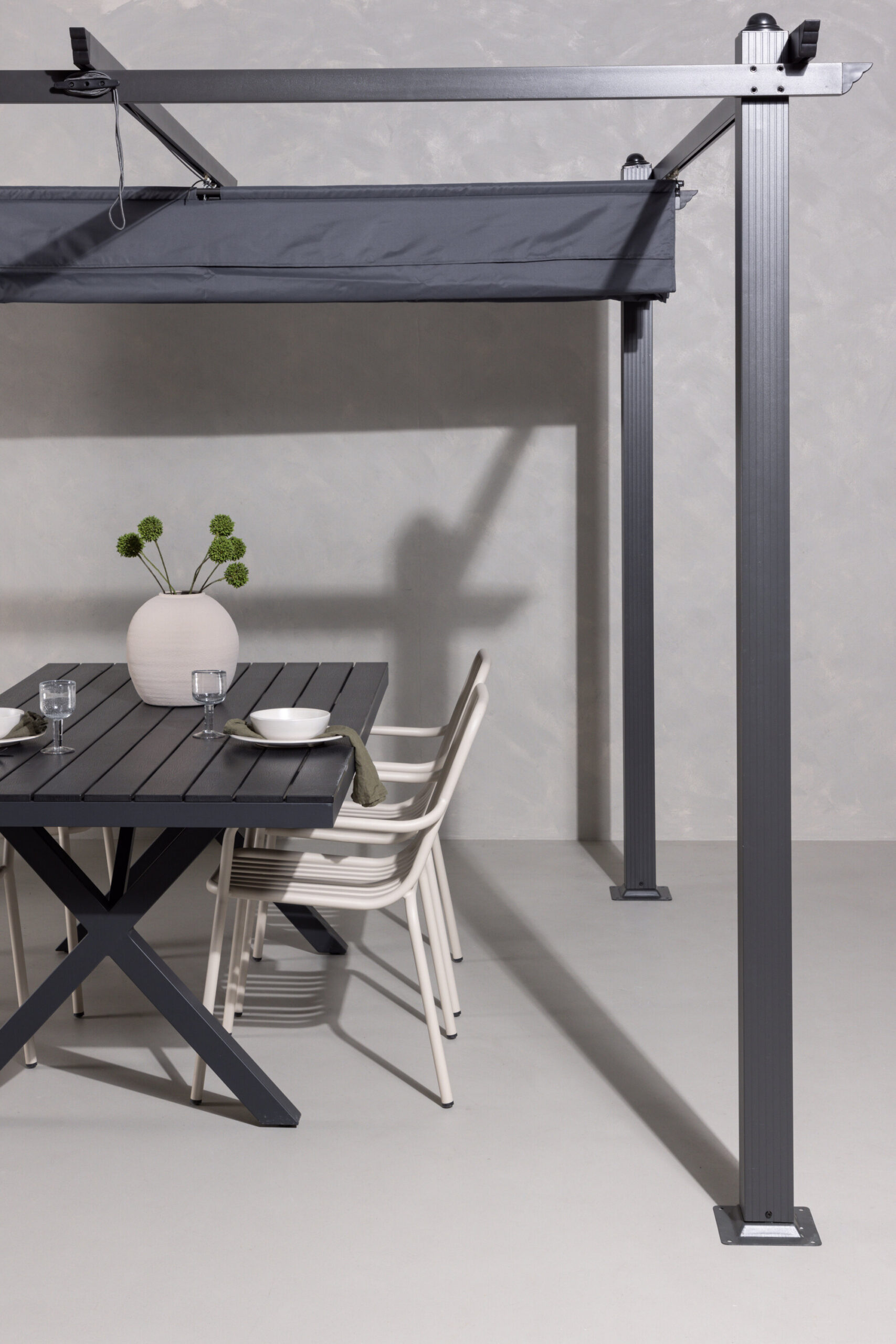 Suve uus lemmiknurk? Pergolaga on terrassi lihtne raamida ja luua midagi ainulaadset. Lazio raam on alumiiniumist ja katuseosa polüestrist. Võtke see maha, kui seda ei kasutata, ja seejärel hoidke seda kuivas ja kaitstuna. Lazio pakub erinevat värvi vastupidavaid pergolaid, mis vastavad teie vajadustele parimal viisil. Siin maitsvas hallis värvitoonis. Mõõdud: 300x300x250 cm.