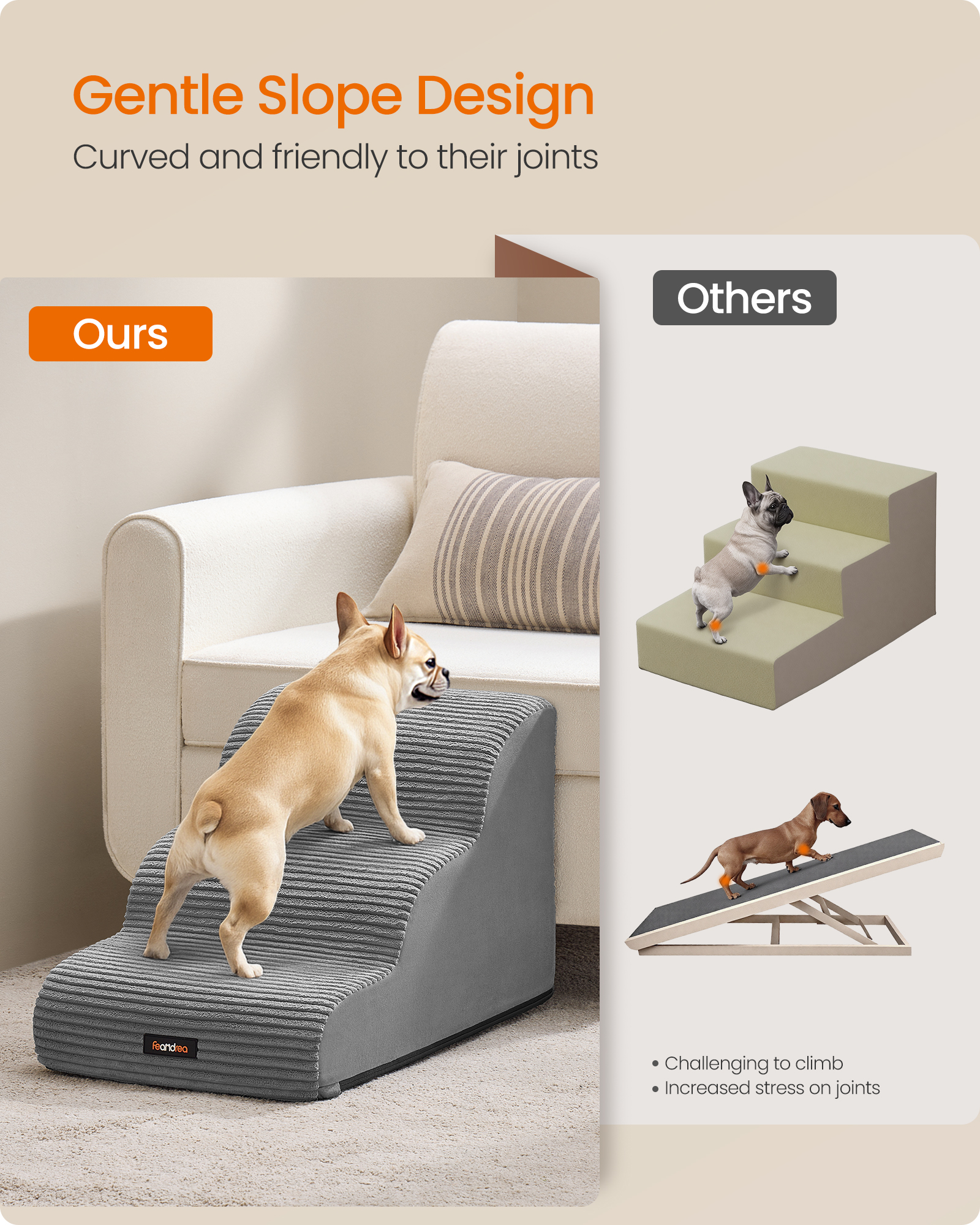 Spetsifikatsioonid: Värv: Tuvihall Materjal: Kunstne seemisnahk, velvet, vaht Toote mõõdud: 57 x 40 x 40 cm (22,4″P x 15,7″L x 15,7″K) Toote kaal: 1,9 kg (4,2 naela) Pakisisu: 1 x lemmiklooma trepp 1 x juhend