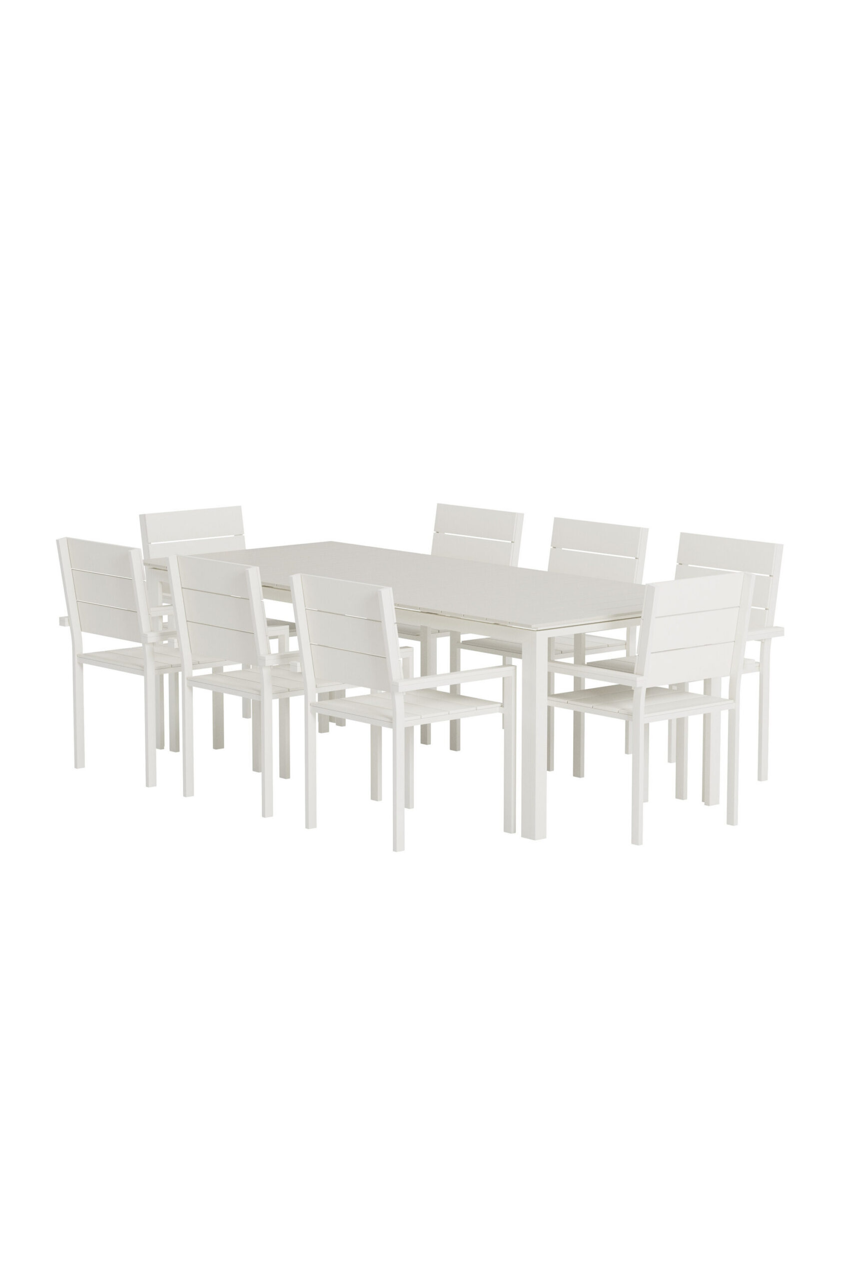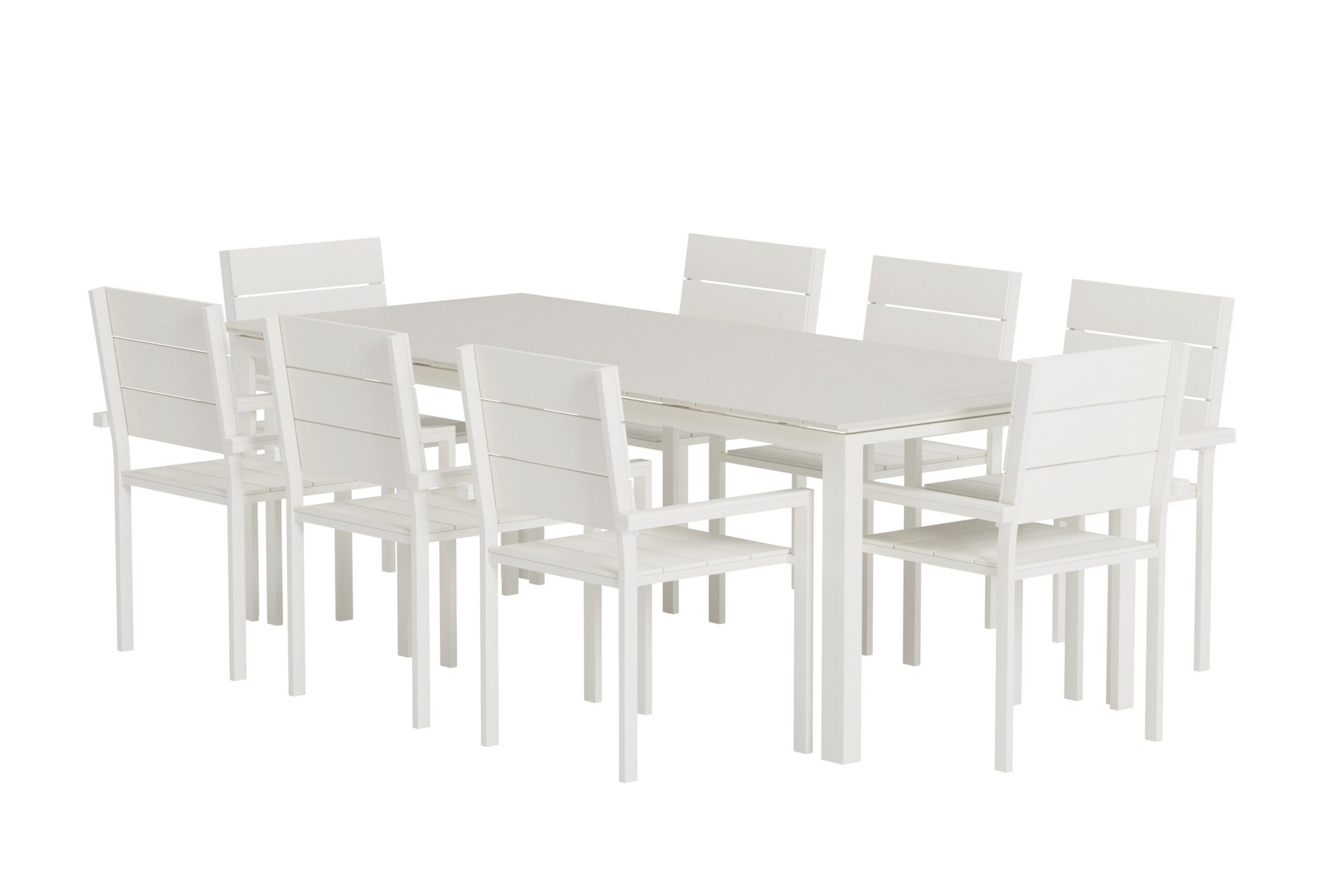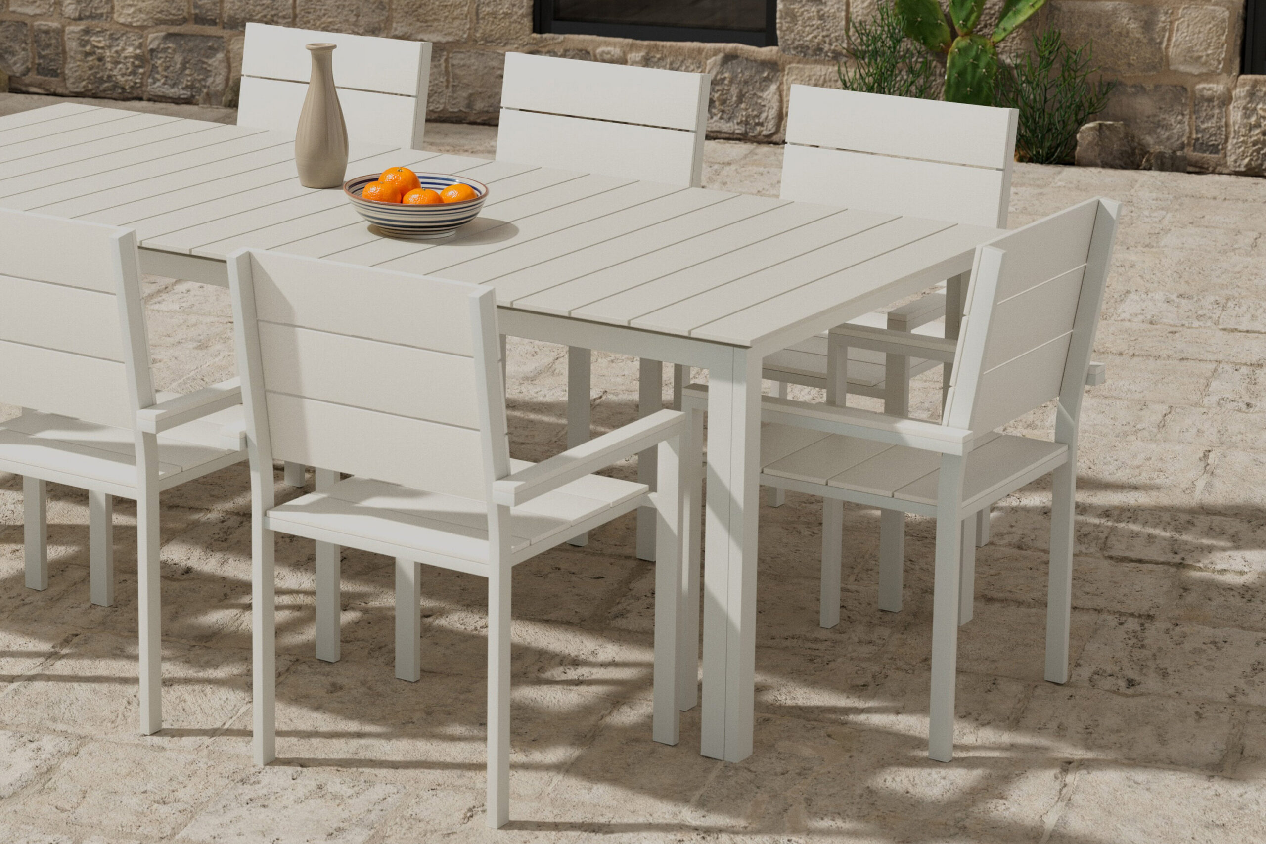 Looge moodne ja harmooniline välisöögituba elegantsete Levelsi söögitoolide ja elegantse pikendatava Levelsi söögilauaga. Söögitool Levels on sirgete joontega modernne klassika, mis annab ajatu ilme. Suured käetoed pakuvad suurt mugavust ja hele värv võimaldab tooli sulanduda igasse väliskeskkonda – terrassist päikesesaalini. Söögilaud Levels on minimalistlik ja paindlik laud elegantses beežis. Nutika laiendusfunktsiooniga on lauda lihtne kohandada nii igapäevaseks kasutamiseks kui ka pidustusteks, puhas disain aga loob rahuliku ja kaasaegse õhkkonna. Levelsi laud ja toolid moodustavad koos stiilse ja funktsionaalse söögikomplekti, mis sobib suurepäraselt nii väikestele kui ka suurtele seltskondadele – ja tõstab iga õueruumi tunde.