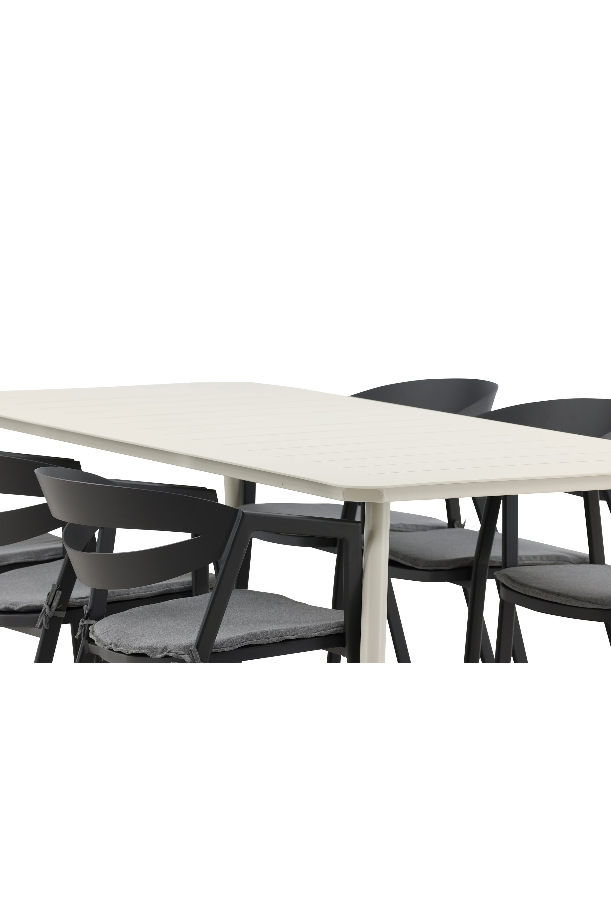 Loo võluv keskpunkt, et lähedasi enda ümber koguda! Siin ühendame ajatu disaini minimalistlike vormidega. Laud Lina on kitsa disainiga valgest/beežist terasest, ristkülikukujulise lauaplaadi ja pehmete ümarate servadega. Lauajalad on kergesti laienevad ja jätavad ühtlase mulje. Mõõdud: 200×90 cm. Seeria kulumise söögitoolidel on integreeritud mustast alumiiniumist käetoed ja halli padi lisamugavuseks. Istuge mugavalt ja nautige meeldivaid eineid!
