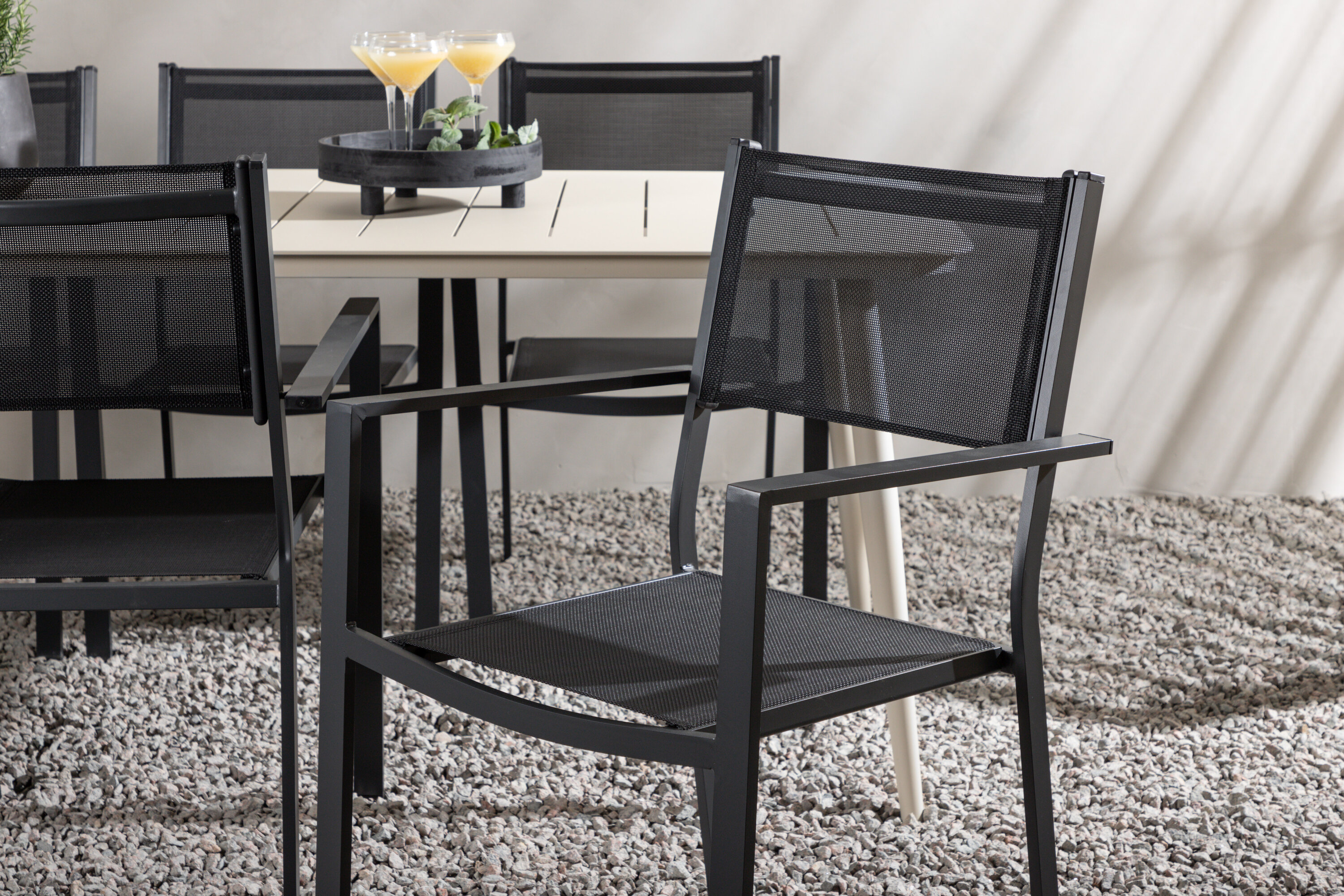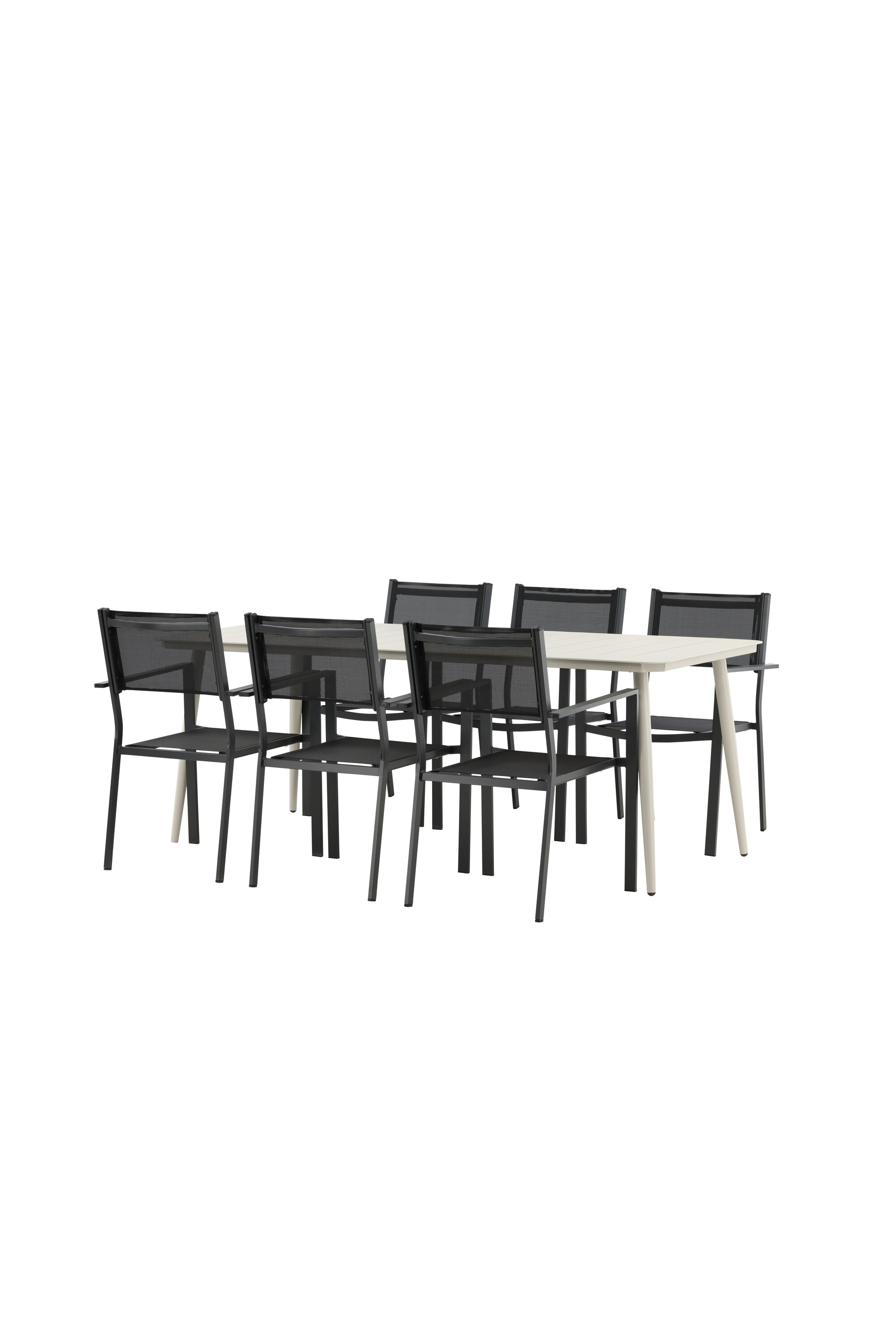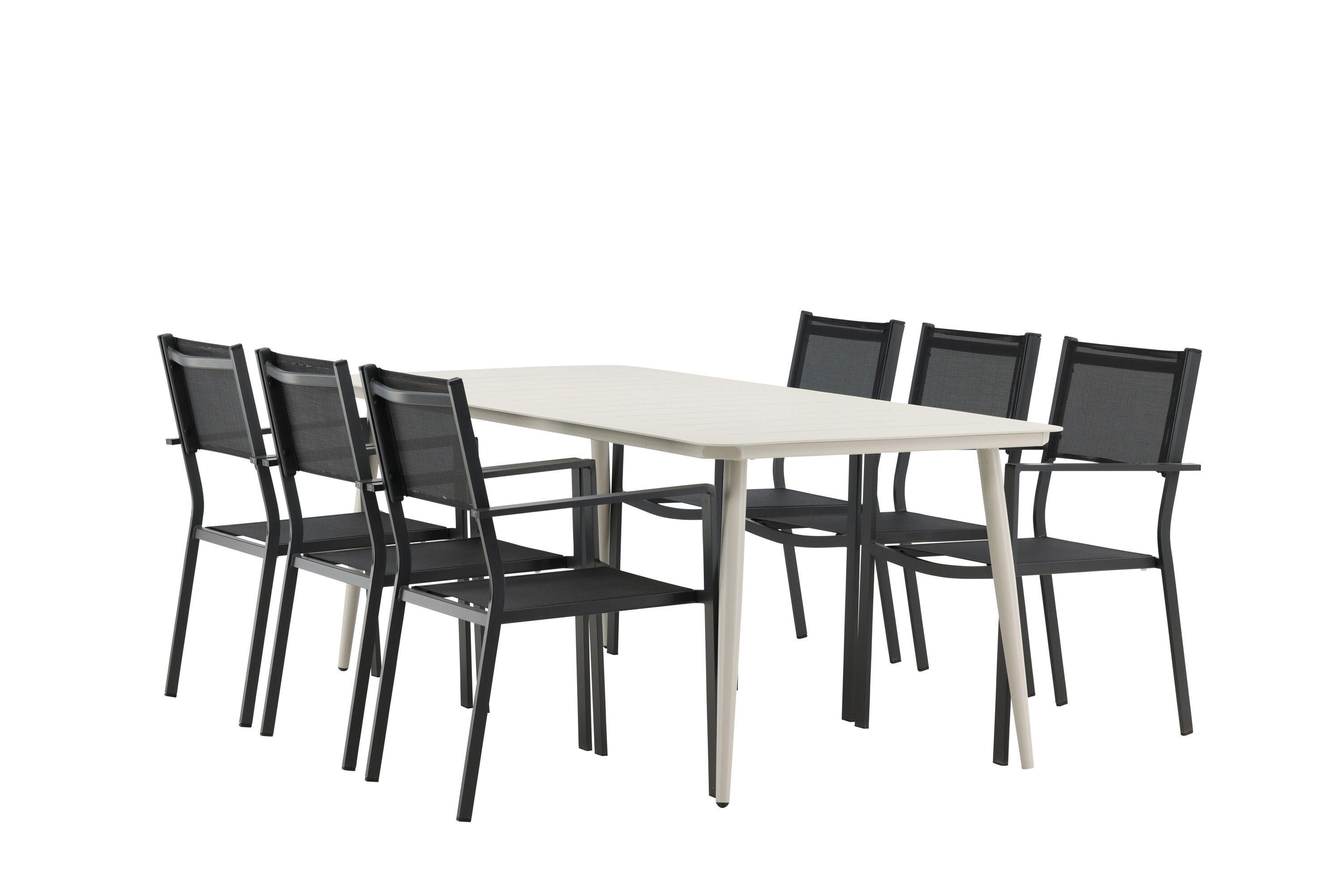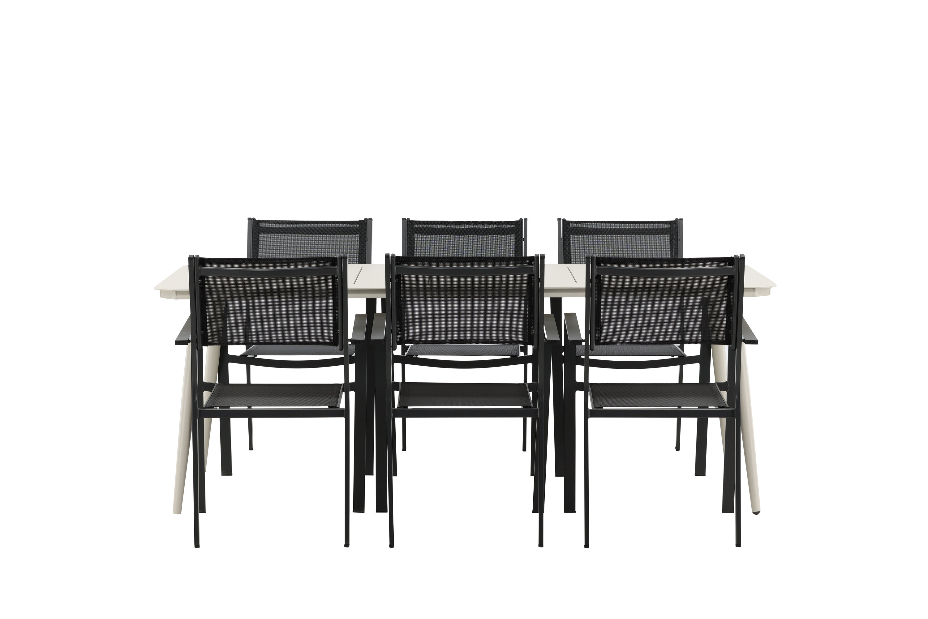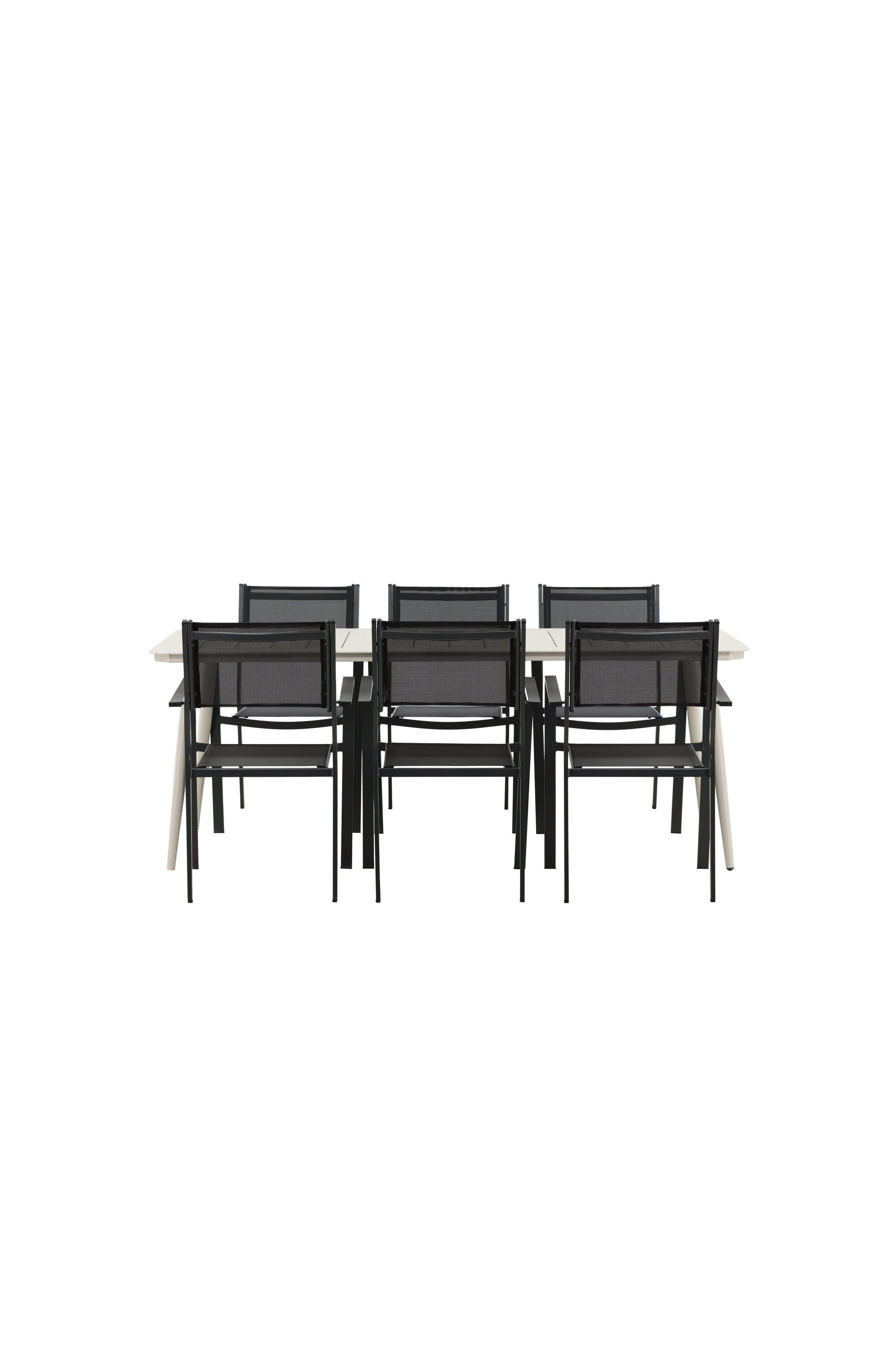 It’s a match – kaasaegne värvikombinatsioon, mis loob õues moeteadliku mulje. Laud Lina on minimalistliku disainiga valgest/beežist terasest, ristkülikukujulise lauaplaadi ja pehmete ümarate servadega. Lauajalad on kergesti laienevad ja jätavad ühtlase mulje. Mõõdud: 200×90 cm. Siin koos mugavate Copacabana seeria söögitoolidega. Toolid on põhjamaise sirge kujuga, integreeritud alumiiniumist käetugedega ja mustast tekstiilist istmega. Olgu siinne aeg päeva tipphetk!