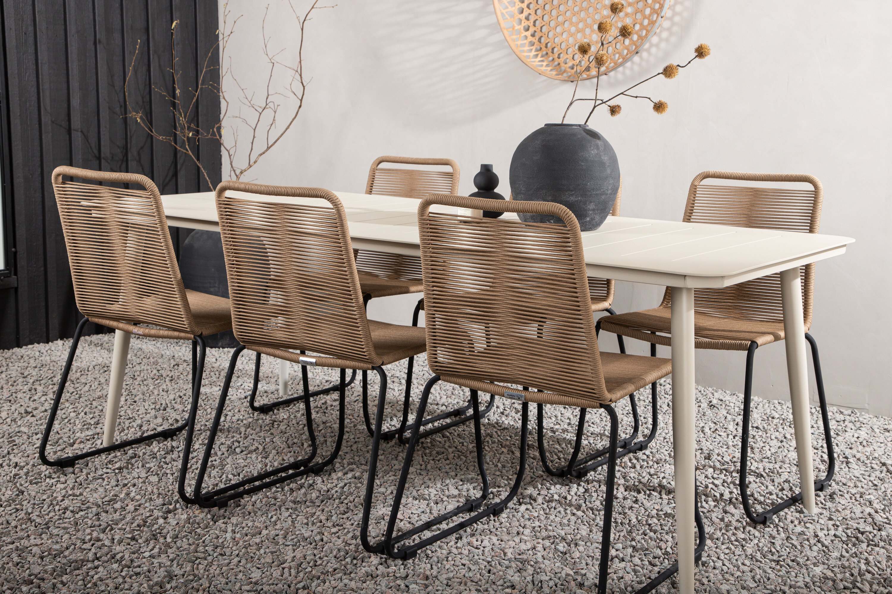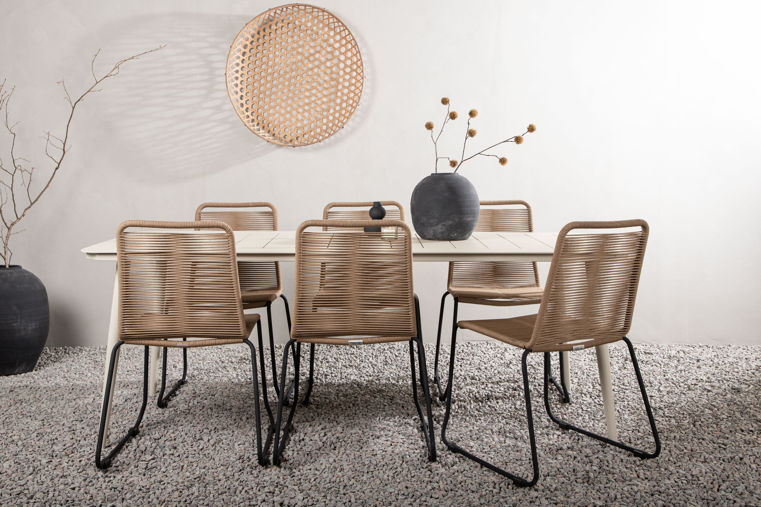 Loo talveaias moodne pilgupüüdja! Söögilaud Lina on minimalistliku konstruktsiooniga beežist terasest ristkülikukujulise lauaplaadi ja kergelt laienevate jalgadega. Siin koos meie populaarsete Lindose seeria söögitoolidega. Tool on valmistatud vastupidavatest materjalidest, mille iste on maalähedases beežis nööris ja jalad mustast metallist. Siit saate söögigrupi, mis on nii mugav kui ka silmailu! Laua mõõdud: 200x90cm.