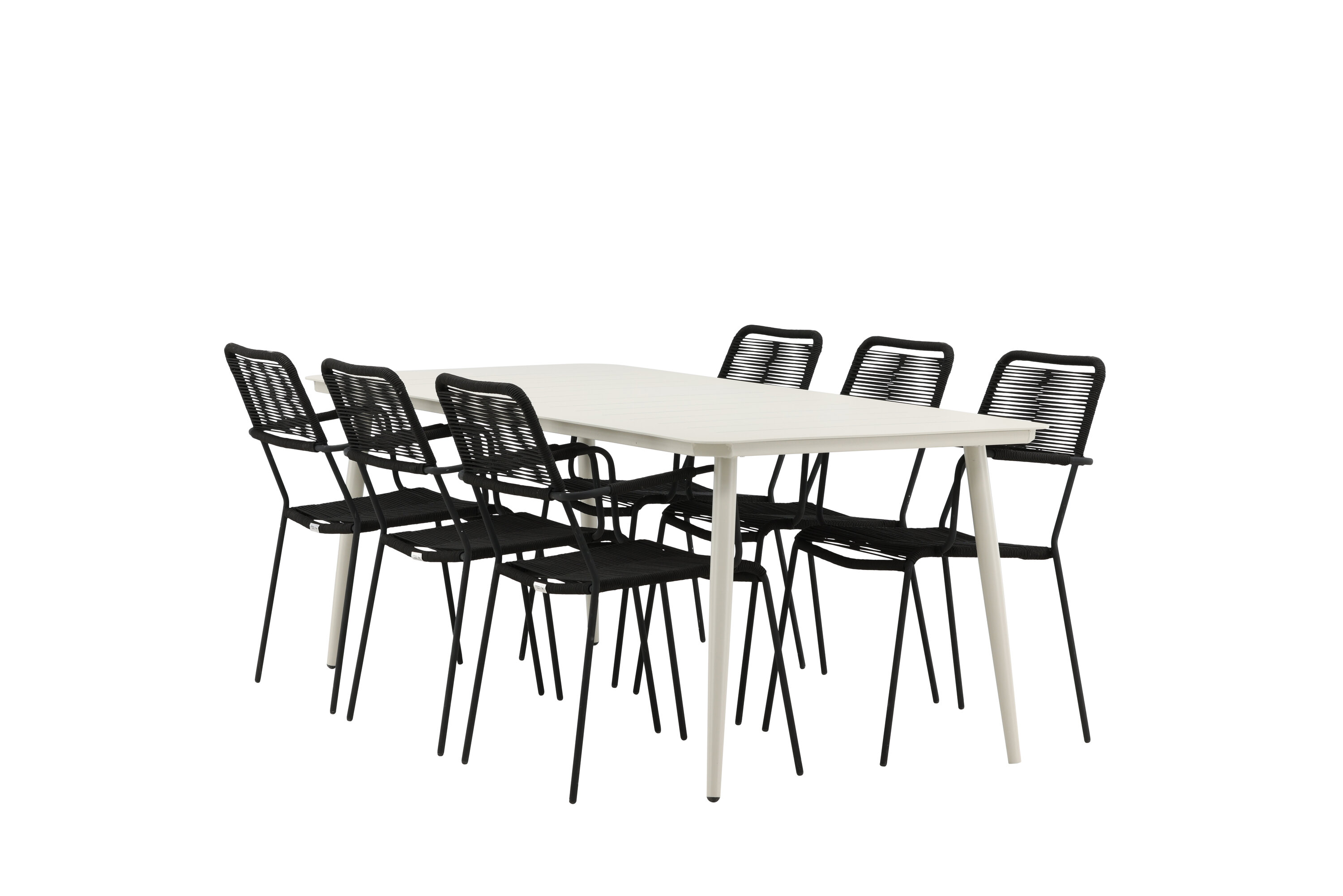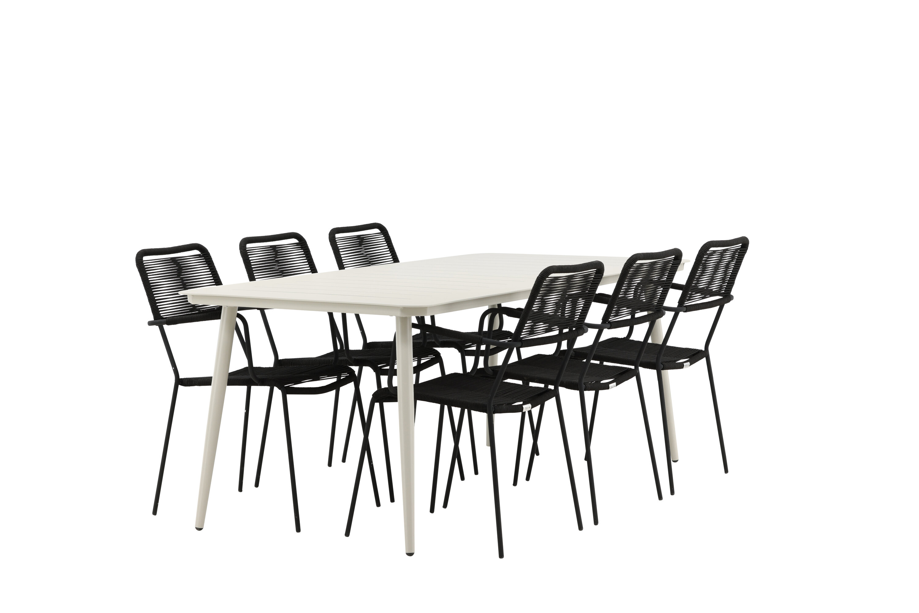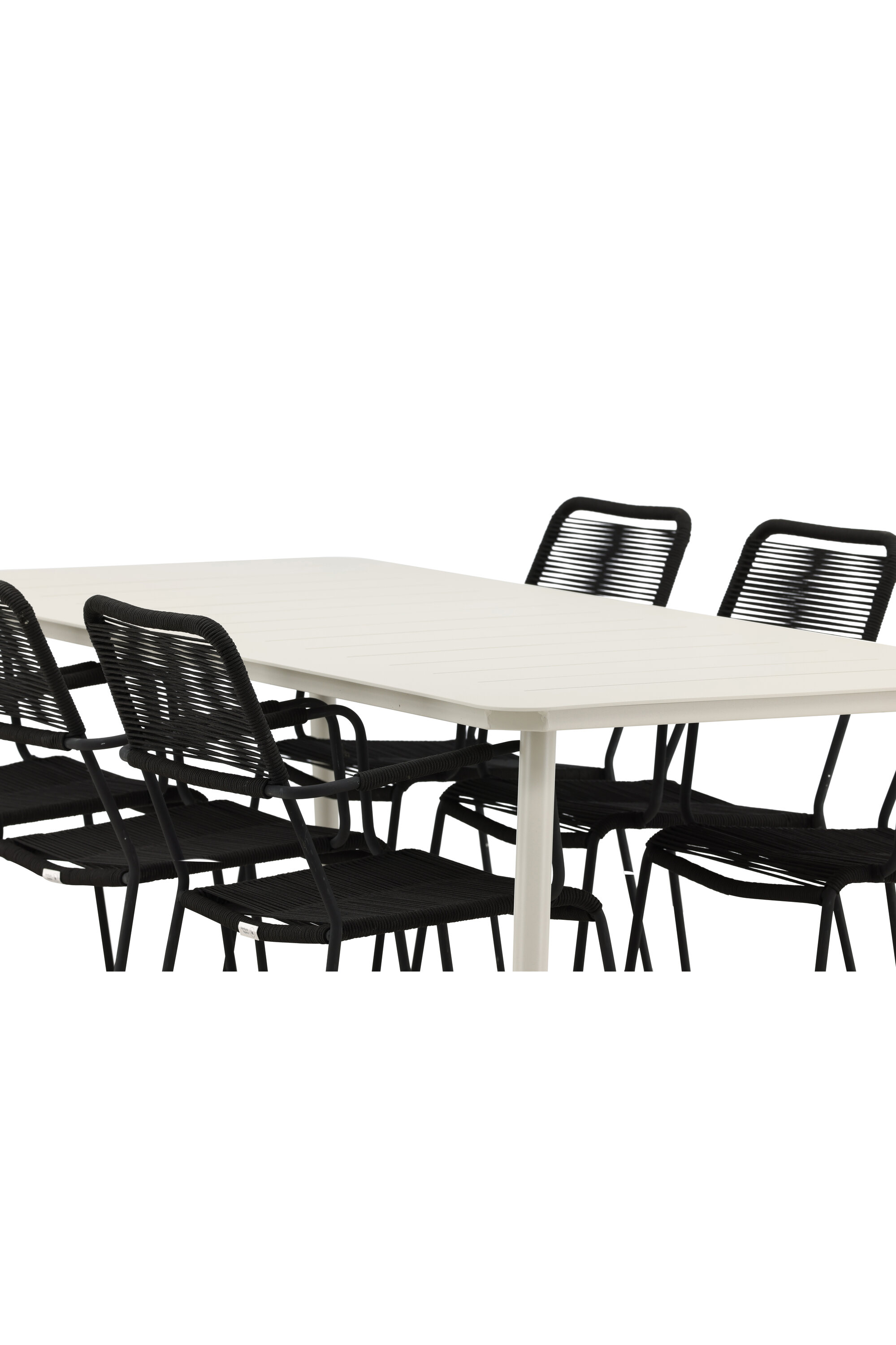 Moodne värvilahendus, mis loob õues moeteadliku mulje. Laud Lina on minimalistliku disainiga valgest/beežist terasest, ristkülikukujulise lauaplaadi ja pehmete ümarate servadega. Lauajalad on kergesti laienevad ja jätavad ühtlase mulje. Mõõdud: 200×90 cm. Siin koos Lindose sarja mustade söögitoolidega. Toolidel on stiilsed kitsad jalad ja integreeritud mustast terasest käetoed ning vastupidavast köiest iste. Kutsu ees palju meeldivaid eineid!