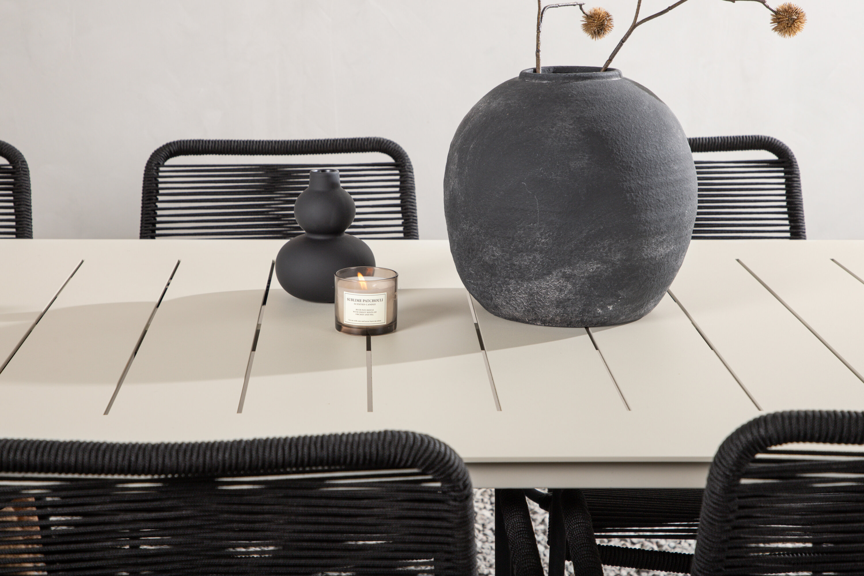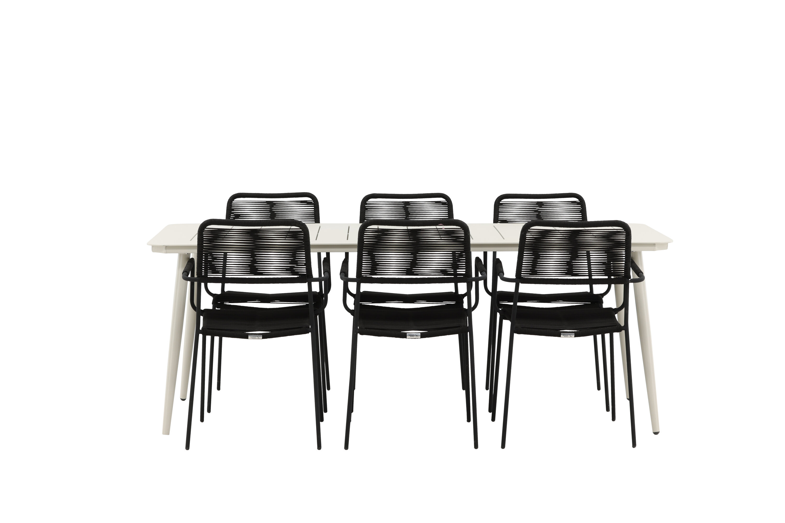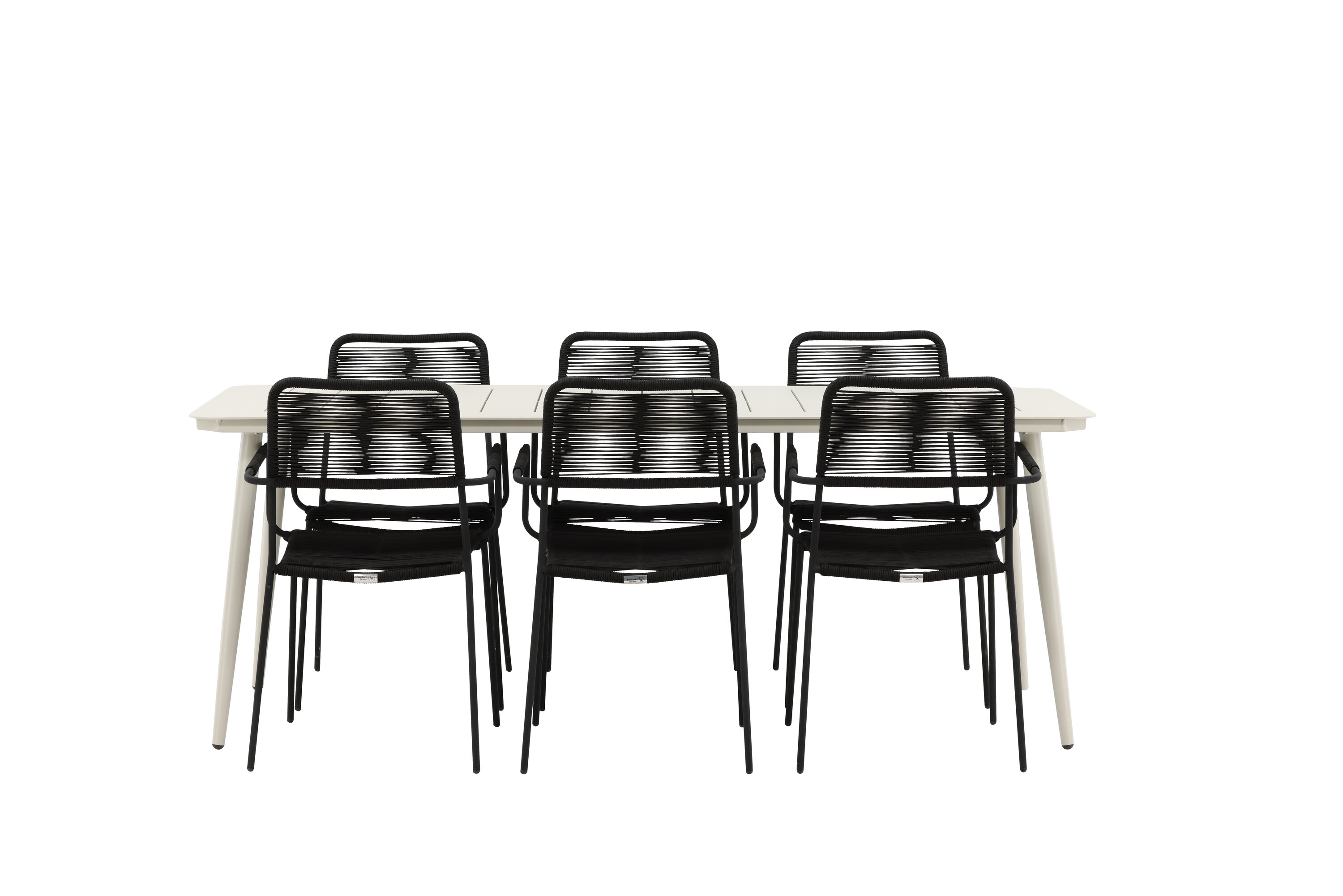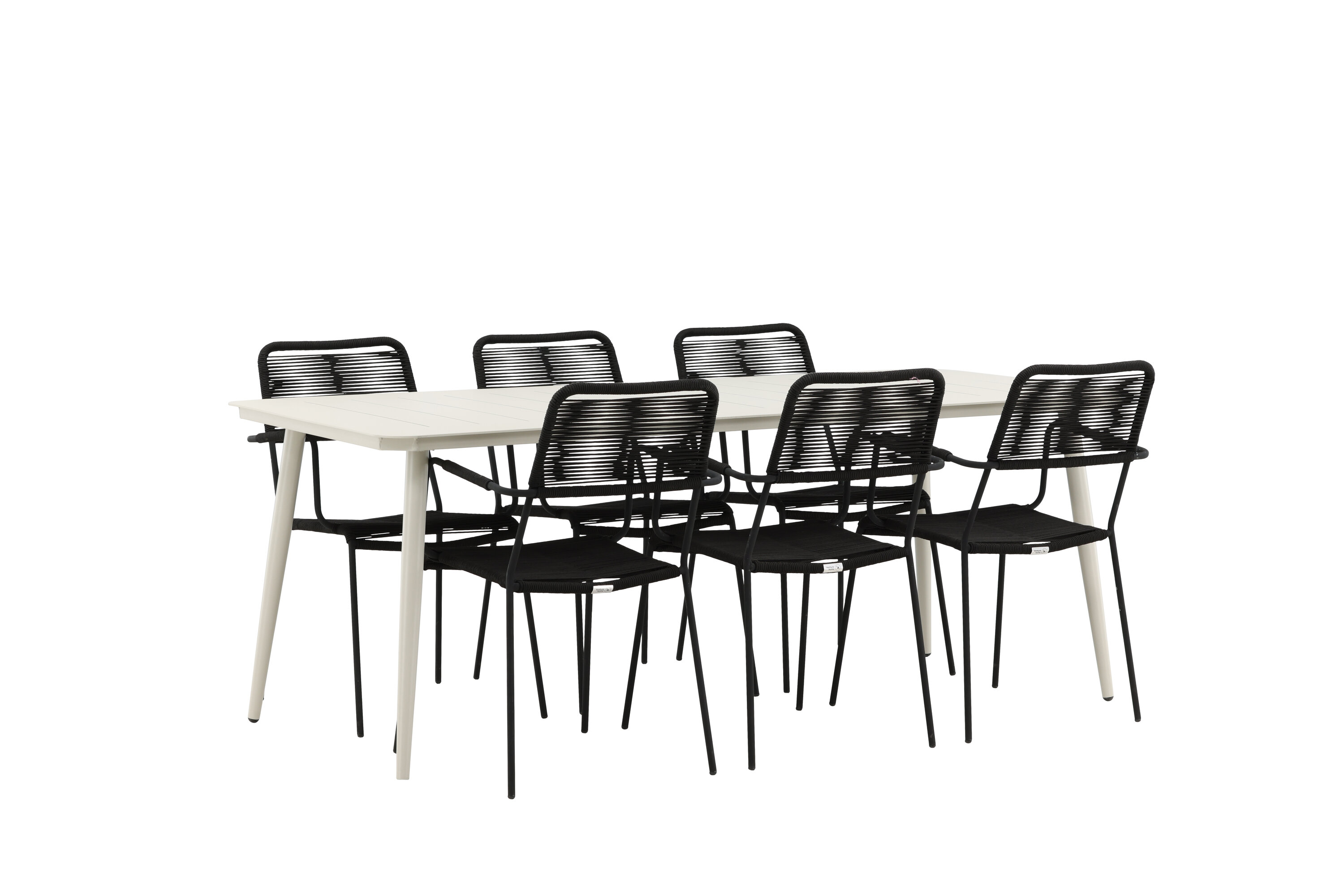 Moodne värvilahendus, mis loob õues moeteadliku mulje. Laud Lina on minimalistliku disainiga valgest/beežist terasest, ristkülikukujulise lauaplaadi ja pehmete ümarate servadega. Lauajalad on kergesti laienevad ja jätavad ühtlase mulje. Mõõdud: 200×90 cm. Siin koos Lindose sarja mustade söögitoolidega. Toolidel on stiilsed kitsad jalad ja integreeritud mustast terasest käetoed ning vastupidavast köiest iste. Kutsu ees palju meeldivaid eineid!