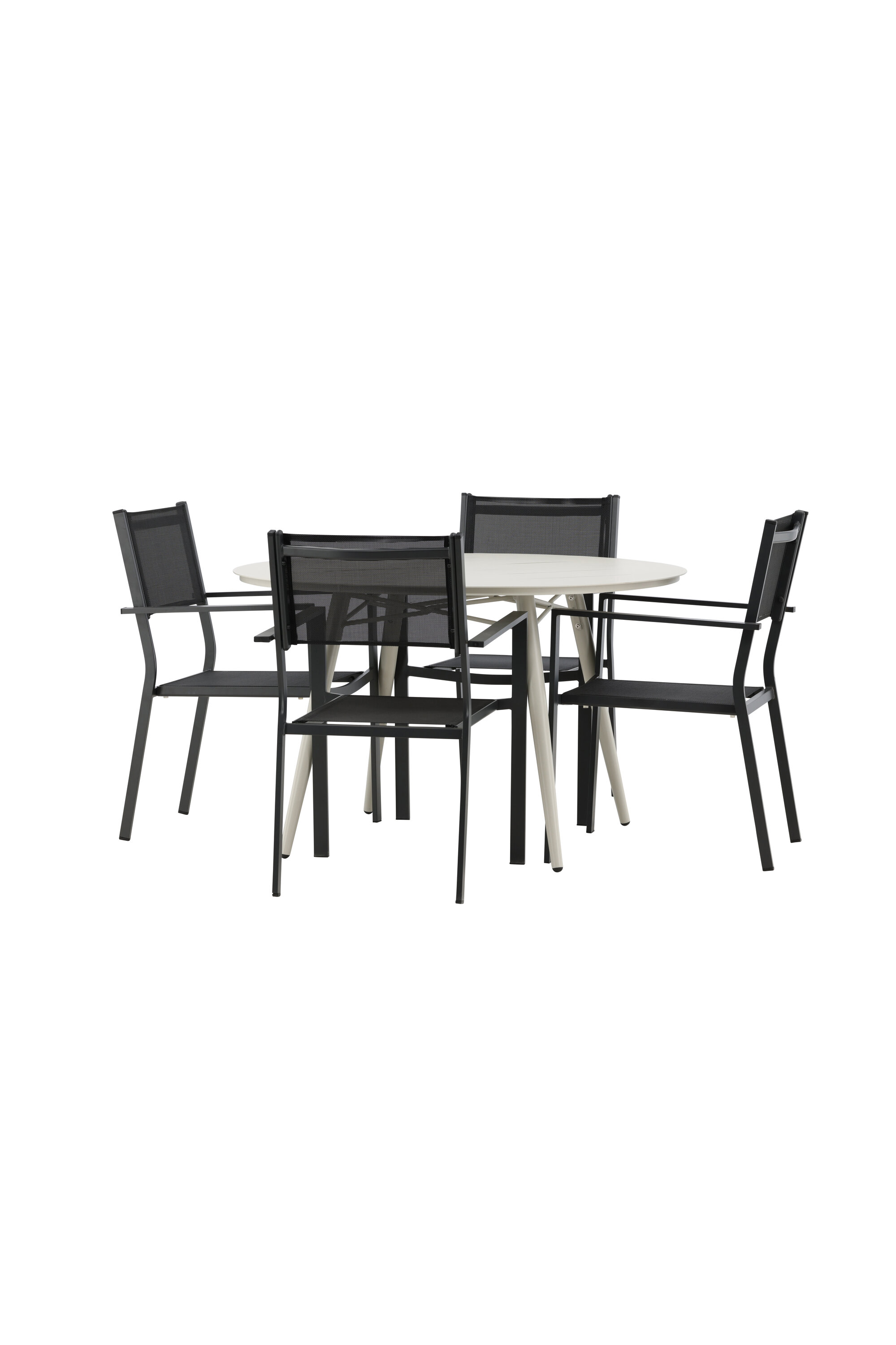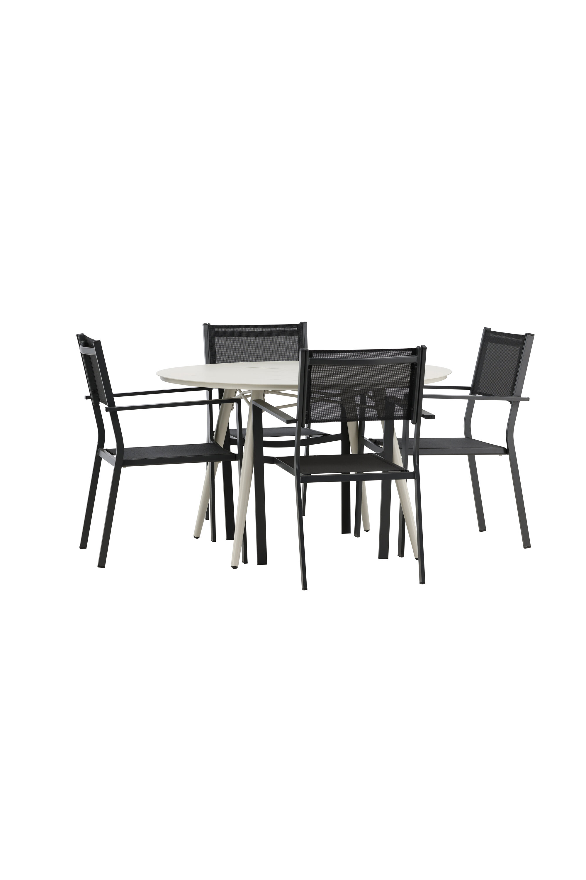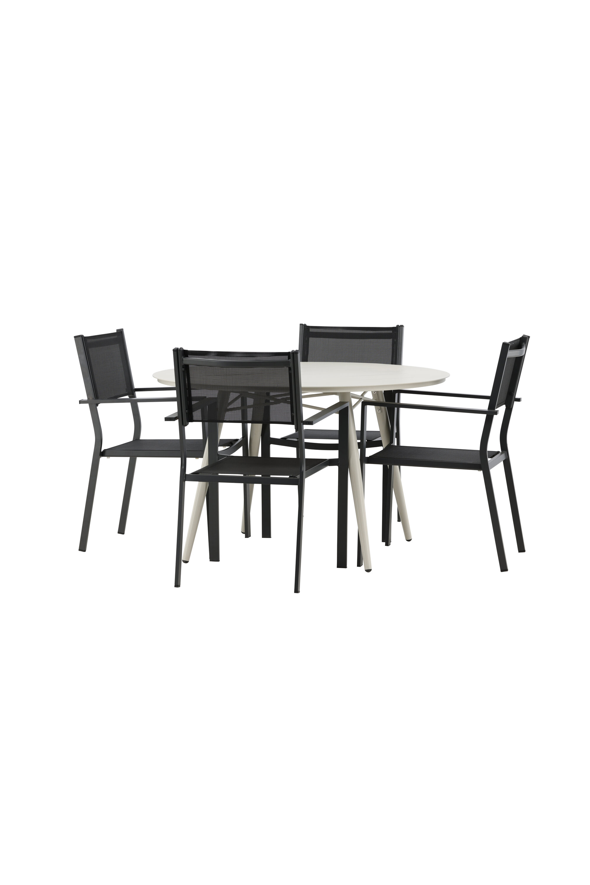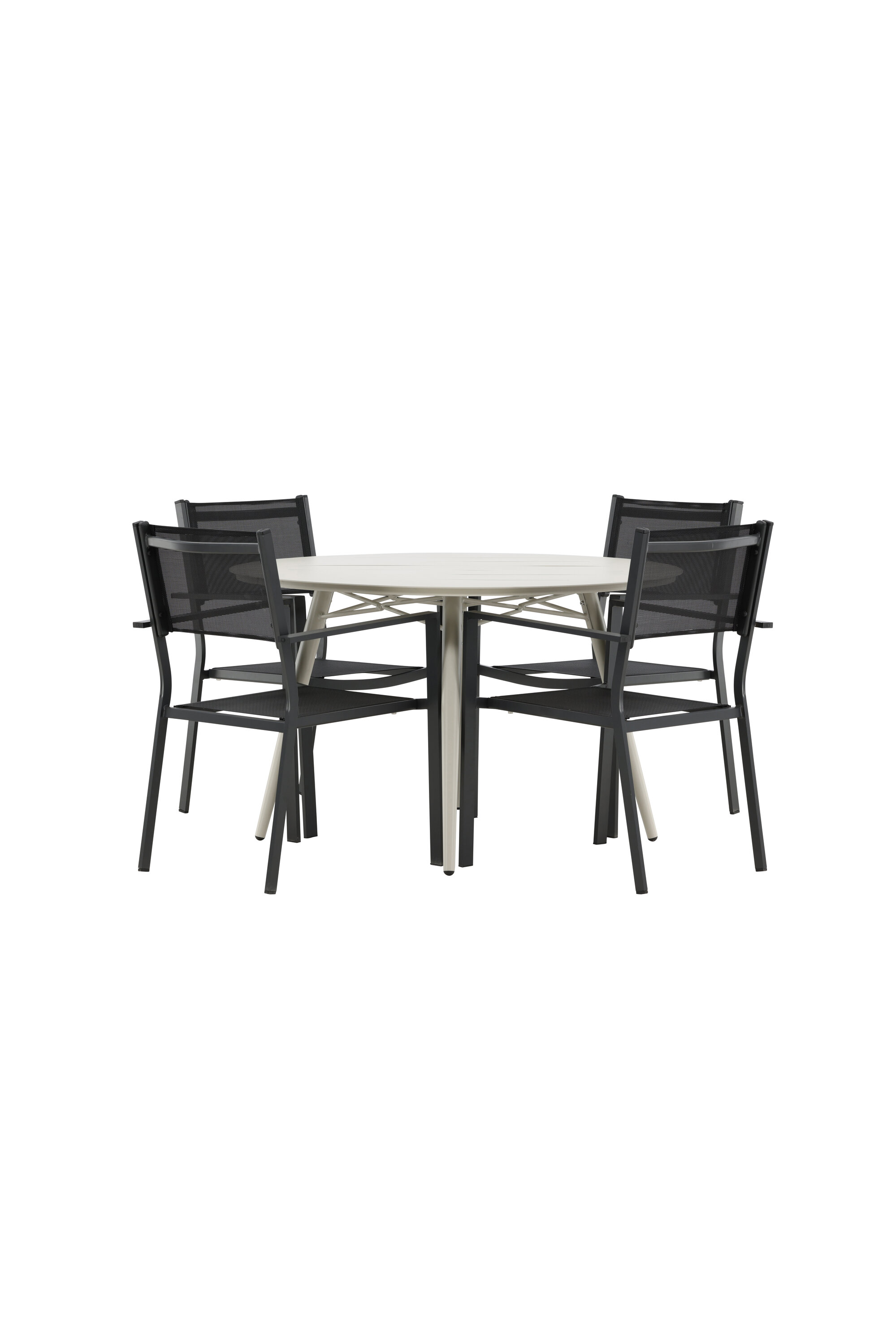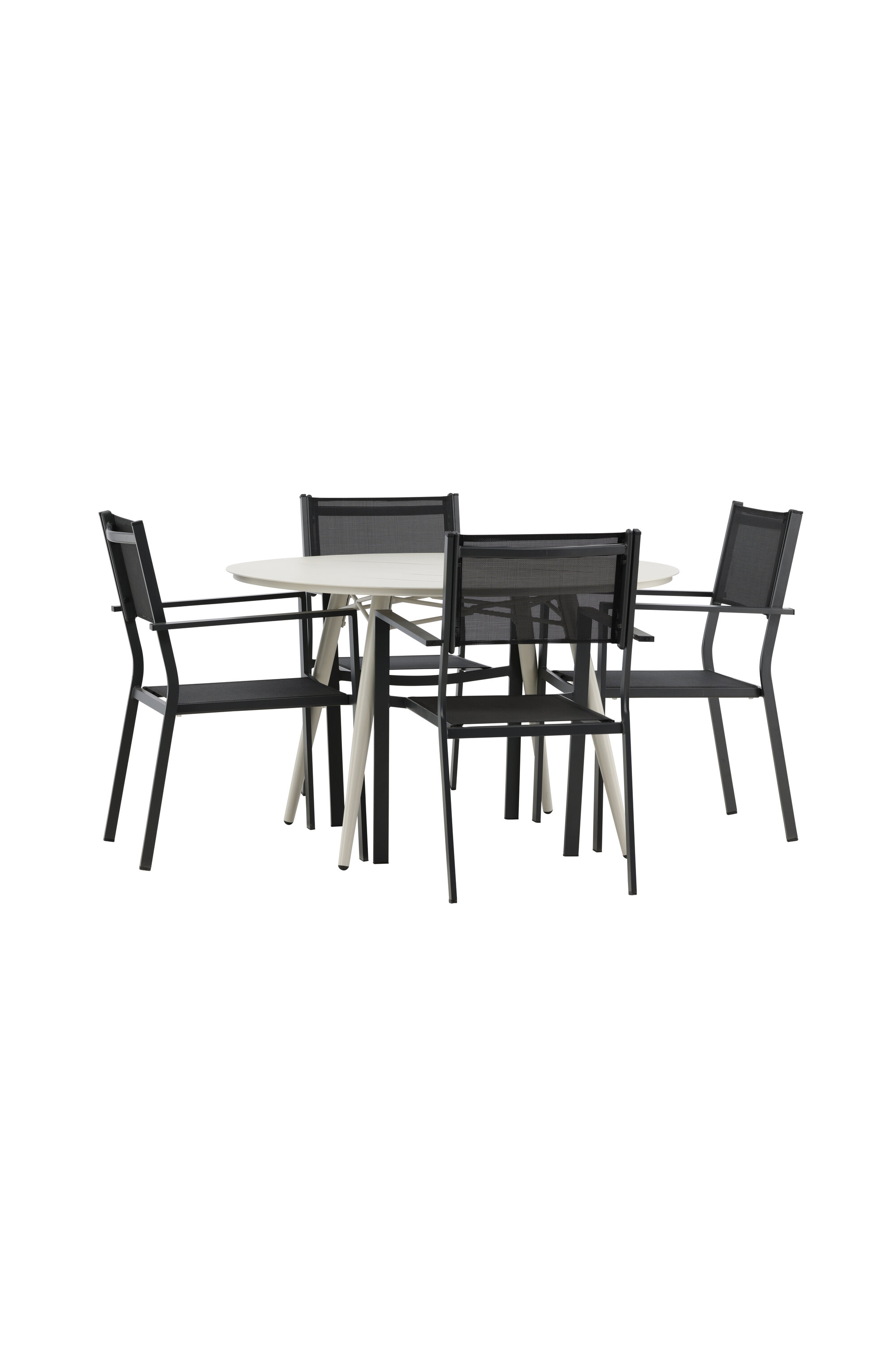 Kutsuv toidugrupp, kellel on siin kõik õigused, pole keegi äärepealt! Laud Lina on minimalistliku disainiga valgest/beežist terasest, ümara lauaplaadi ja kergelt laieneva lauajalaga, mis jätab ühtlase mulje. Mõõdud: 120ø cm. Siin koos mugavate Copacabana seeria söögitoolidega. Toolid on virnastatavad koos tekstiilist istmega ja alumiiniumraamiga. Olge sel suvel valmis silmapaistvaks ööeluks!