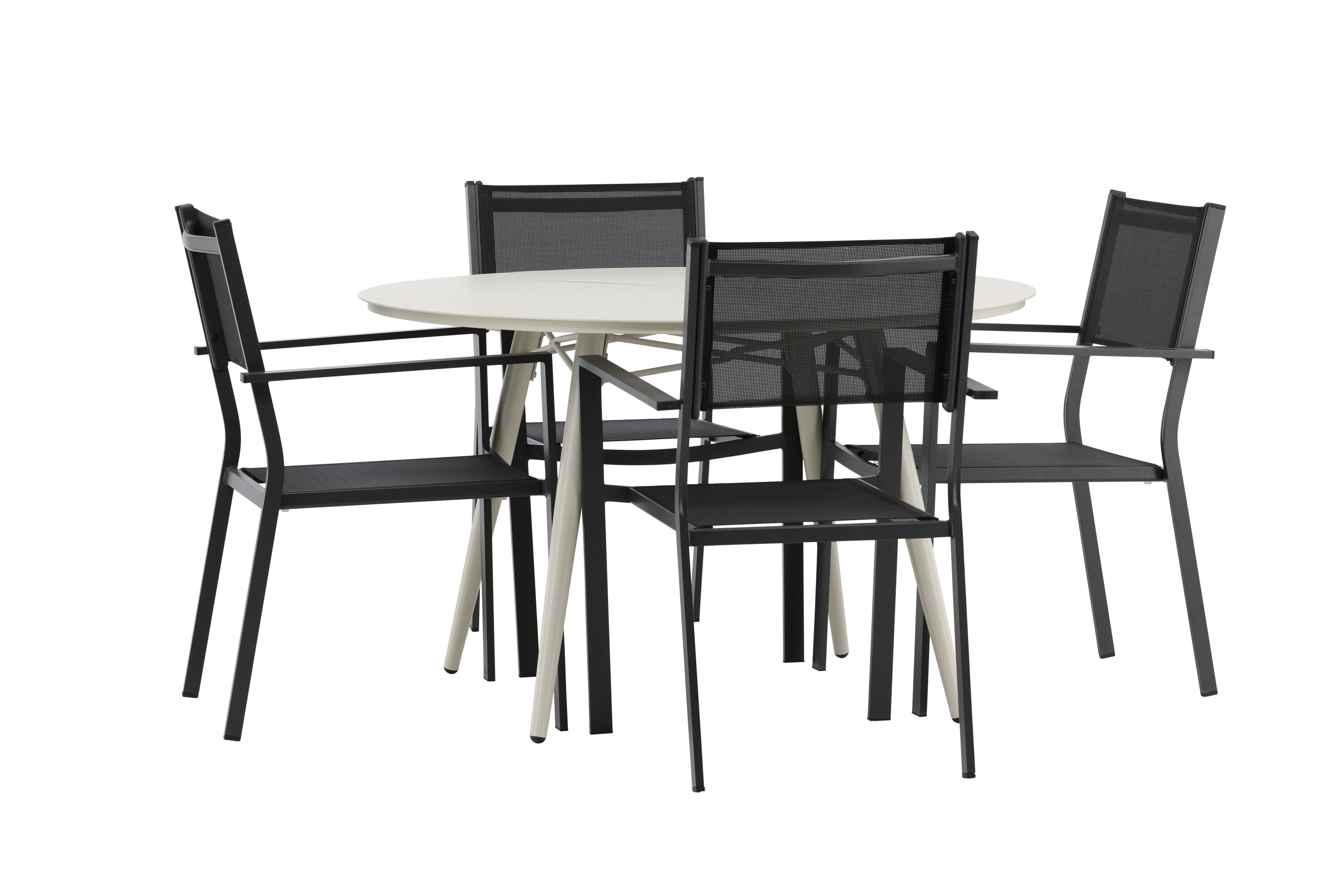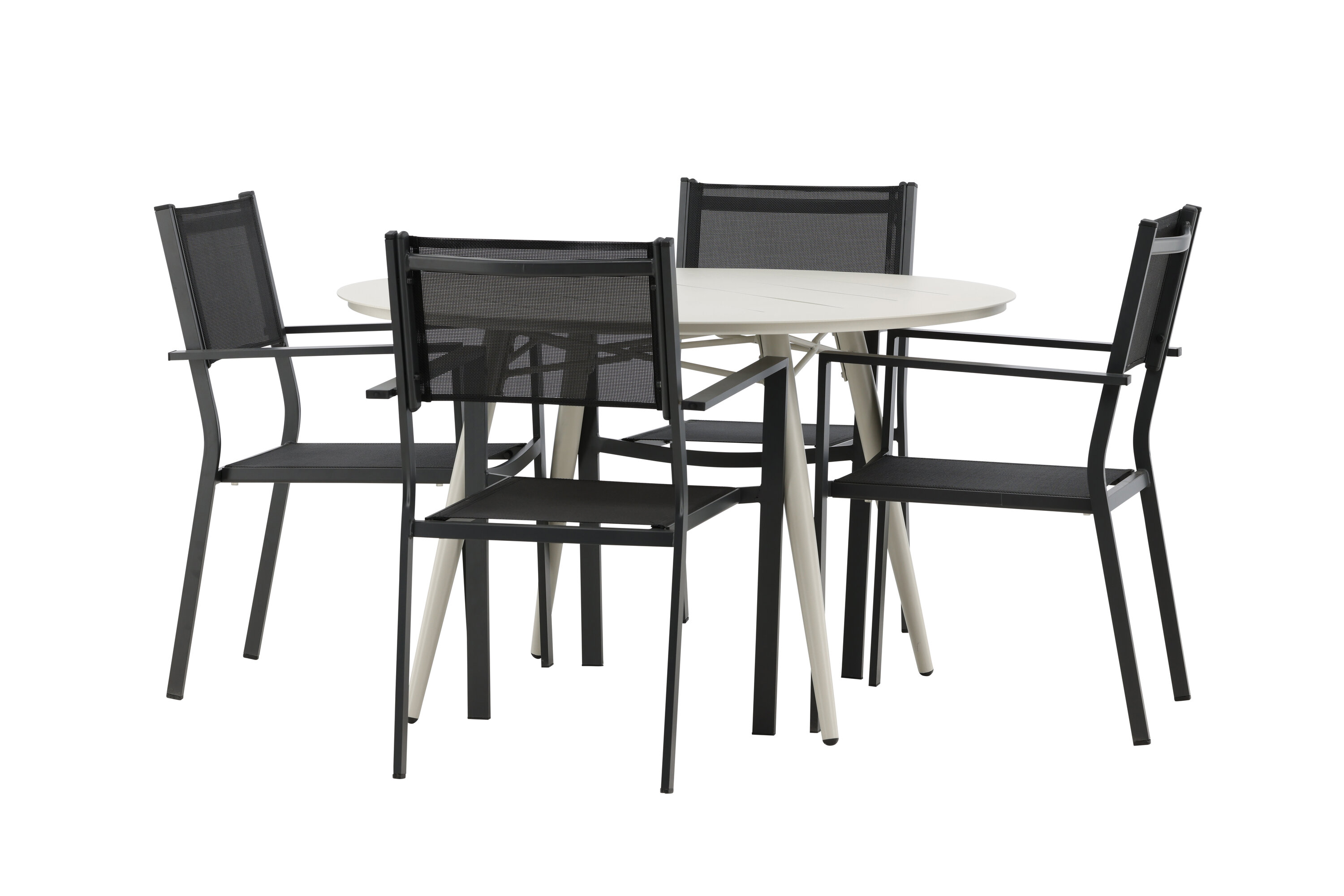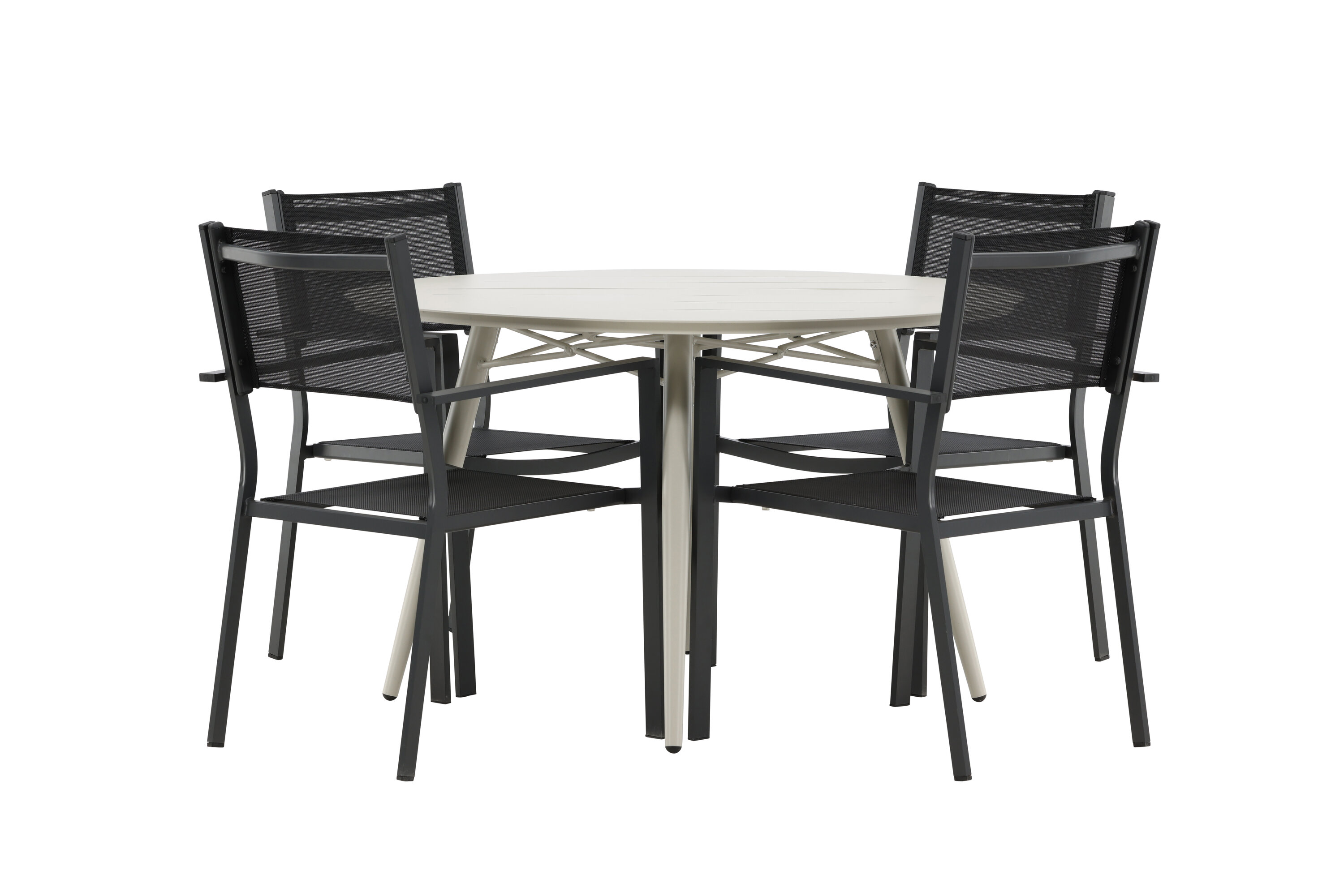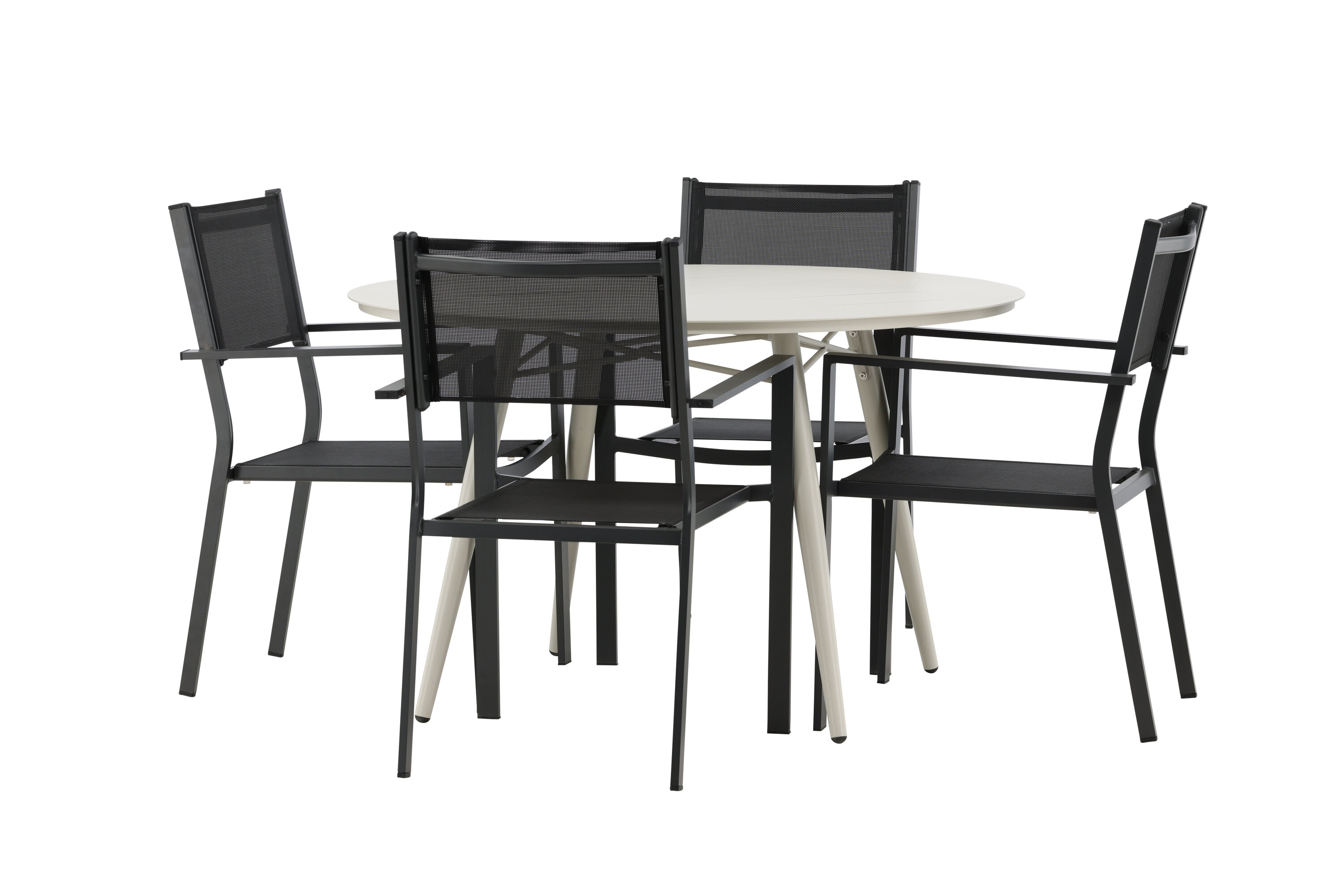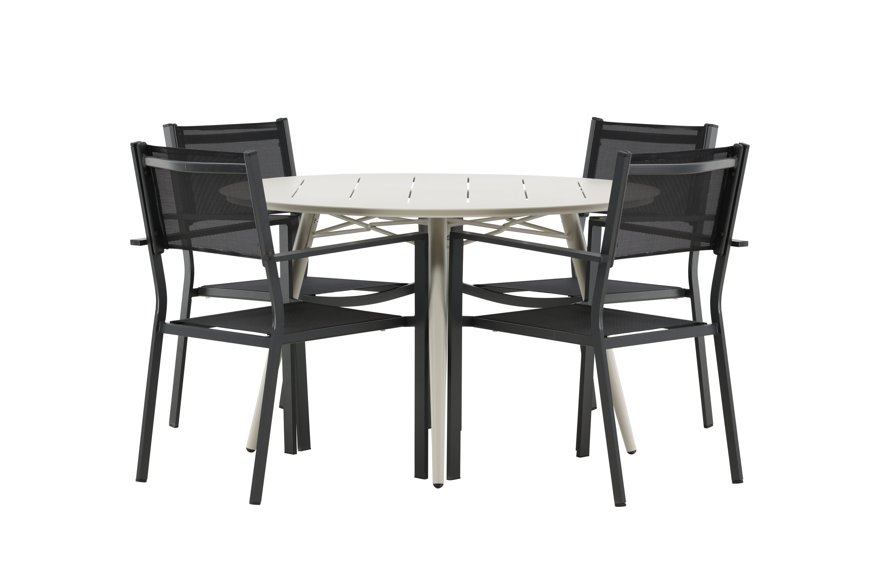 Kutsuv toidugrupp, kellel on siin kõik õigused, pole keegi äärepealt! Laud Lina on minimalistliku disainiga valgest/beežist terasest, ümara lauaplaadi ja kergelt laieneva lauajalaga, mis jätab ühtlase mulje. Mõõdud: 120ø cm. Siin koos mugavate Copacabana seeria söögitoolidega. Toolid on virnastatavad koos tekstiilist istmega ja alumiiniumraamiga. Olge sel suvel valmis silmapaistvaks ööeluks!