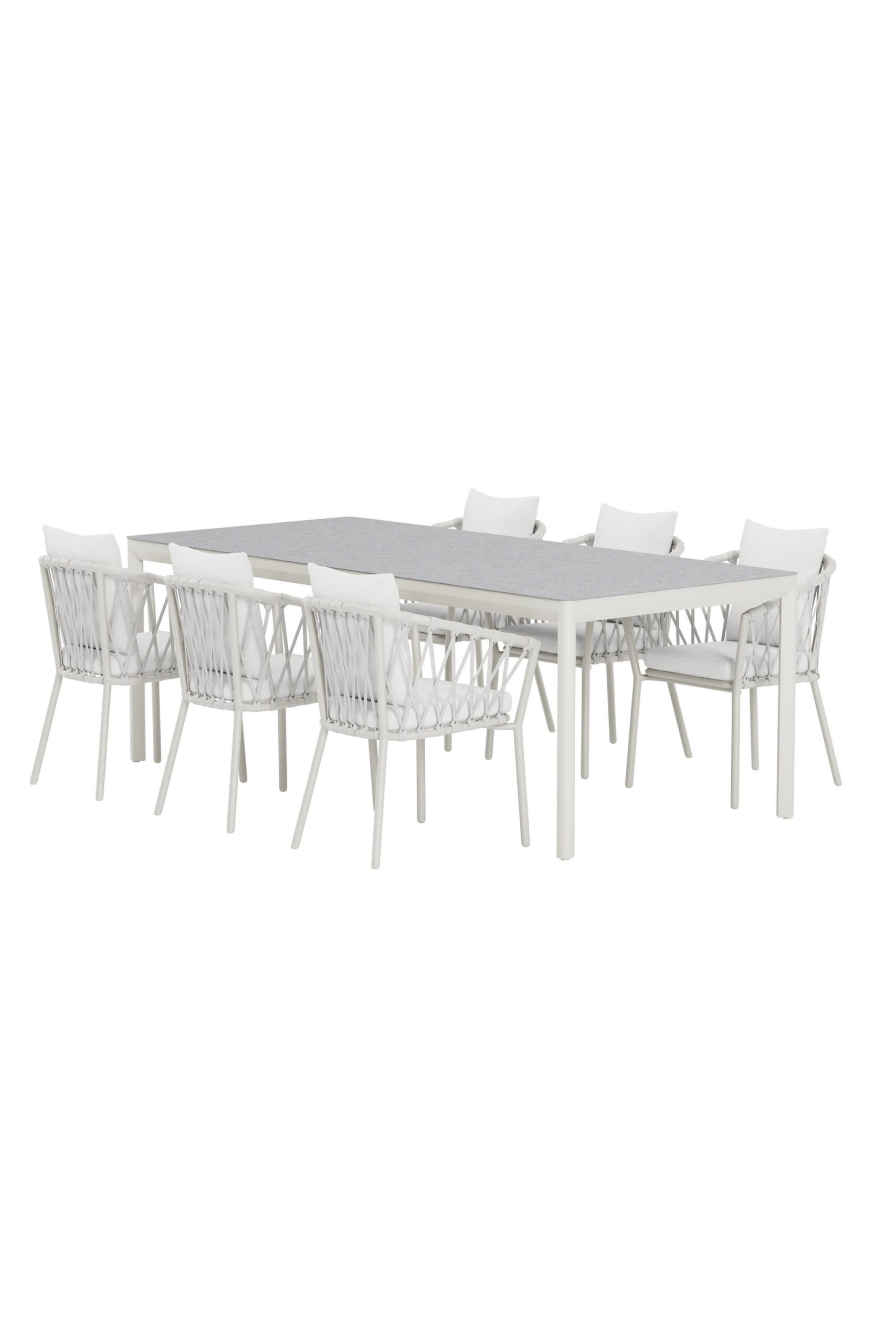 Selle stiilse Linose söögitoolide ja kaasaegse Lino söögilaua kombinatsiooniga looge elegantne ja harmooniline välisöögituba. Linose söögitoolis on ühendatud keerukas disain ja kõrge mugavus. Beež kootud raam pakub õhulist ja eksklusiivset välimust, samas kui pehmed valged bouclé-padjad pakuvad kutsuvat istumiskogemust. Tool sobib suurepäraselt pikkadeks õhtusöökideks ning loob laua ümber sooja, kaasaegse ja ajatu atmosfääri.