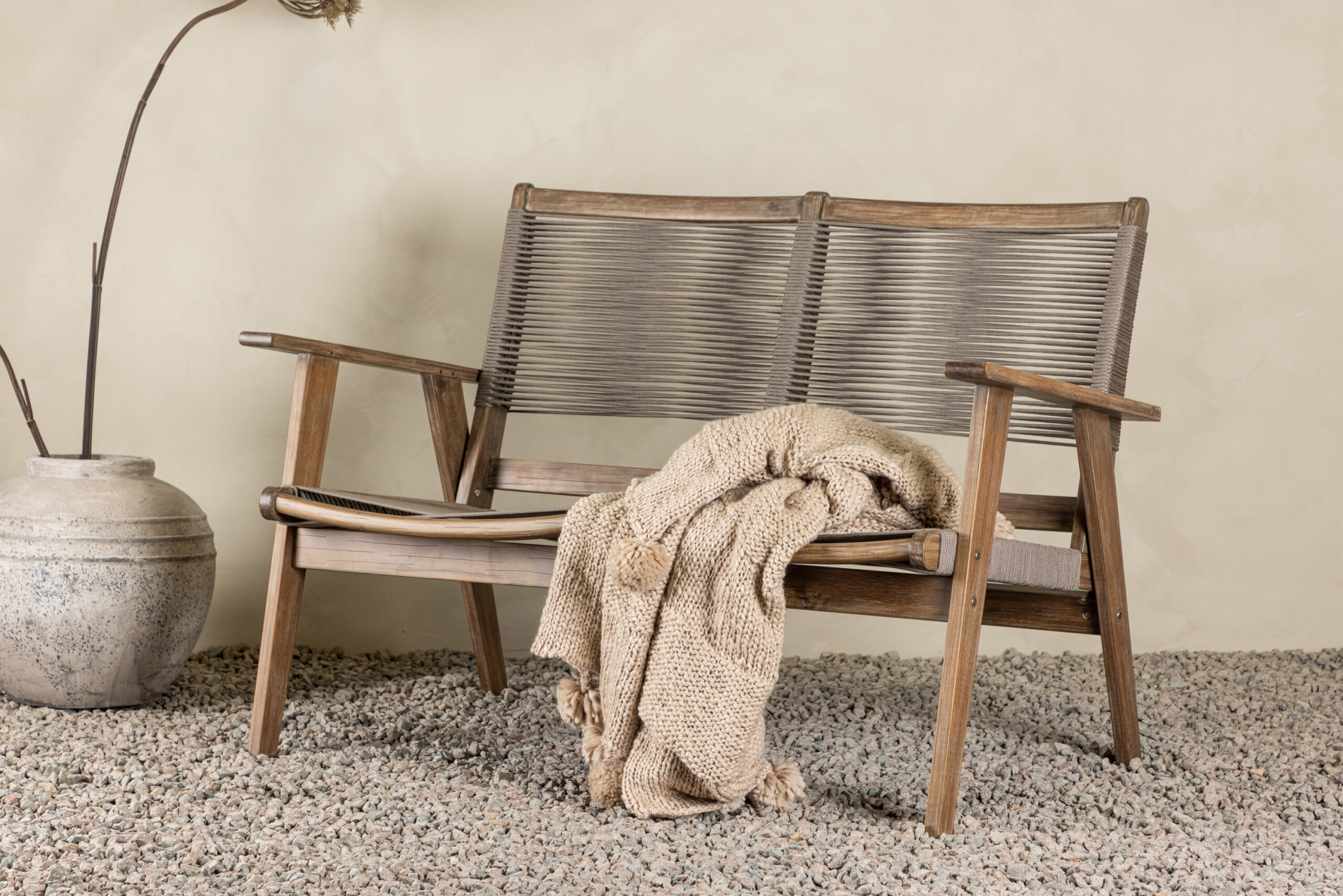 Little John välidiivan on ideaalne täiendus teie rõdule või aeda. Valmistatud sooja mokavärviga akaatsiapuidust, lisab see teie väliskeskkonnale loomulikku elegantsi. See on ühtaegu võluv ja praktiline ning hall köispolster ei anna mitte ainult moodsat hõngu, vaid pakub ka mugavat ruumi oma partneri või sõbraga lõõgastumiseks.