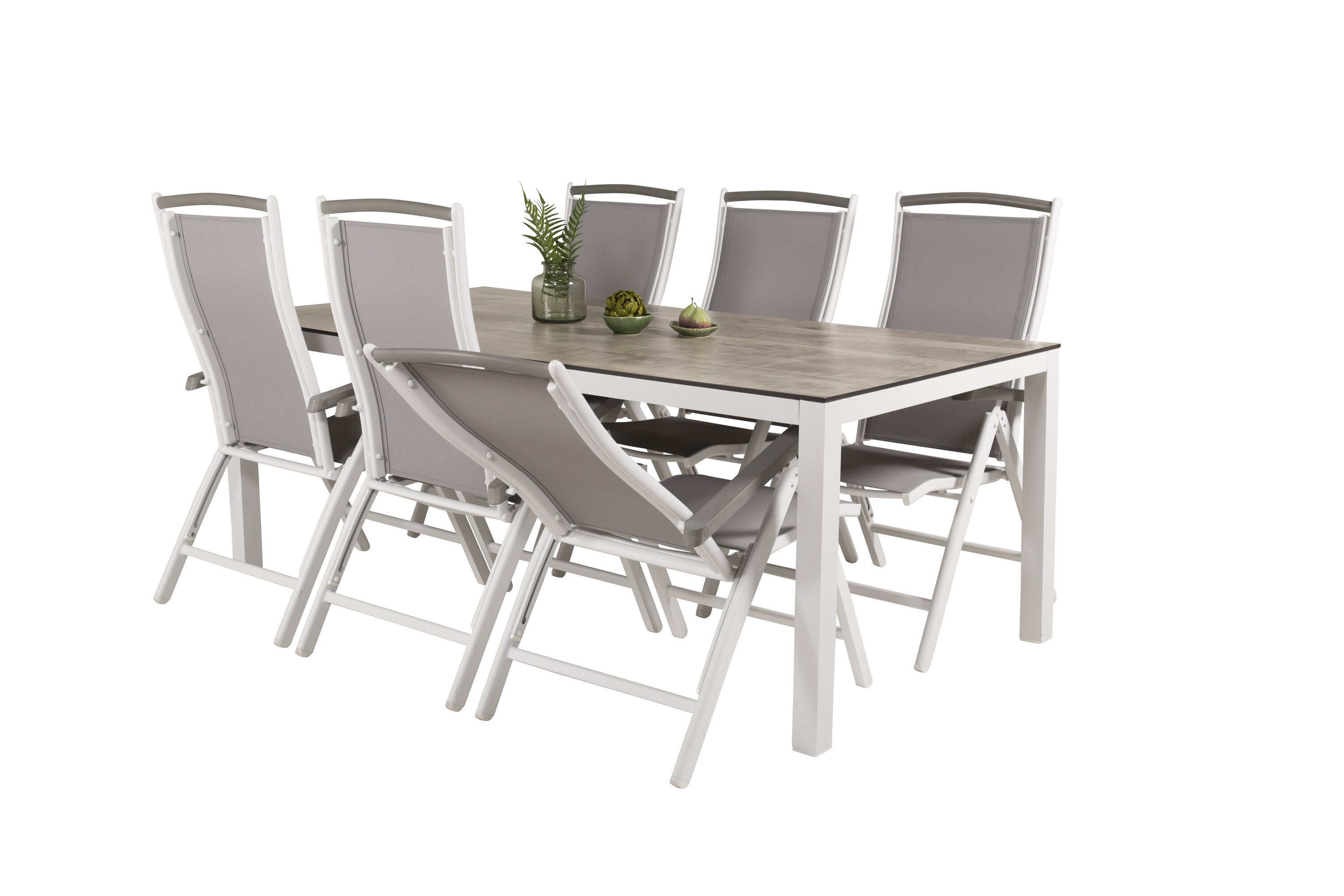 Llama, maitsev söögilaud, mis on kombineeritud kokkupandavate ja istumissõbralike söögitoolidega Albany. Siin viibite hea meelega pikaks ajaks ja naudite head toitu ja mõnusat seltskonda – ideaalne teie siseõuele või terrassile!