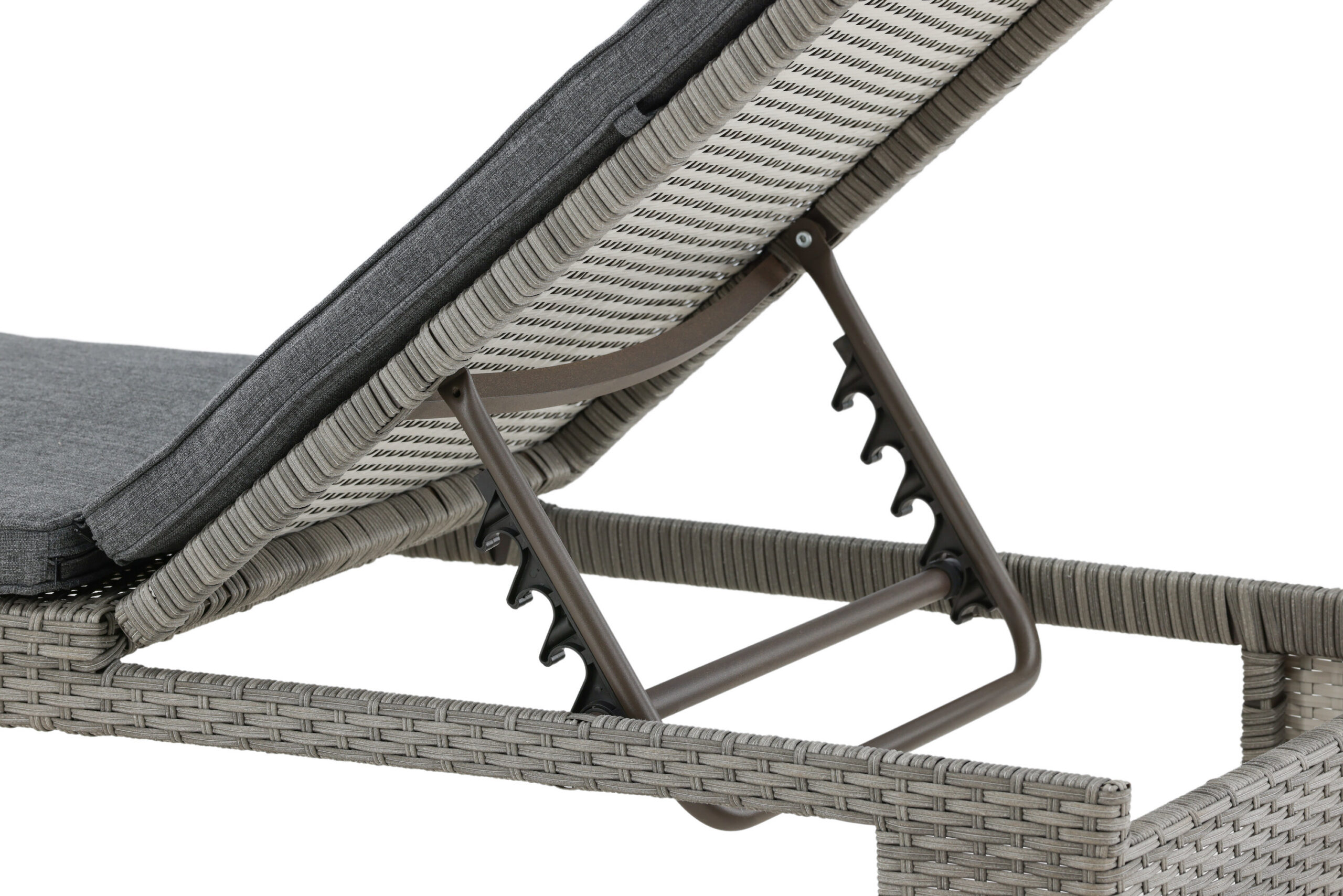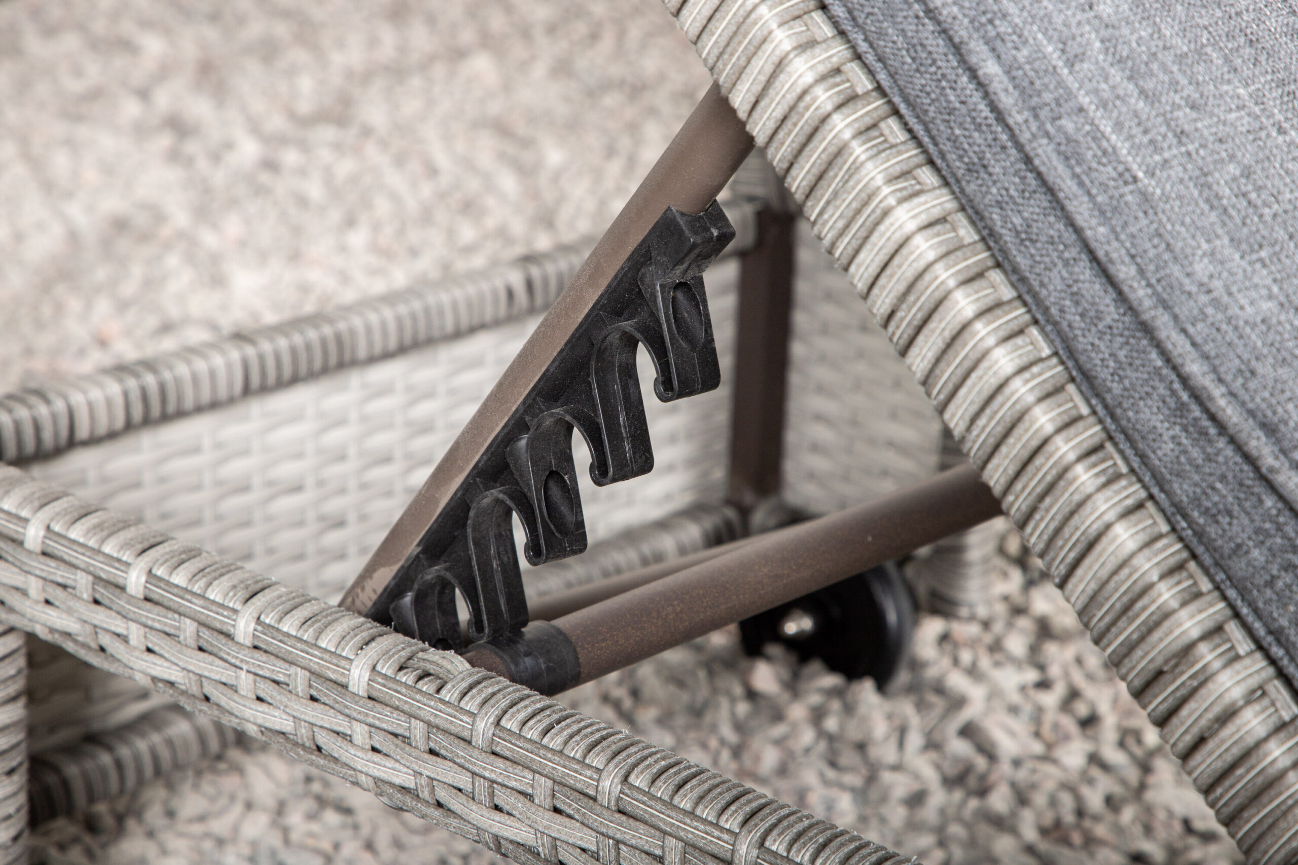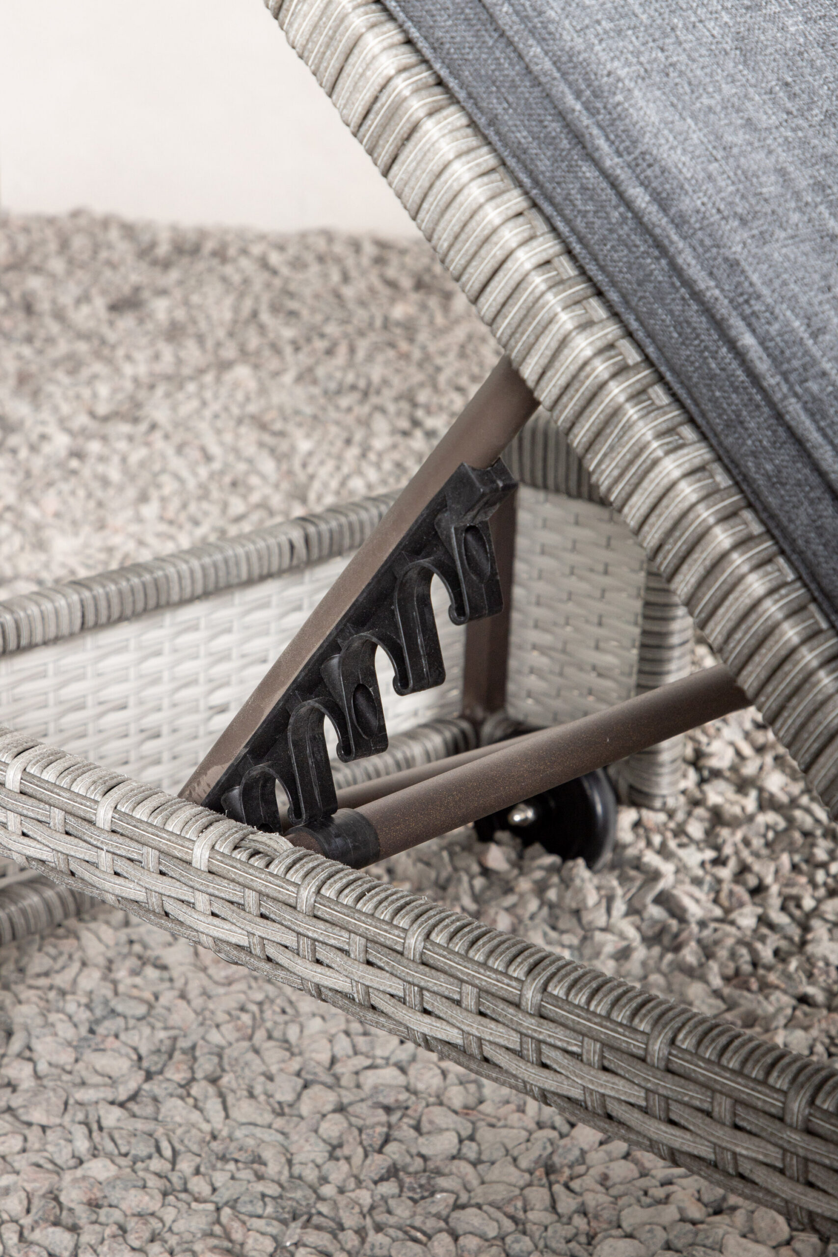 Stiilne ja luksuslik disain muudab selle Londoni seeria lamamistooli teie terrassile meeldiva pilgupüüdja. Siit saate halli lamamistooli halli padja, rataste ja reguleeritava seljatoega optimaalse puhkeasendi saavutamiseks. Solaarium on valmistatud kunstlikust rotangist, mis muudab selle välitingimustes vastupidavaks. Tugev, stabiilne ja mugav – siin saad nautida vabu hetki suvistel päikeselistel päevadel.