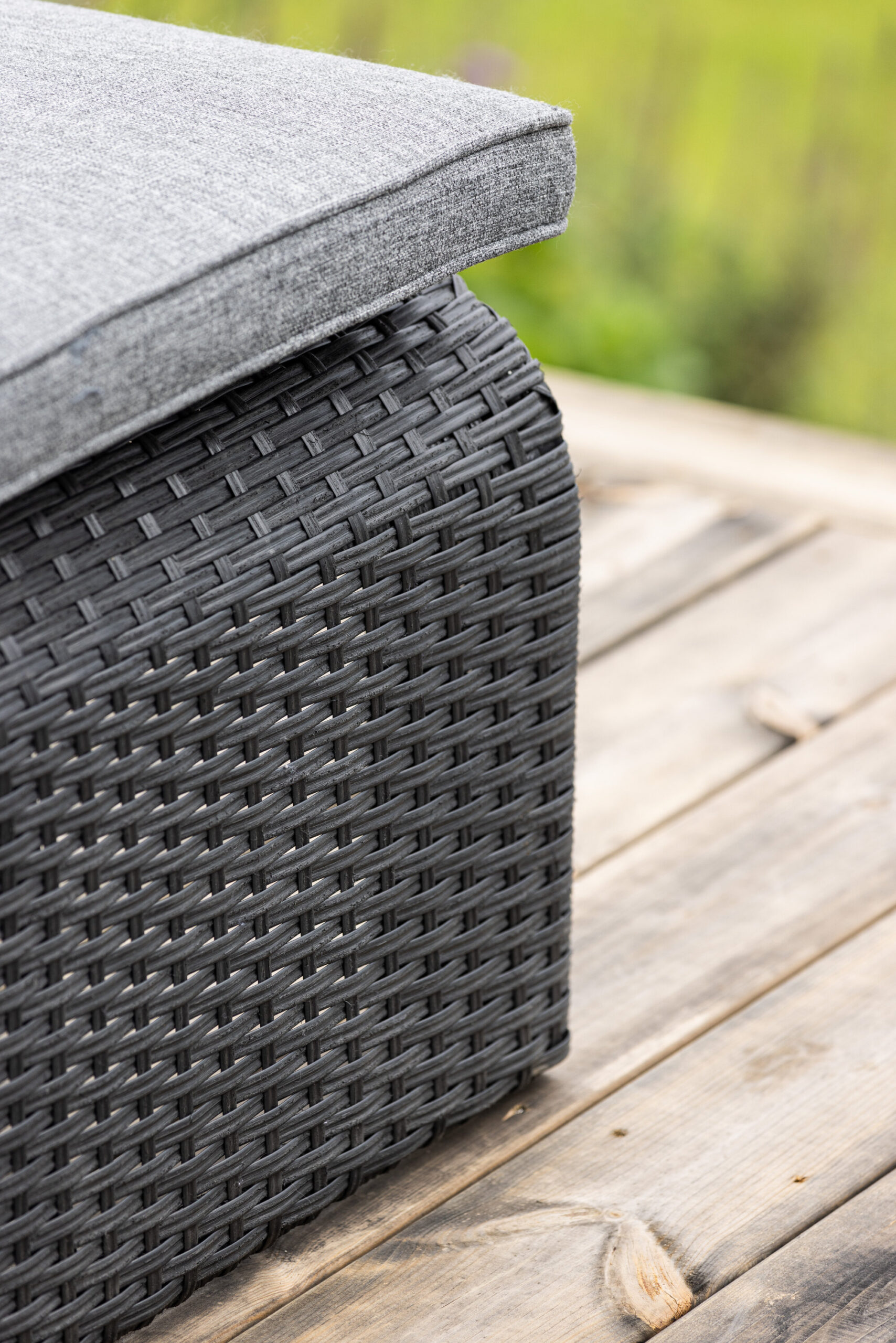Londoni lamamistool on valmistatud vastupidavast rotangist, pakkudes loomulikku tunnet, samas kui seda on lihtne hooldada. Rotangiga kaetud alumiiniumraam ei taga mitte ainult stabiilsust, vaid lisab ka elegantset puudutust. Materjalivalik muudab lamamistooli vastupidavaks ilmastikuoludele, mistõttu on see ideaalne välitingimustes kasutamiseks.