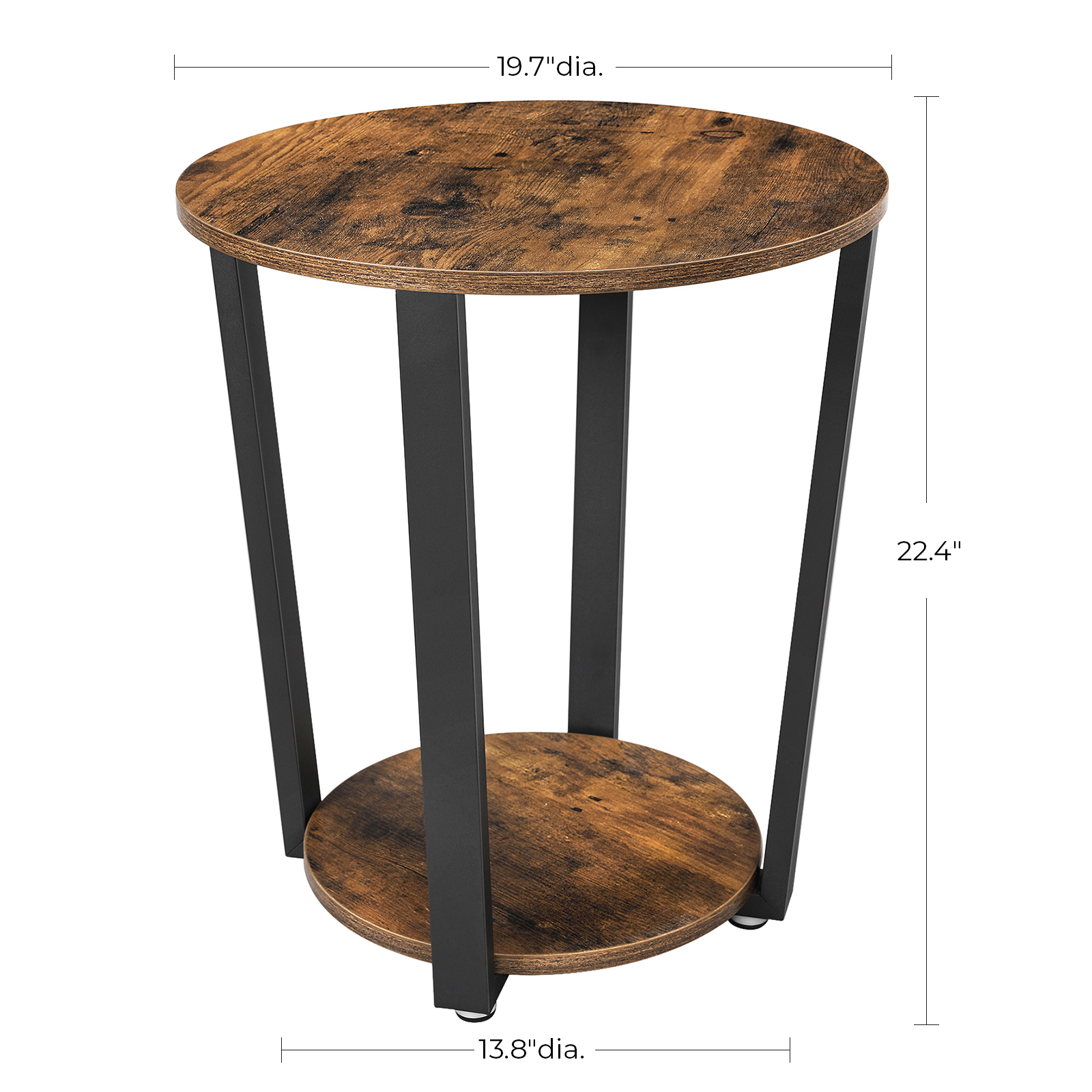 Spetsifikatsioonid: – Värvus: maalähedane pruun, must – Materjal: puitlaastplaat, teras – Toote mõõdud: 50 x 57 cm (läbimõõt x kõrgus) – Lauaplaadi läbimõõt: 50 cm – Alumise tasandi läbimõõt: 36 cm – Kaal: 5,5 kg – Maksimaalne kandevõime: 100 kg Pakisisu: – 1 x abilaud – 1 x kokkupanekukomplekt – 1 x juhend