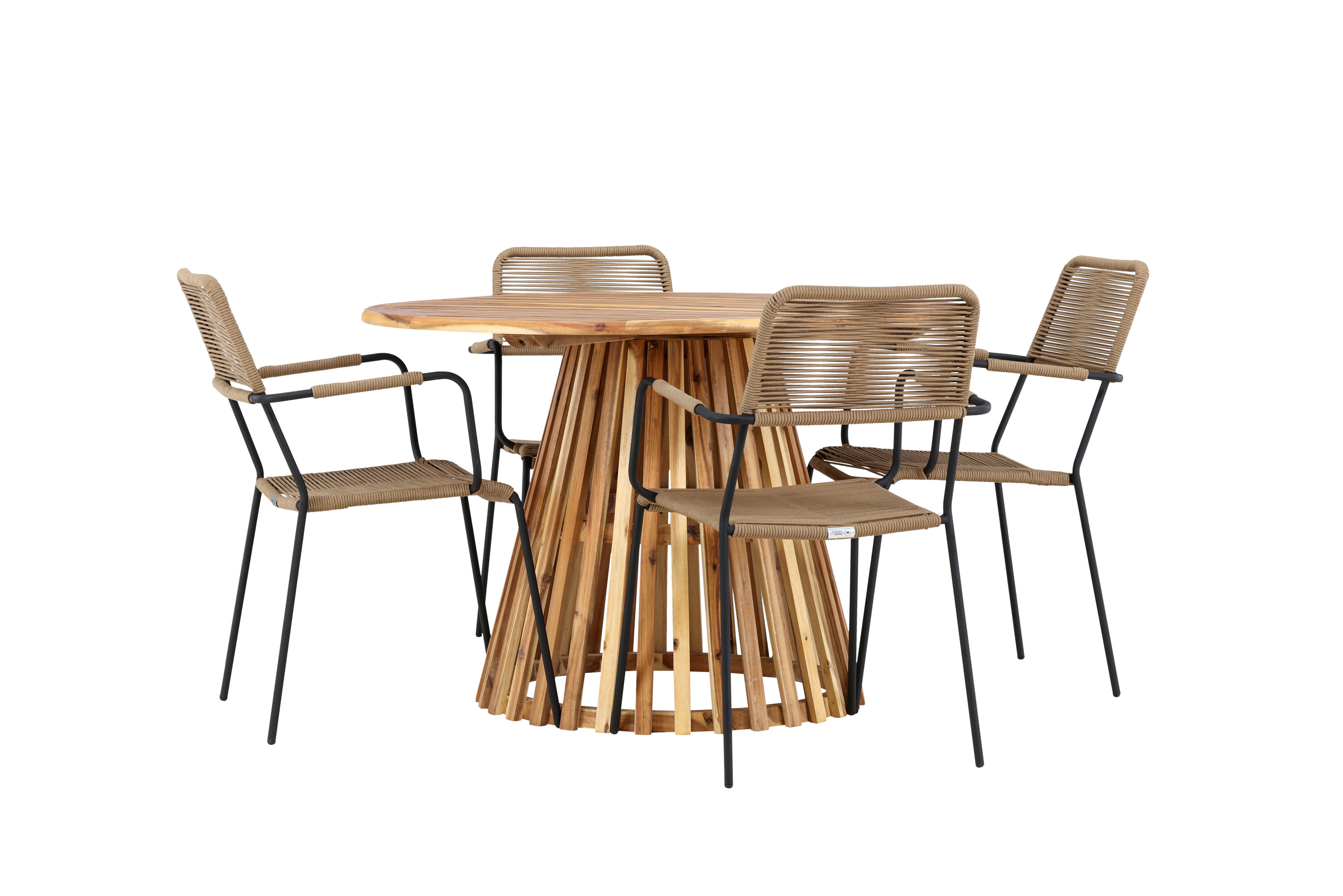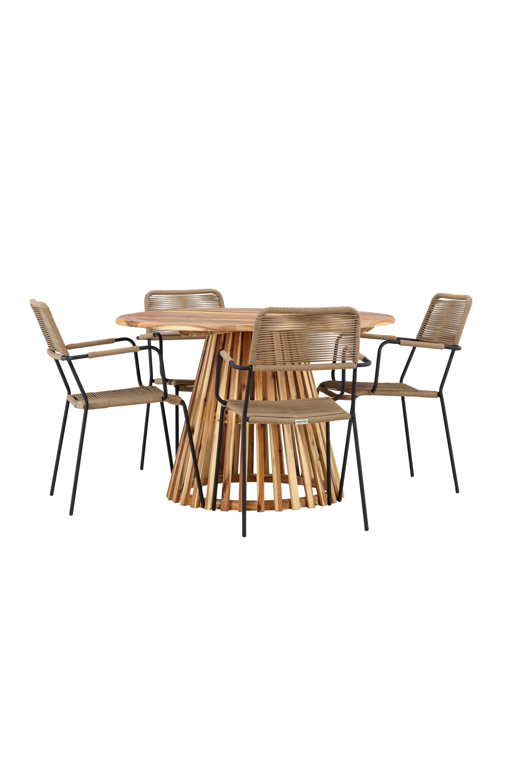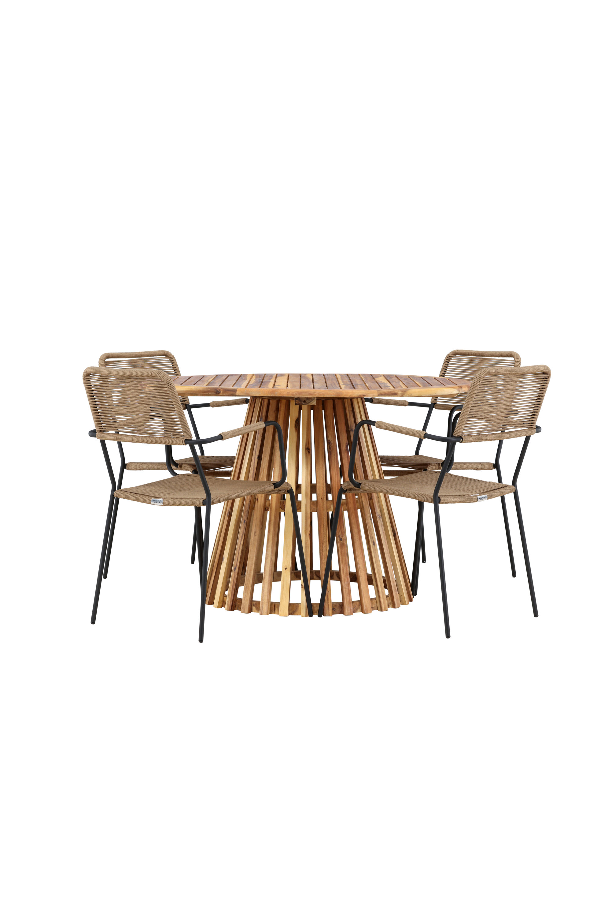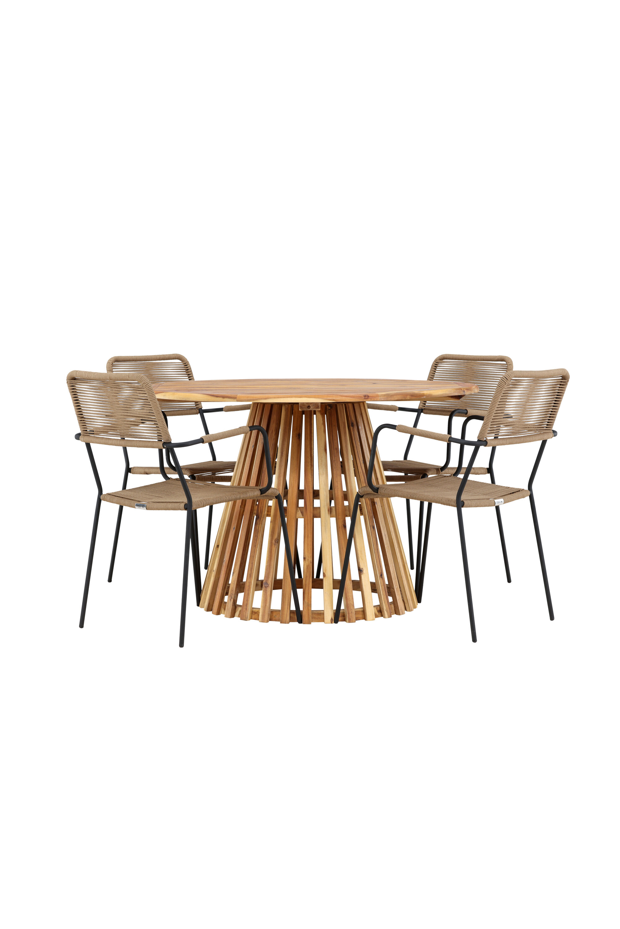 Avastage stiilse Lumpuri laua ja elegantsete Lindose toolidega täiuslik söögikomplekt oma väliruumi jaoks. Rikkaliku 120 cm läbimõõduga Lumpuri laud pakub piisavalt ruumi perekondlike õhtusöökide ja meeldivate koosviibimiste jaoks lageda taeva all.