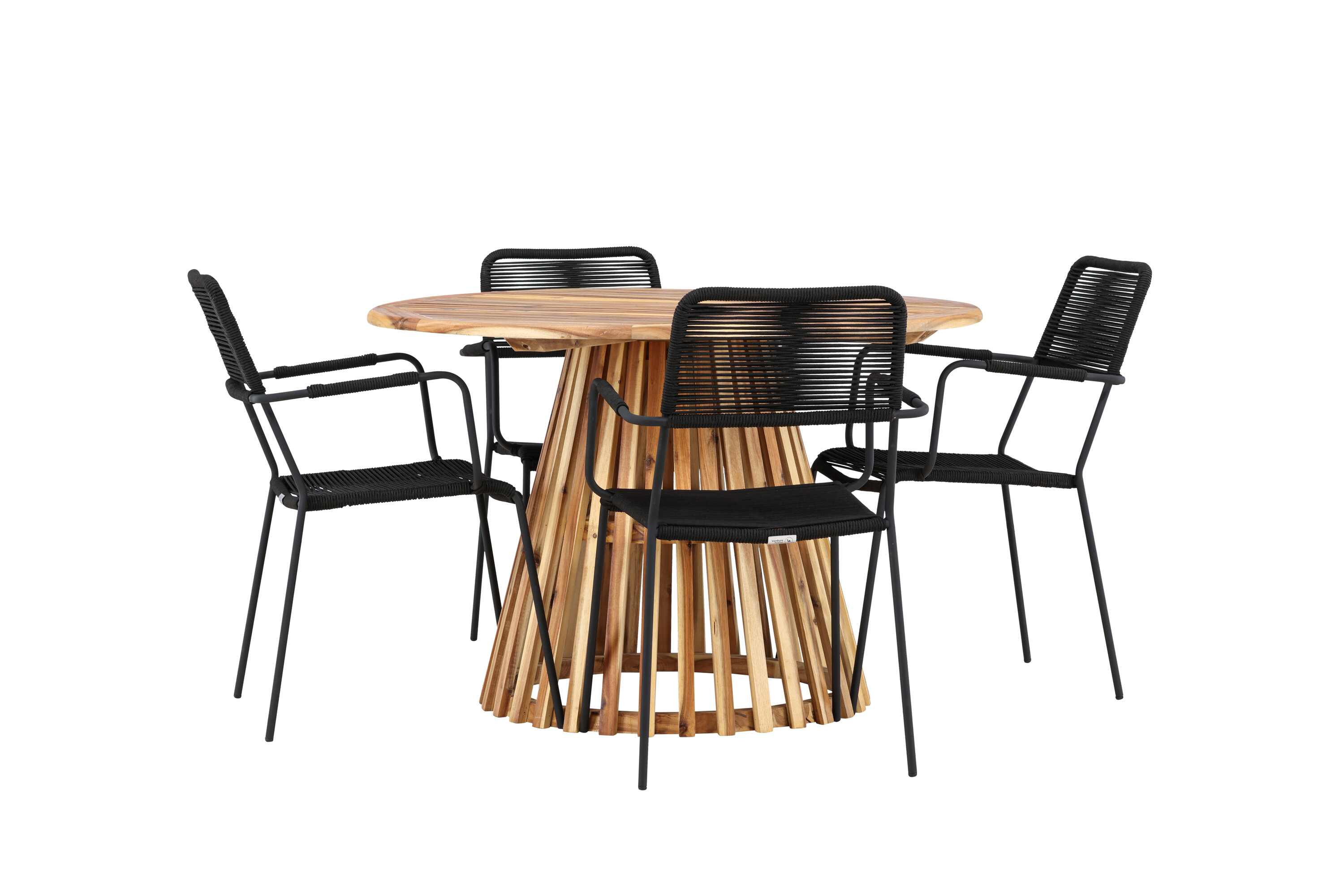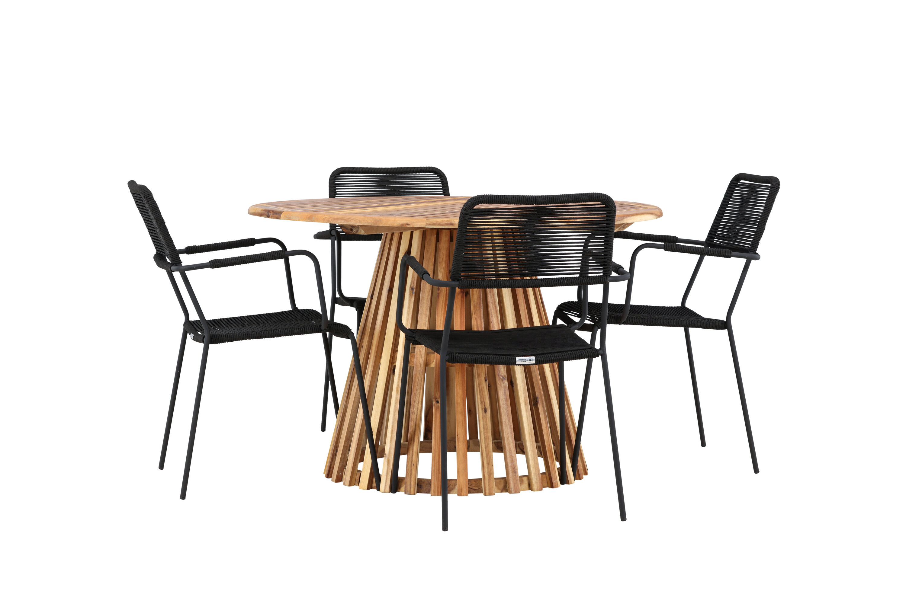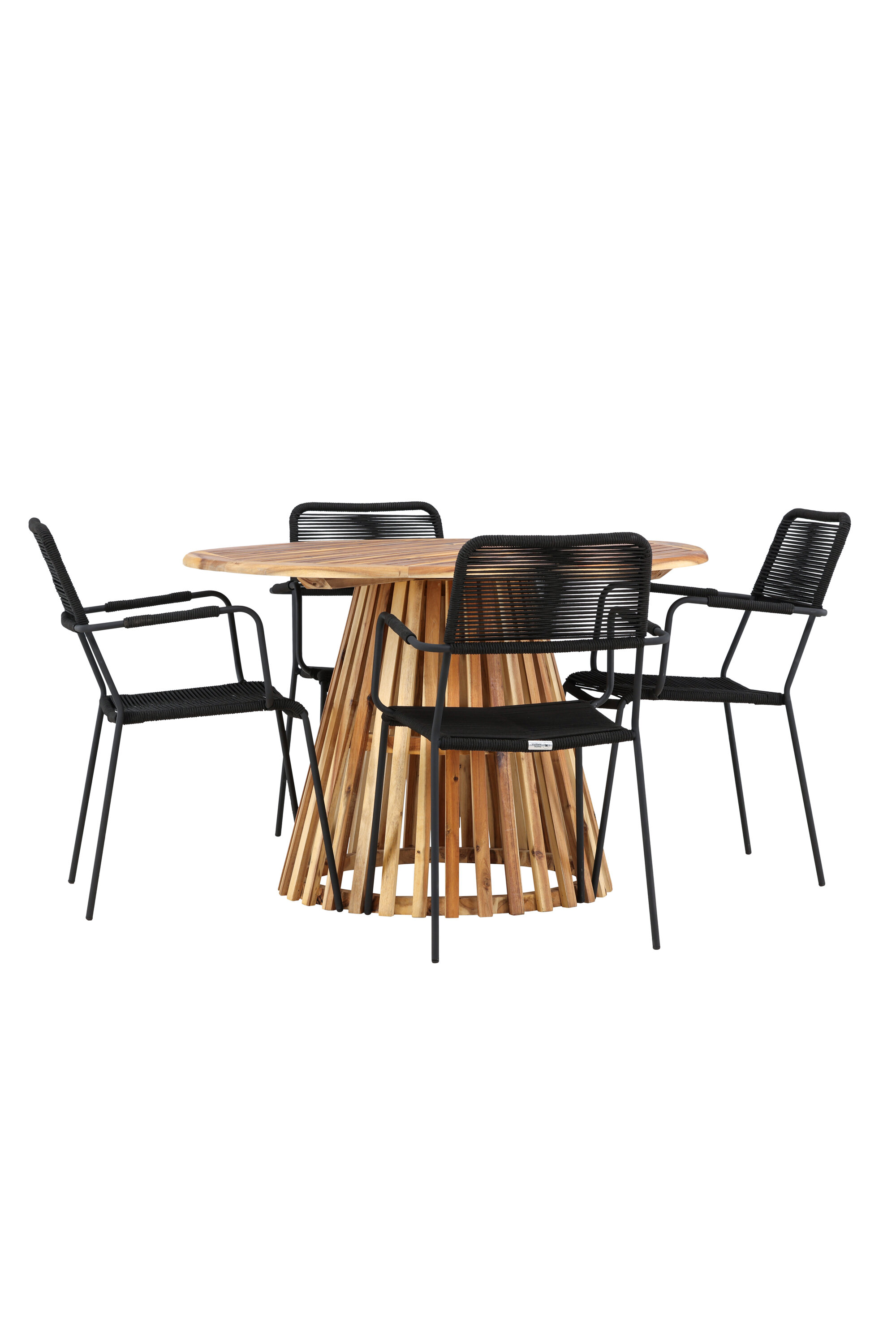 Elegantse Lumpuri laua ja stiilsete Lindose toolidega saate tutvuda täiusliku söögikomplektiga oma väliruumi jaoks. Muljetavaldava, 120 cm läbimõõduga laud Lumpur pakub rohkelt ruumi perekondlikeks õhtusöökideks ja mõnusaks koosviibimiseks lageda taeva all.